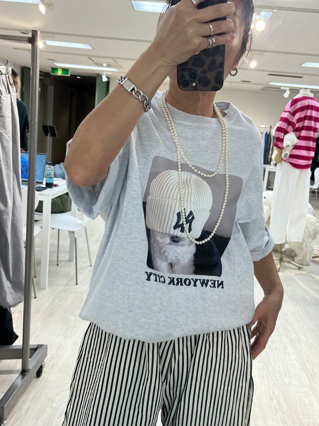 RCW NYビーニー半袖Tee 大人気わんちゃんシリーズ♡ 今回はニット帽を被ったデザインが可愛いTシャツです。 ユニセックス対応なのでゆったり着用していただけます! . . color ホワイト グレー ブラック . pricn ¥8690 . size 着丈71cm 身幅59cm 肩幅56cm 袖丈19cm . 素材 綿100% . デリバリー 4/上〜4/中