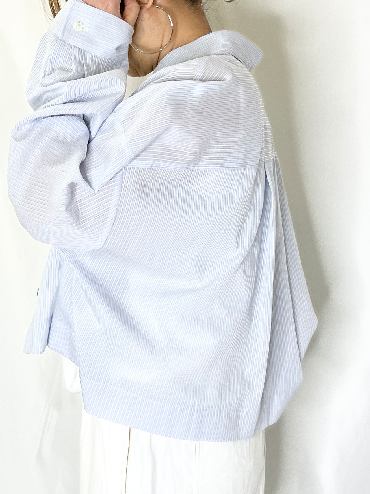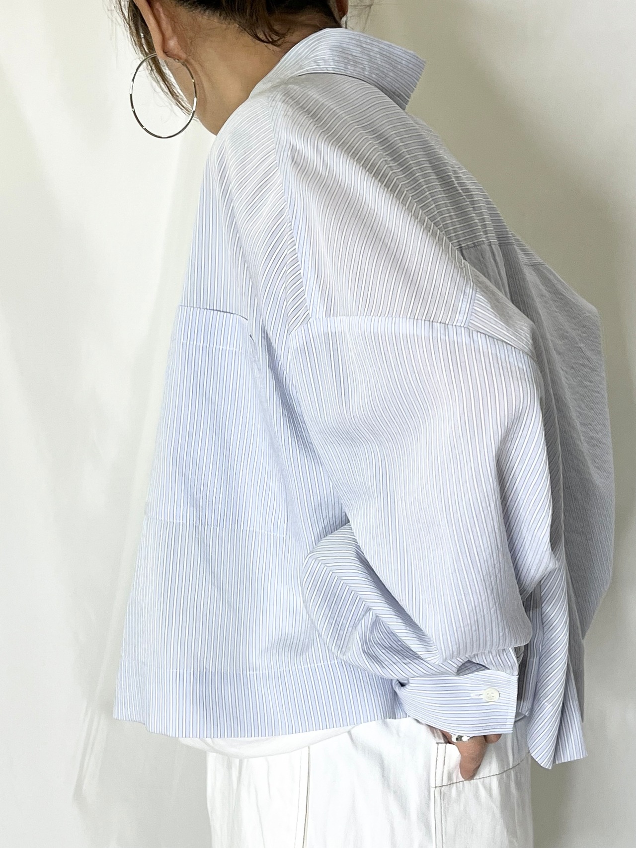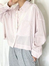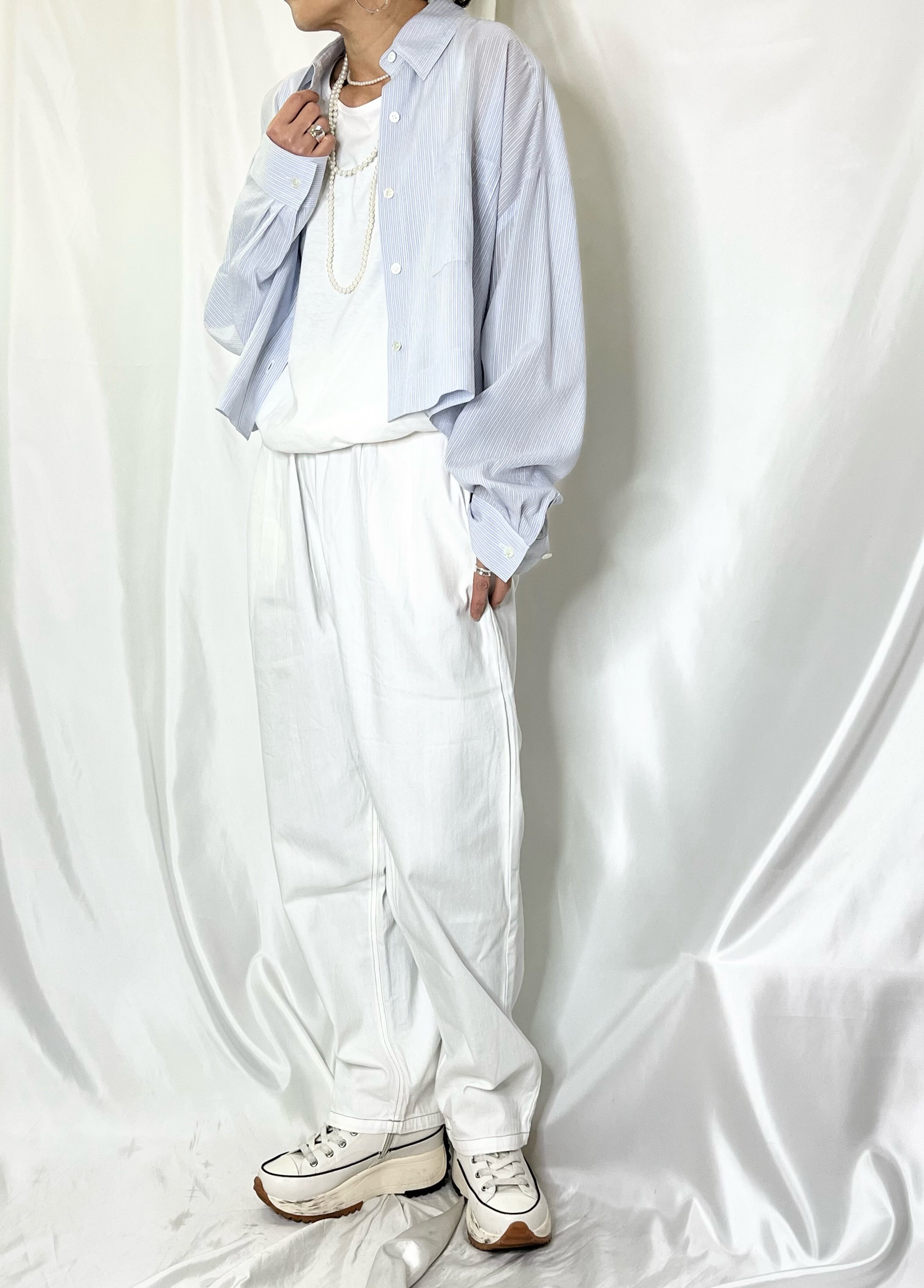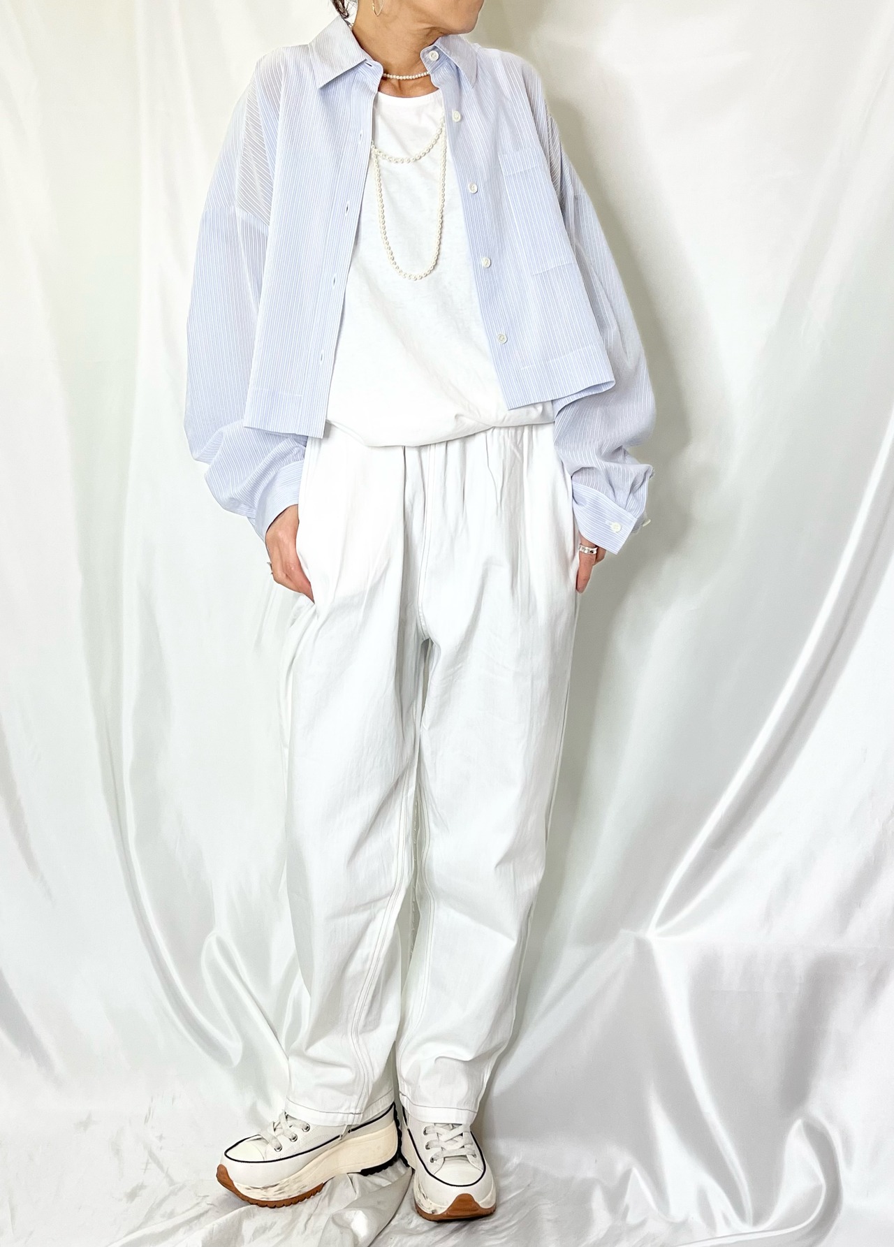 太めシルエットのボトムスが多いので短めのトップスでスタイルアップが叶うオススメシャツです。