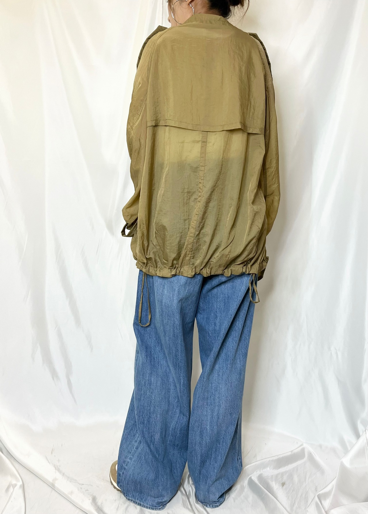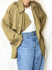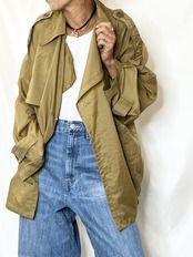 透け感のあるワッシャーナイロン素材のカジュアルさとトレンチこーとのキレイめをMIXさせた他にないアイテム。