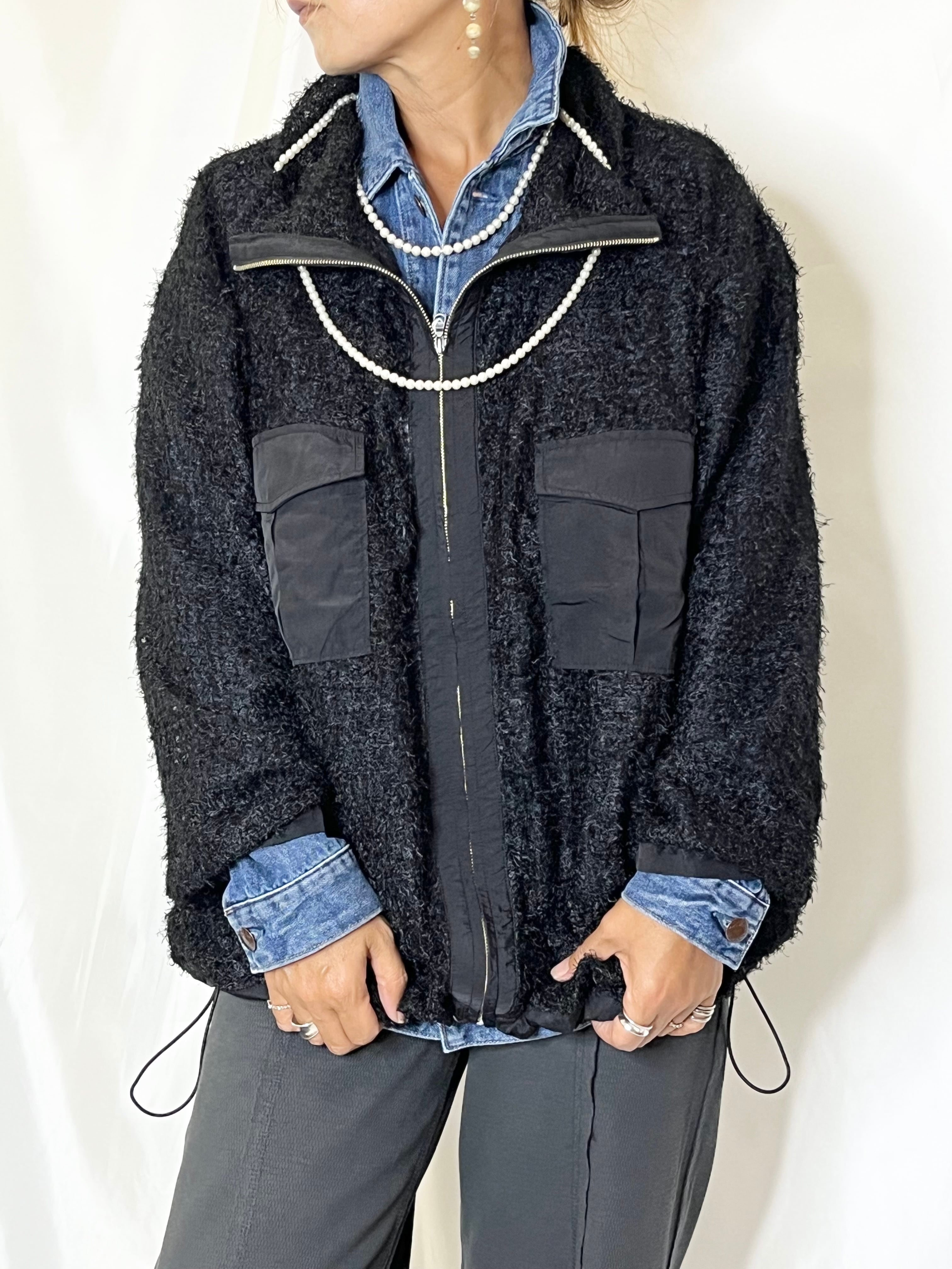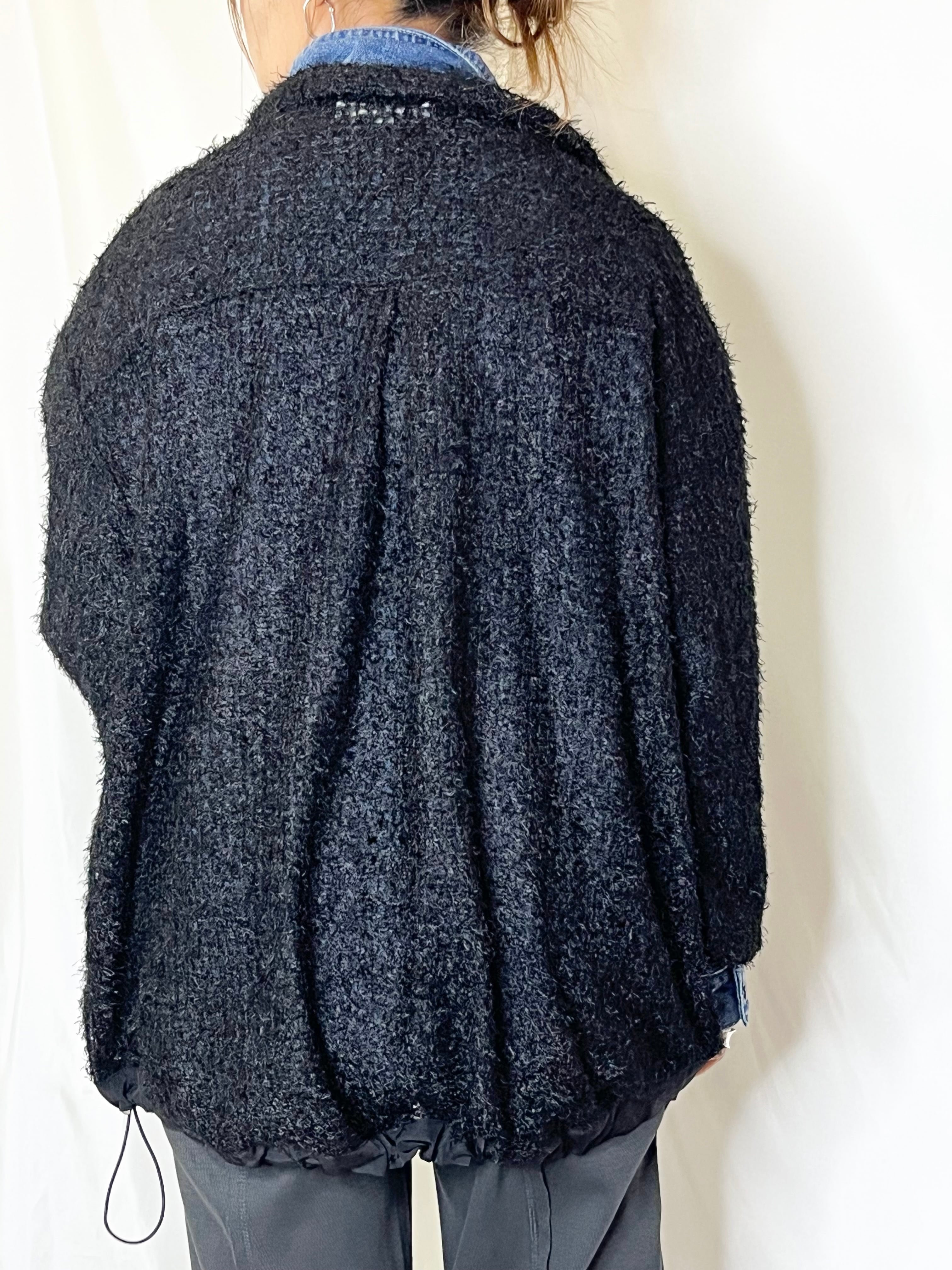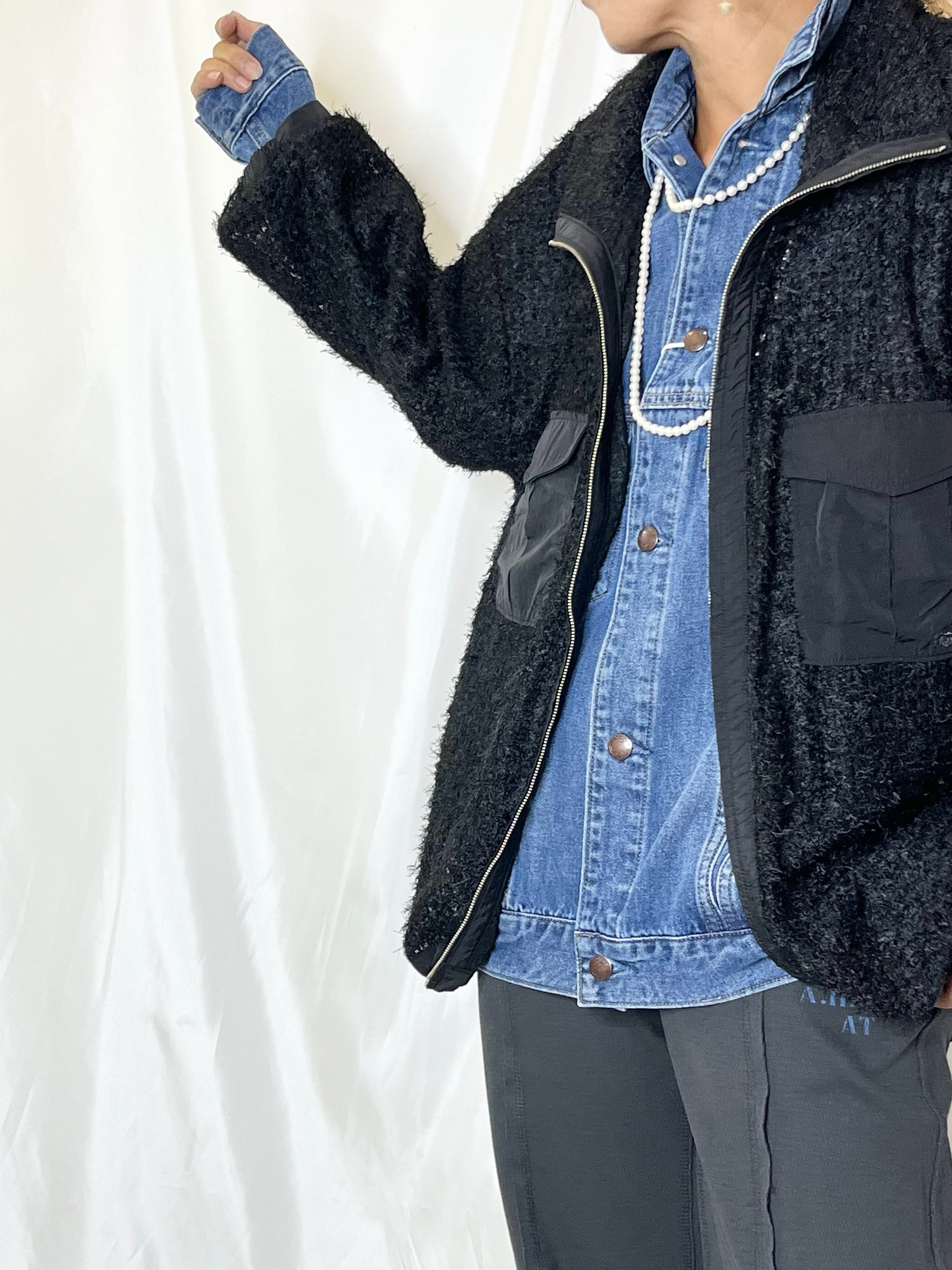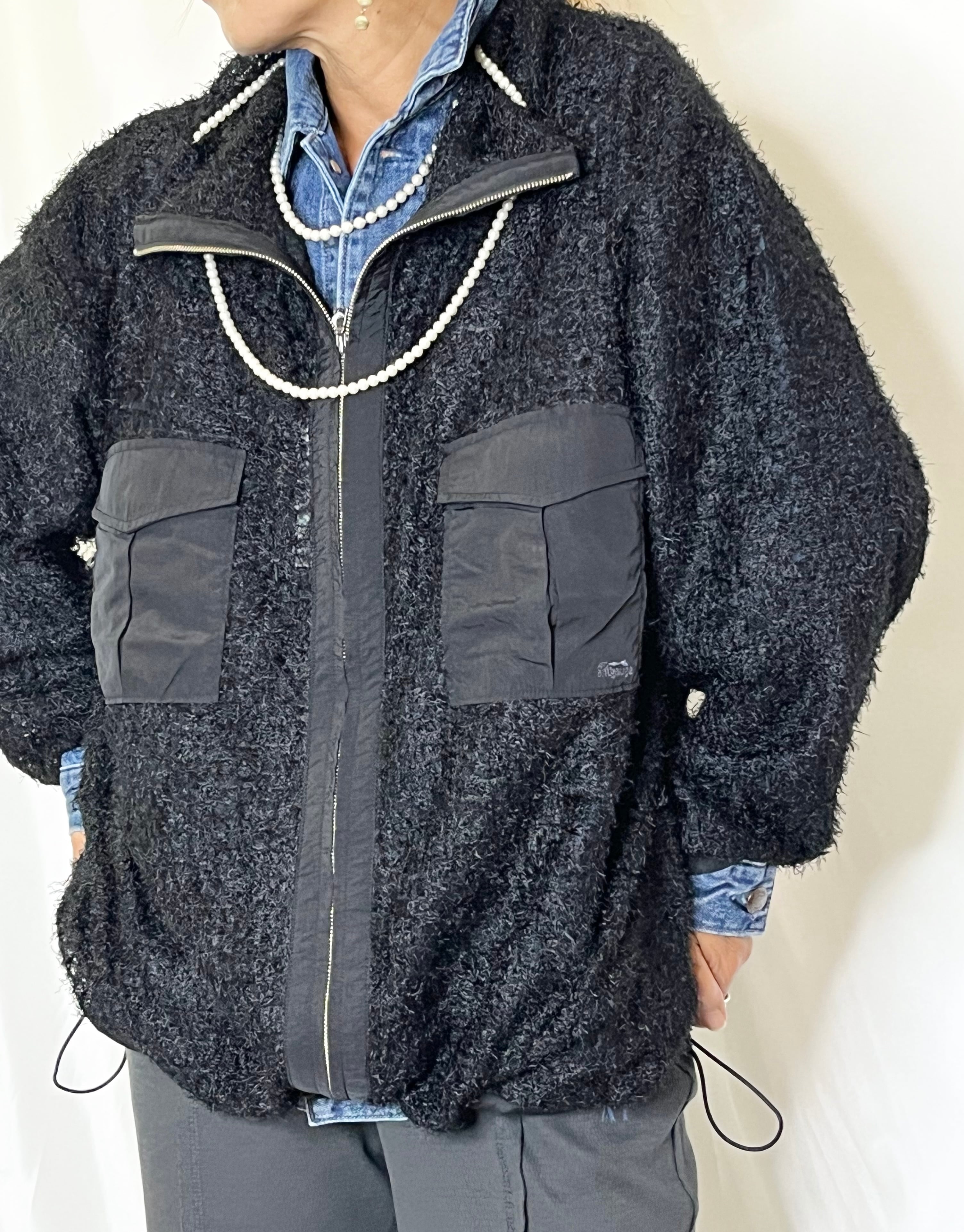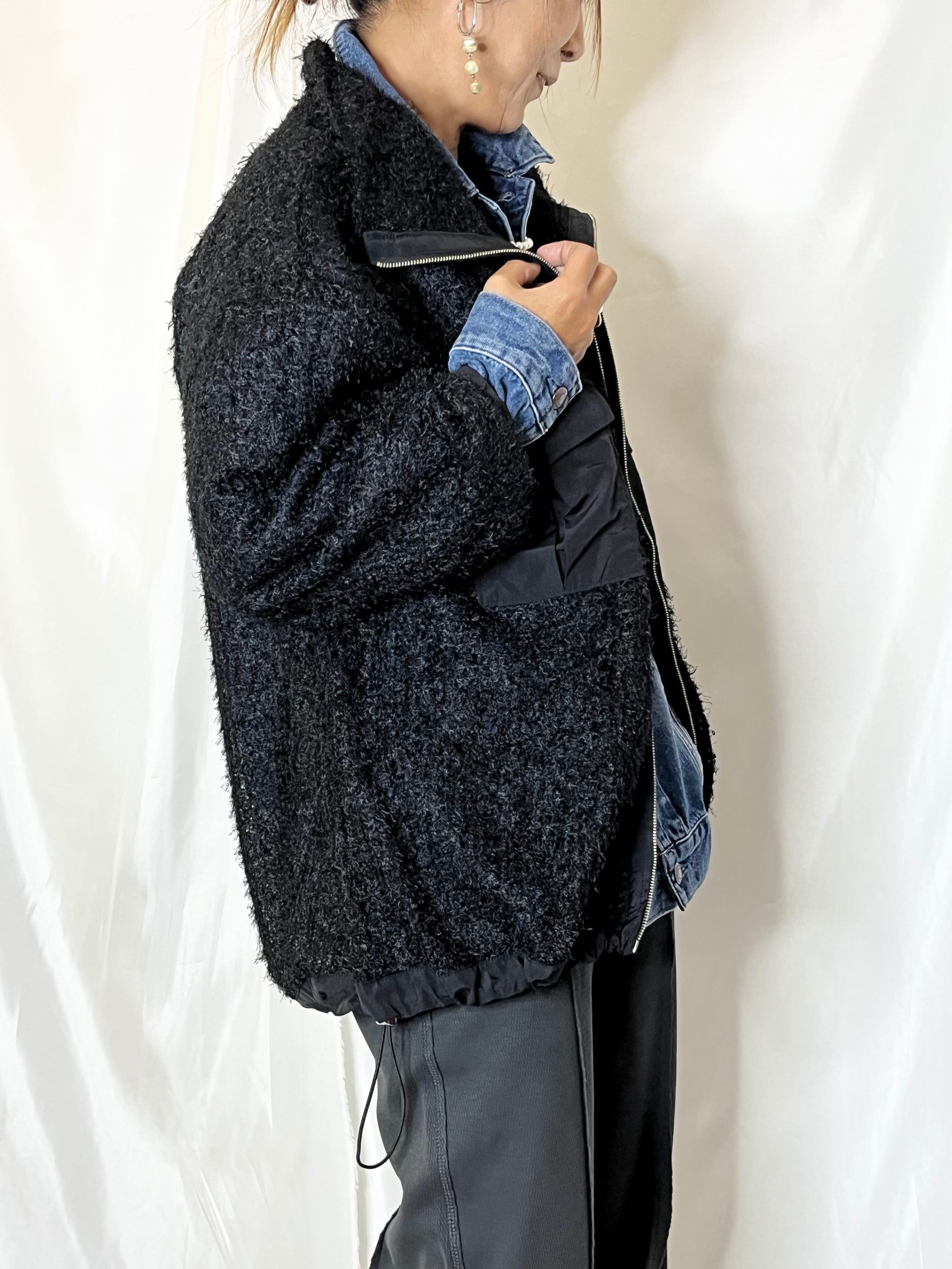 ゆったりしたサイズ感で快適な着心地。女性らしいシルエットに異素材でマニッシュなデザインを取り入れたカジュアルにも着こなしやすいアイテムです。