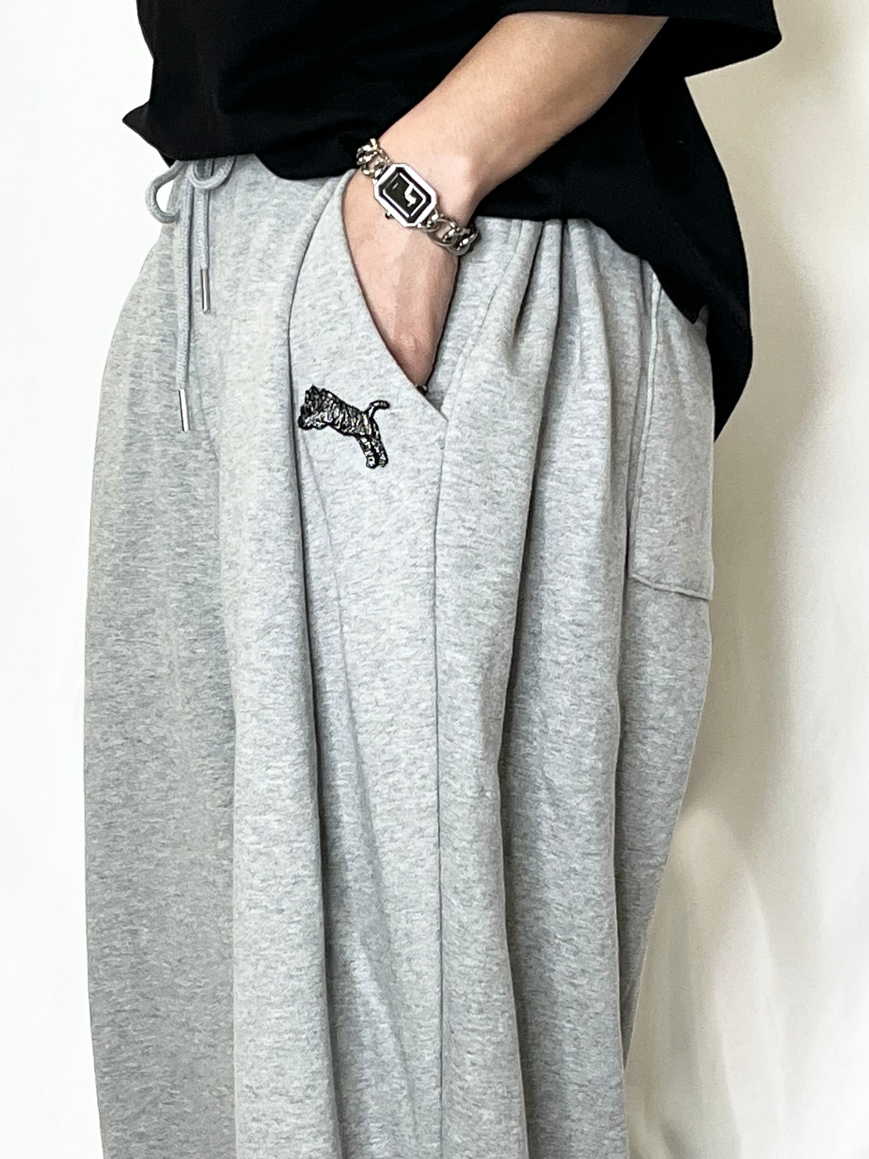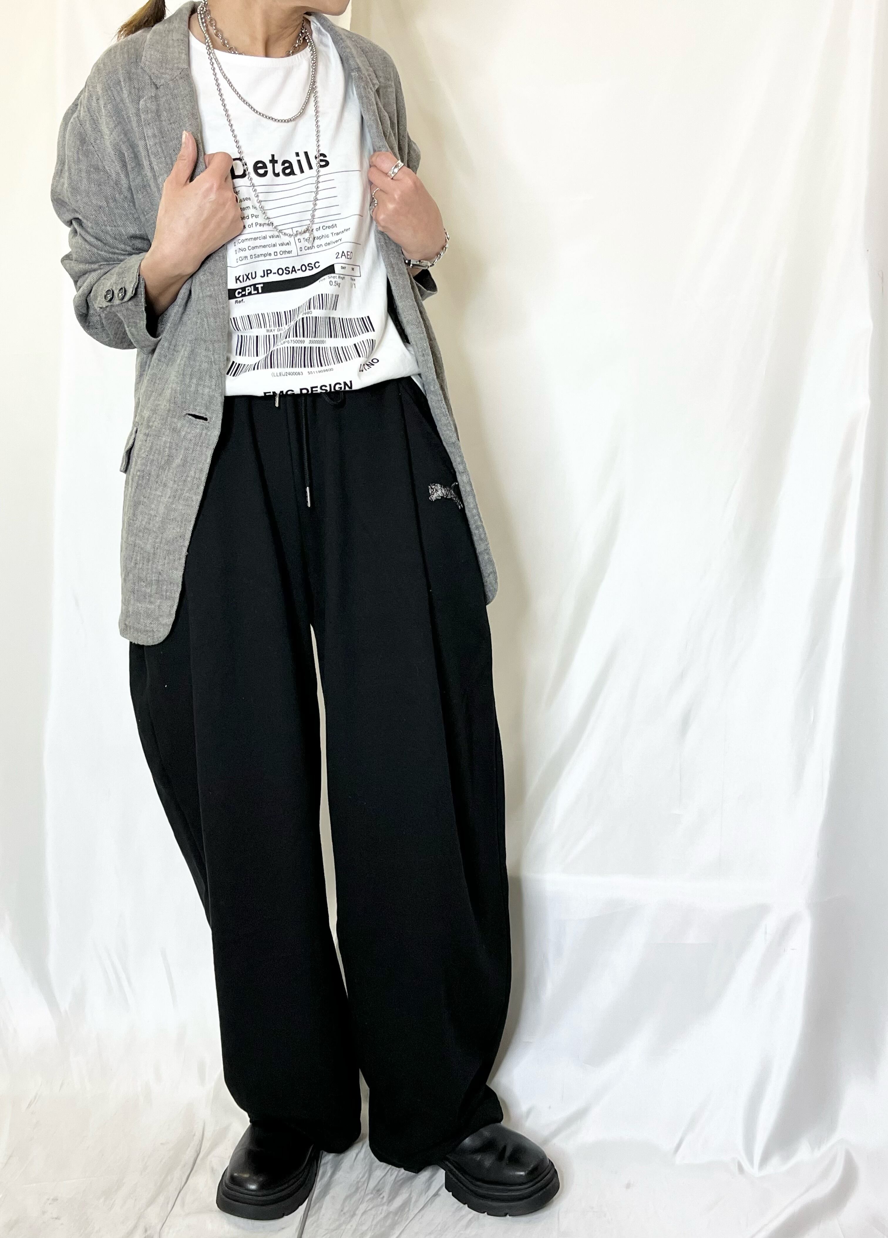 程よいカーブとタックのデザインがオシャレで楽ちんなスウェットパンツです。