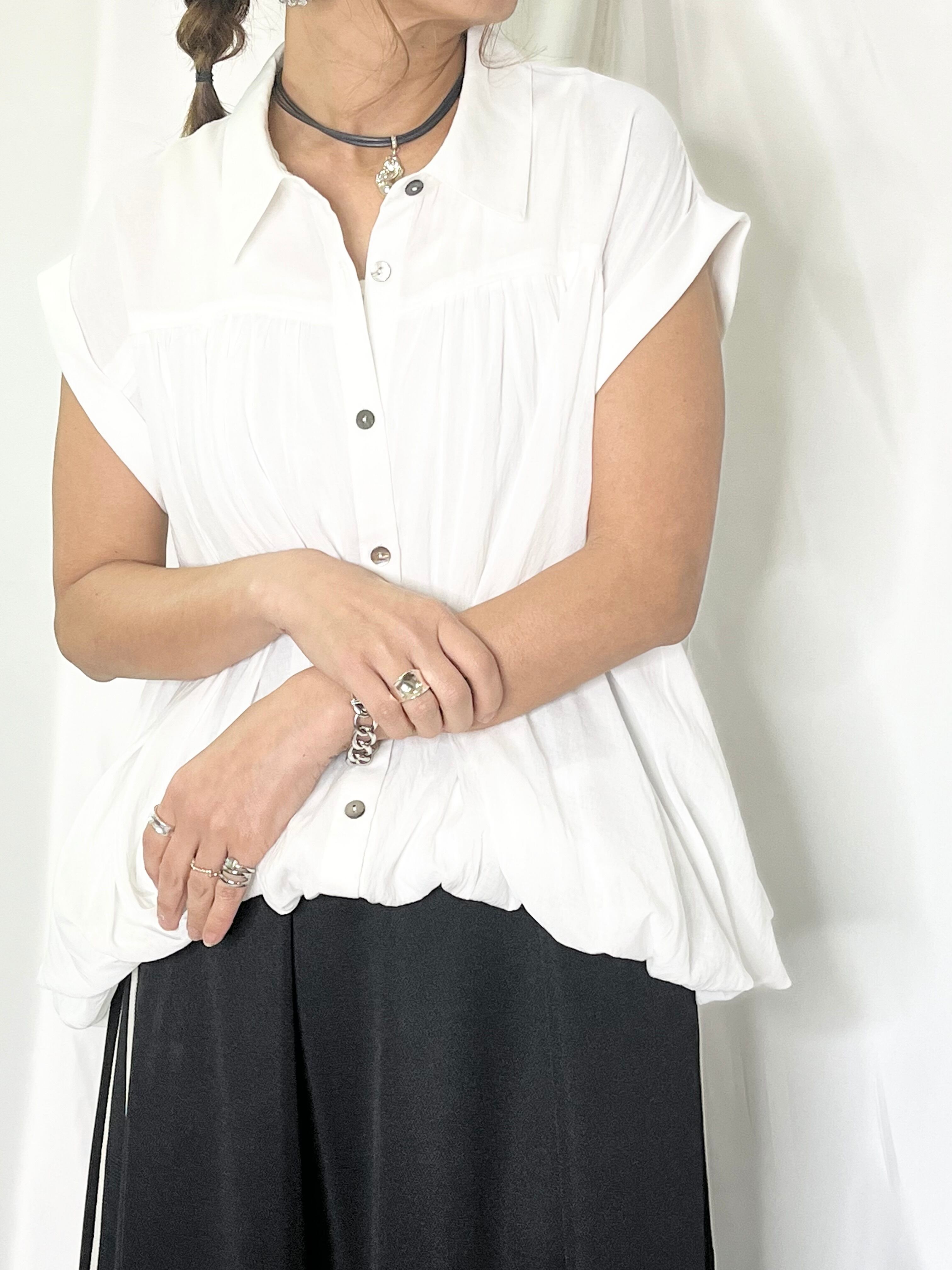 これからの季節に大活躍してくれそうなサラッと肌触りのバルーンブラウスです。