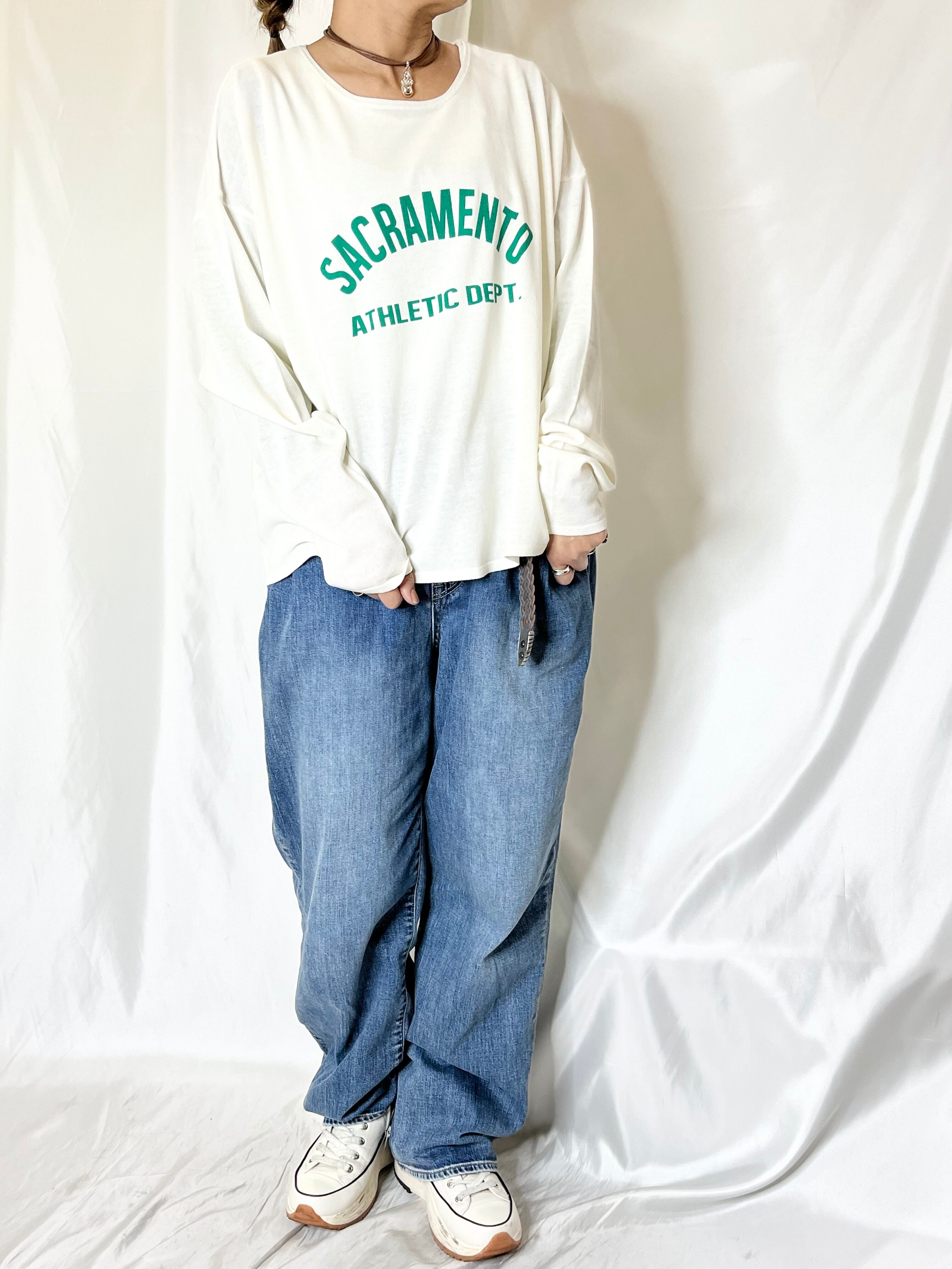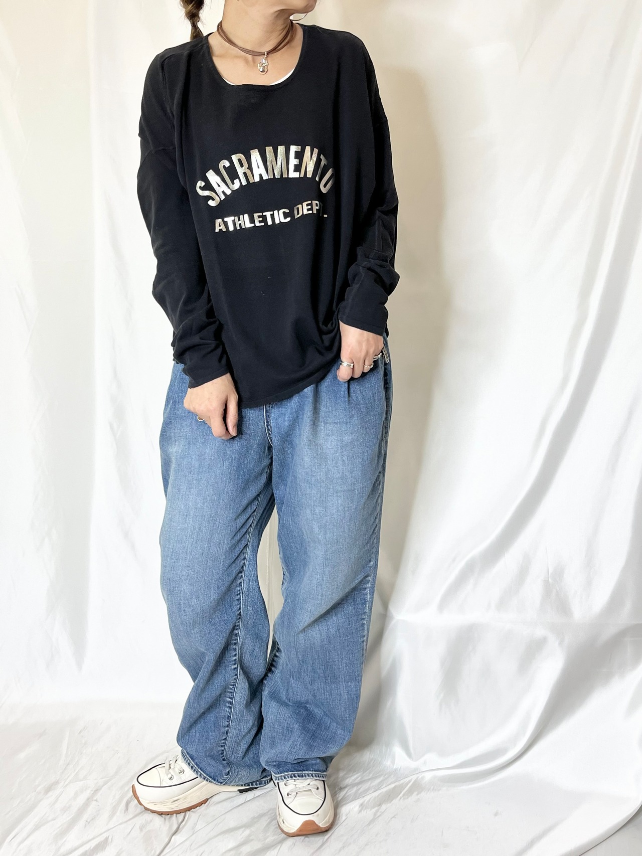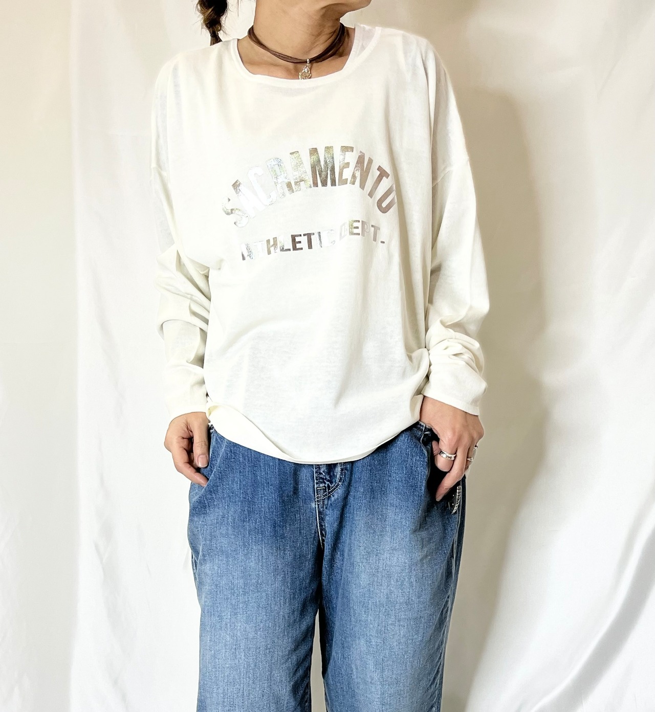 少しショート丈なのでタンクトップとのレイヤードもオススメ。