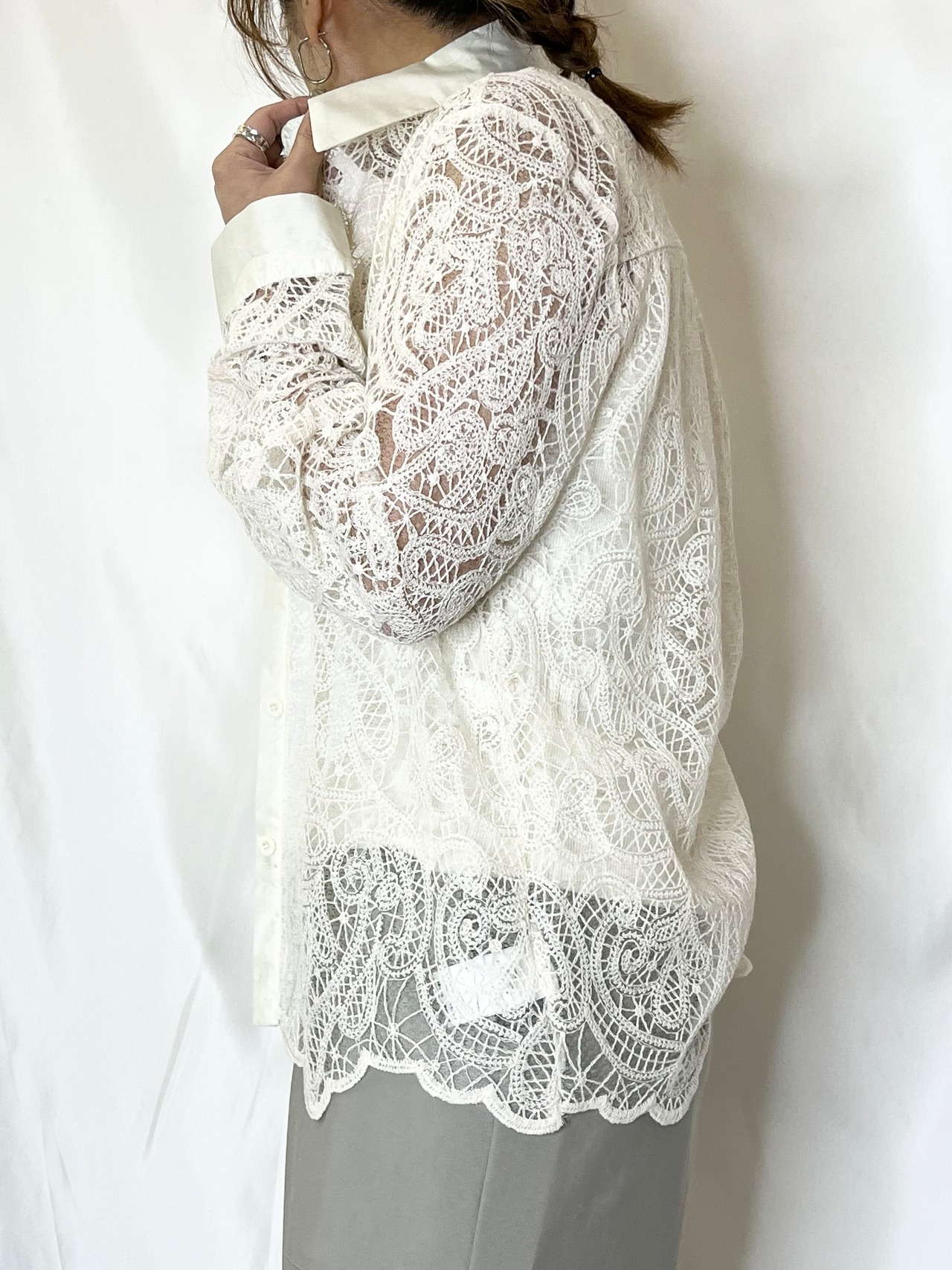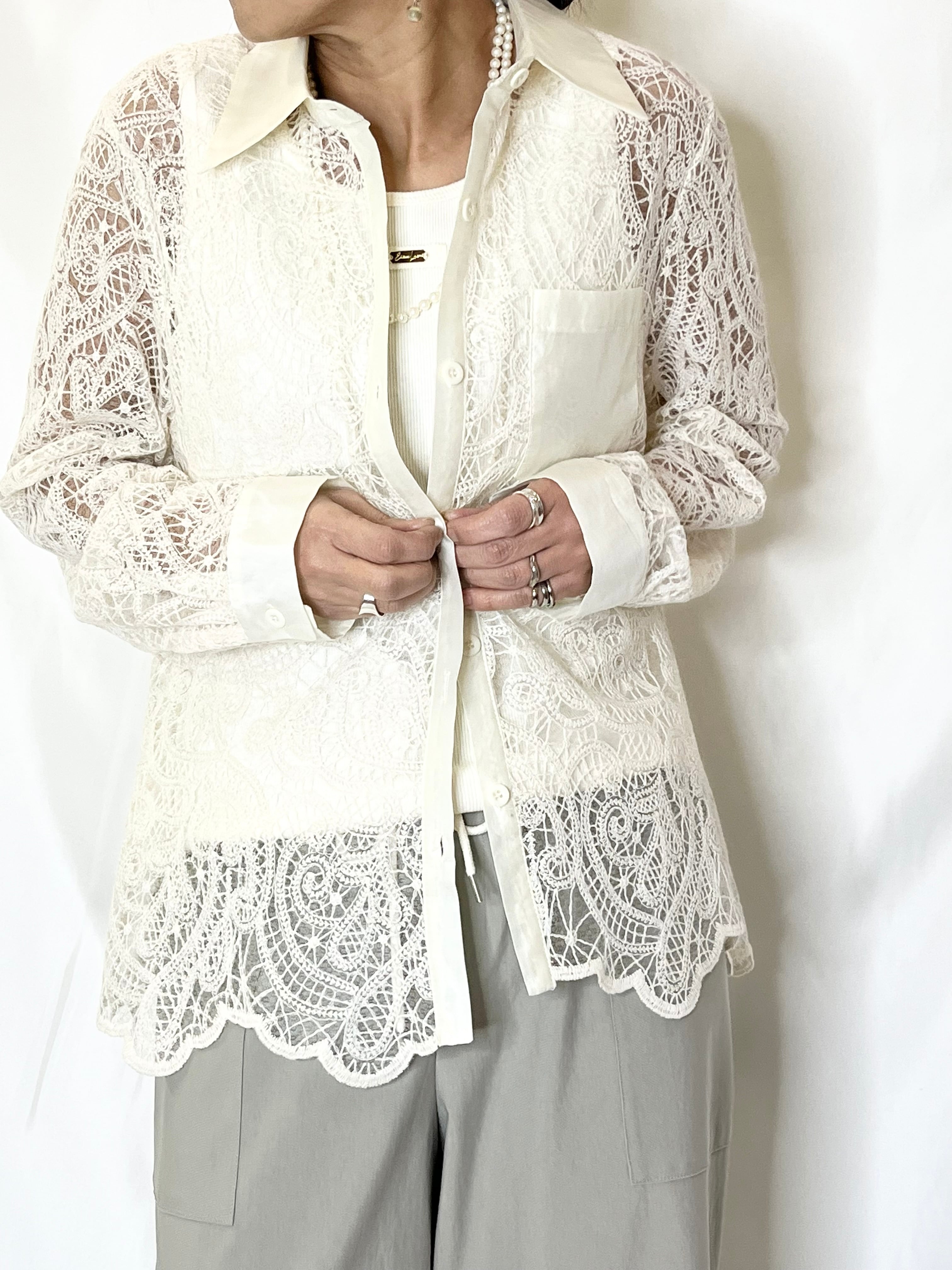 上品でデイリー使いにもコーディネート出来るレースシャツ。