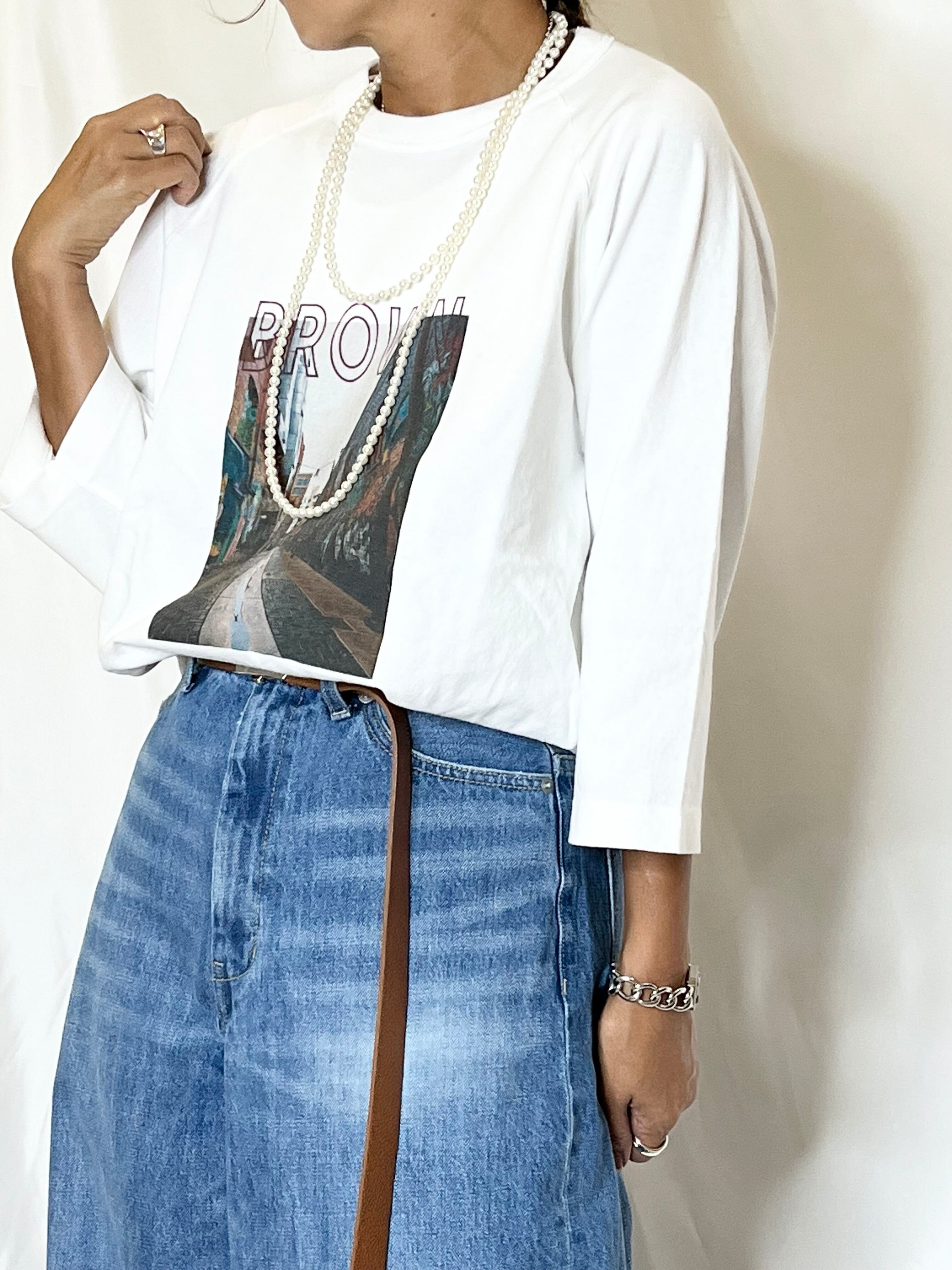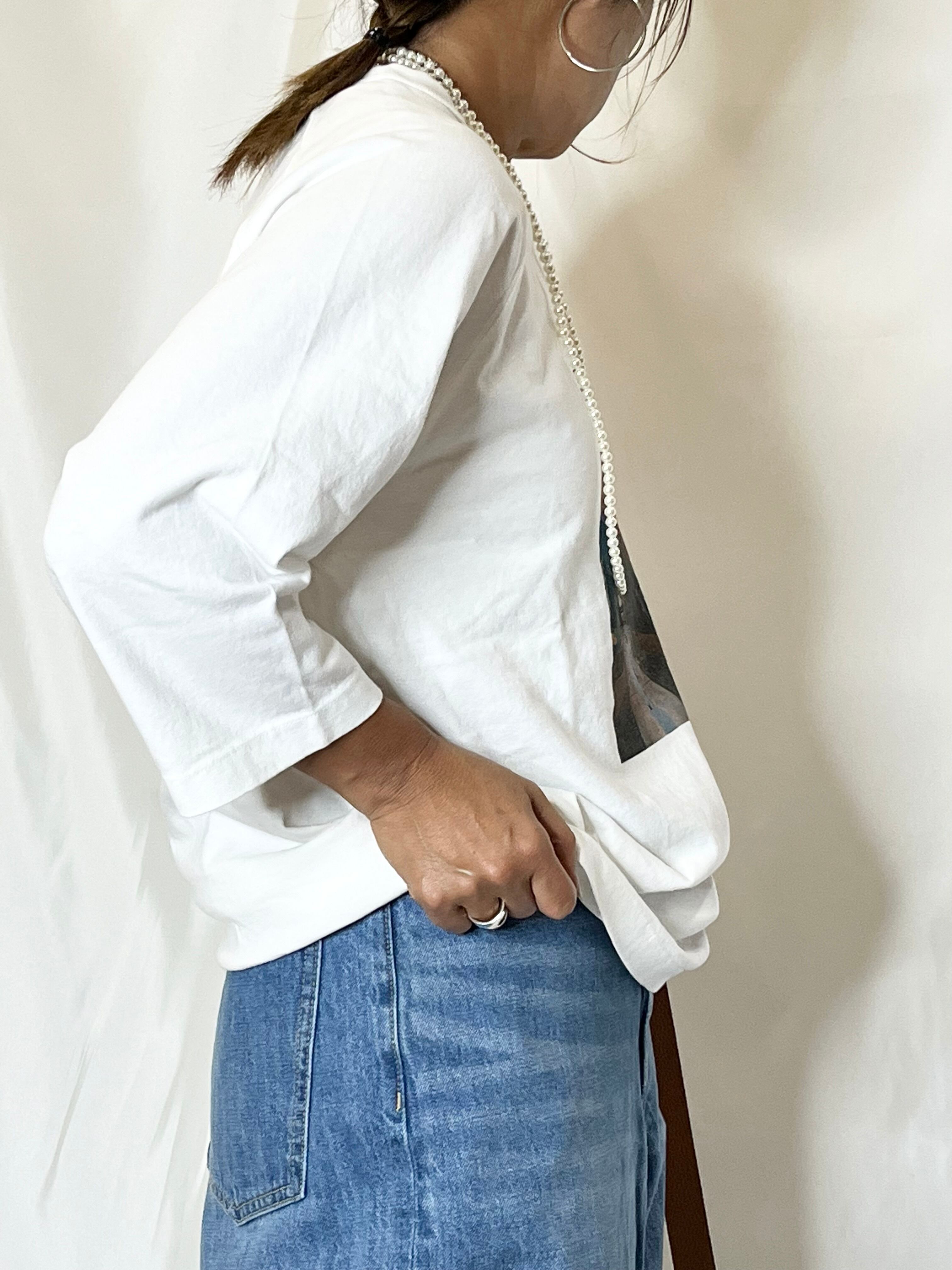 シャツ。ラグランの7分袖で、後ろ着丈少し長め