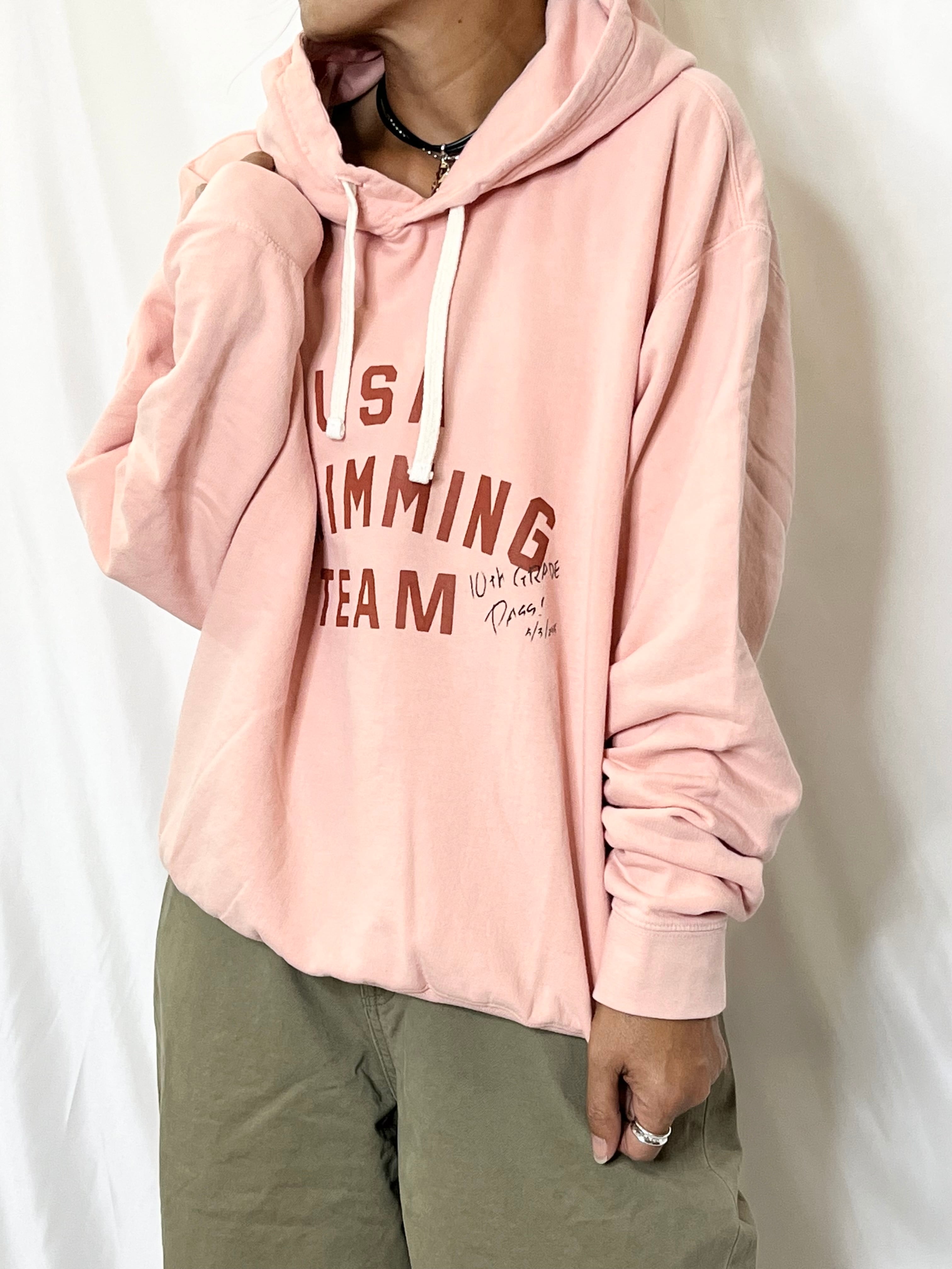 スクールスウェットにペンで書き足したようなイメージのロゴプリント。