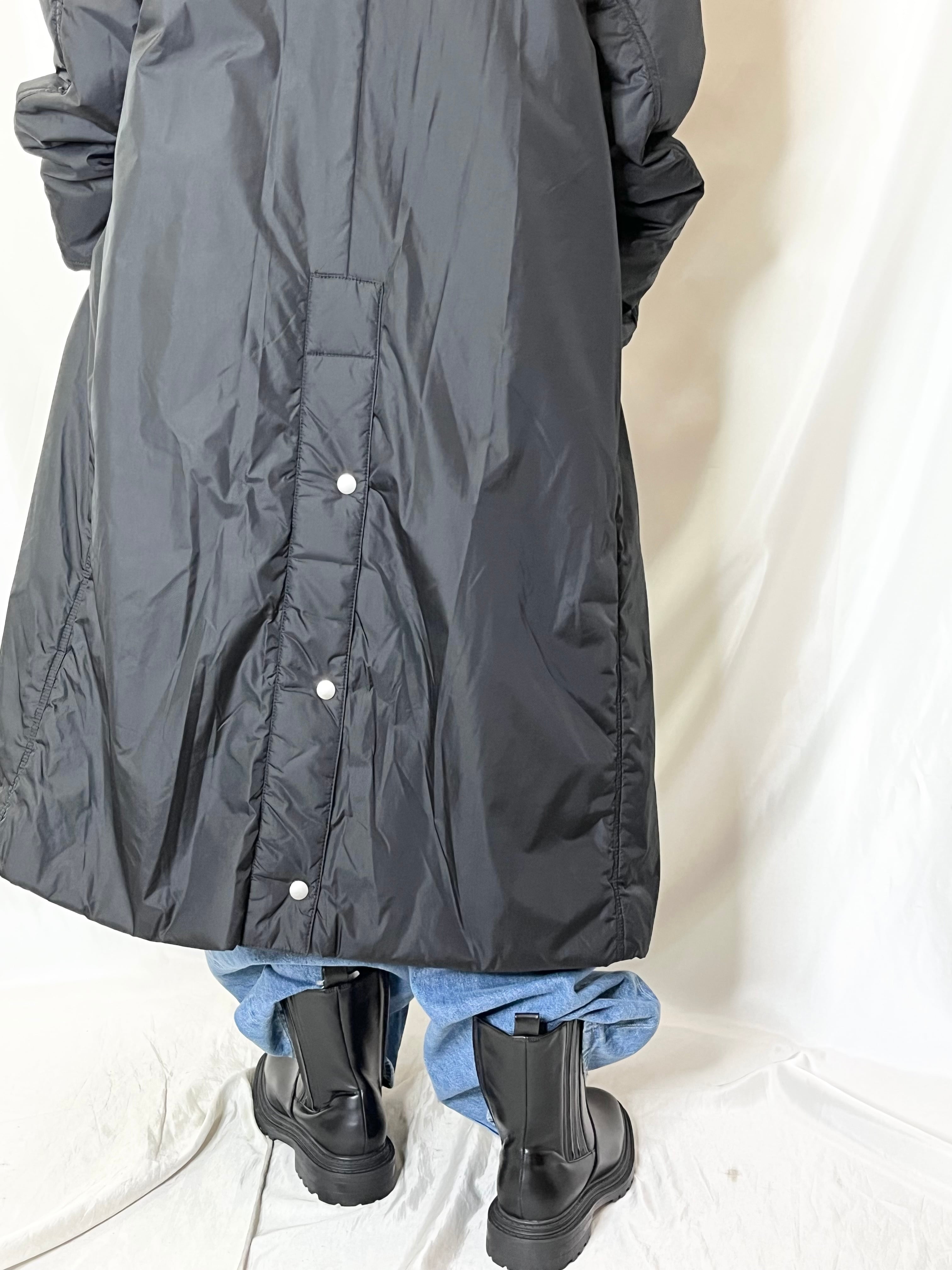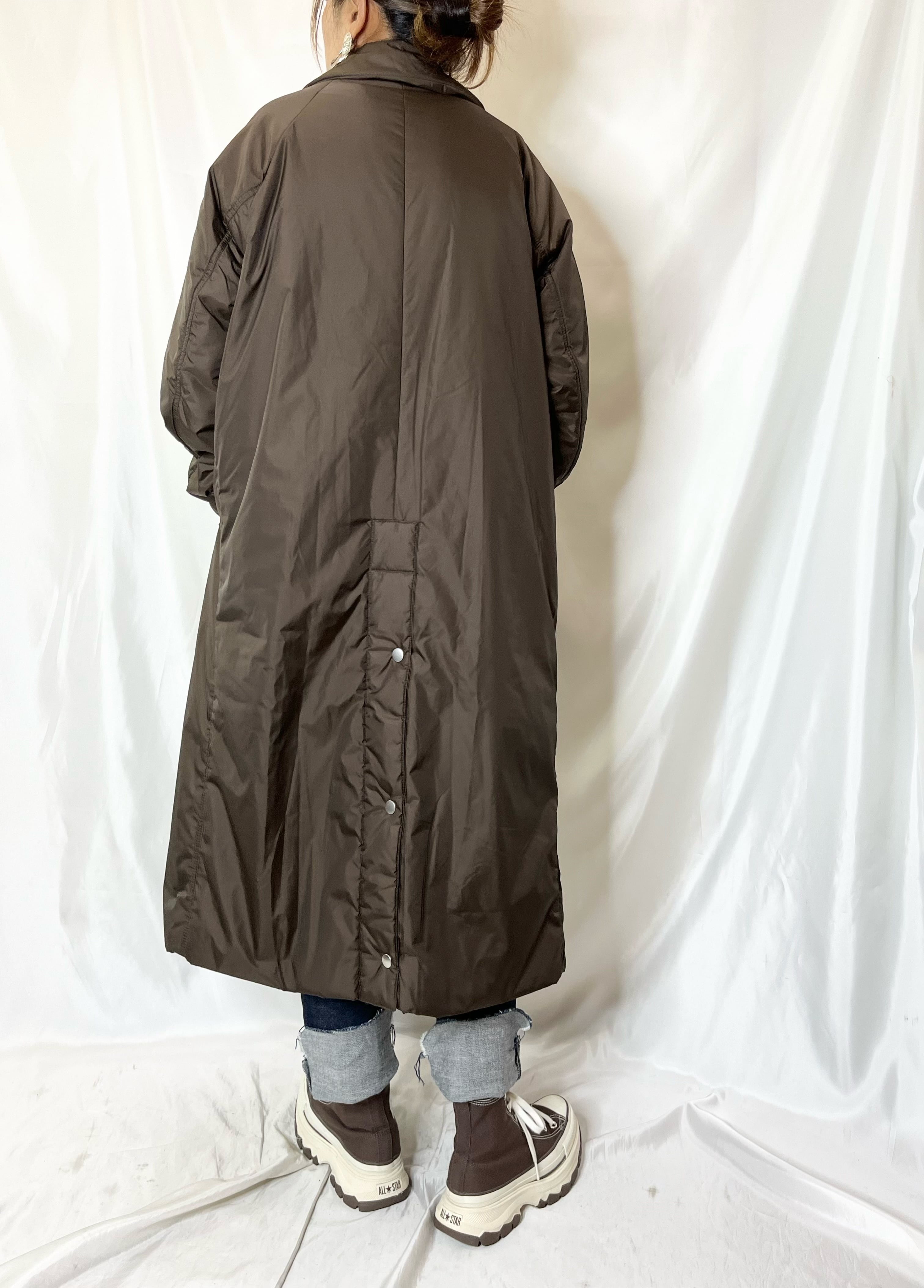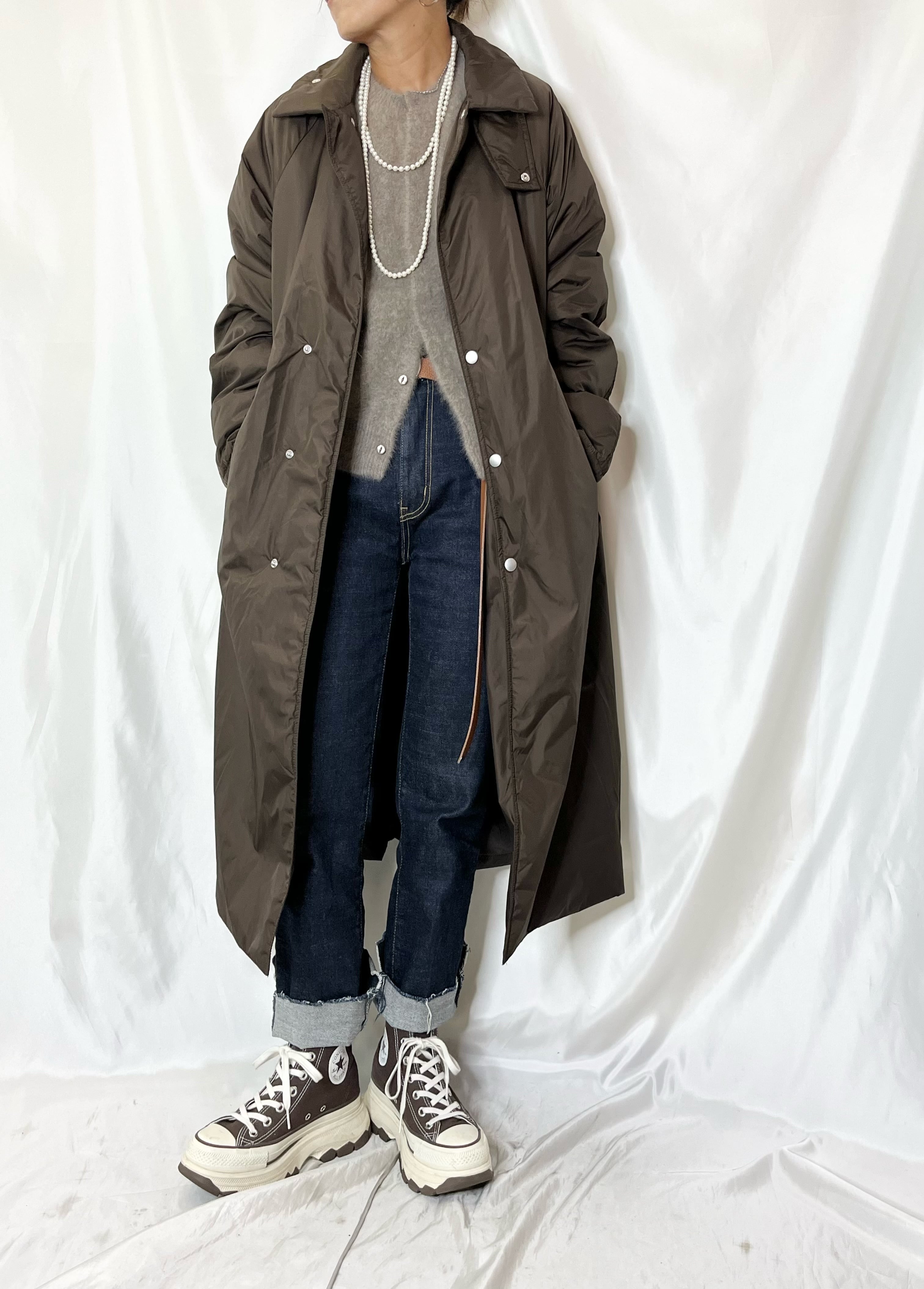 裏地は撥水加工を施した高密度ナイロンタフタ、パッドは軽くて暖かい進化系中綿を使用。