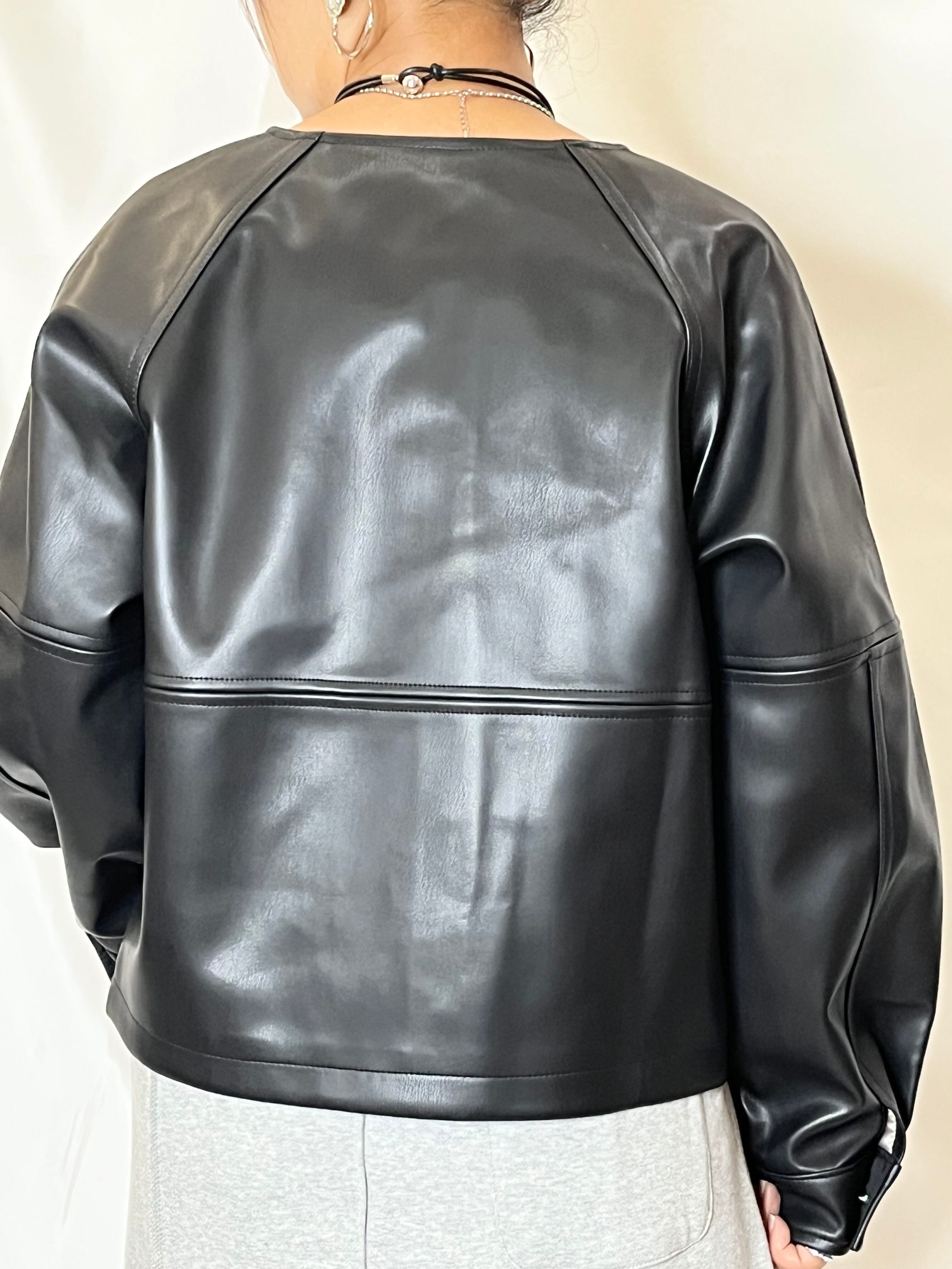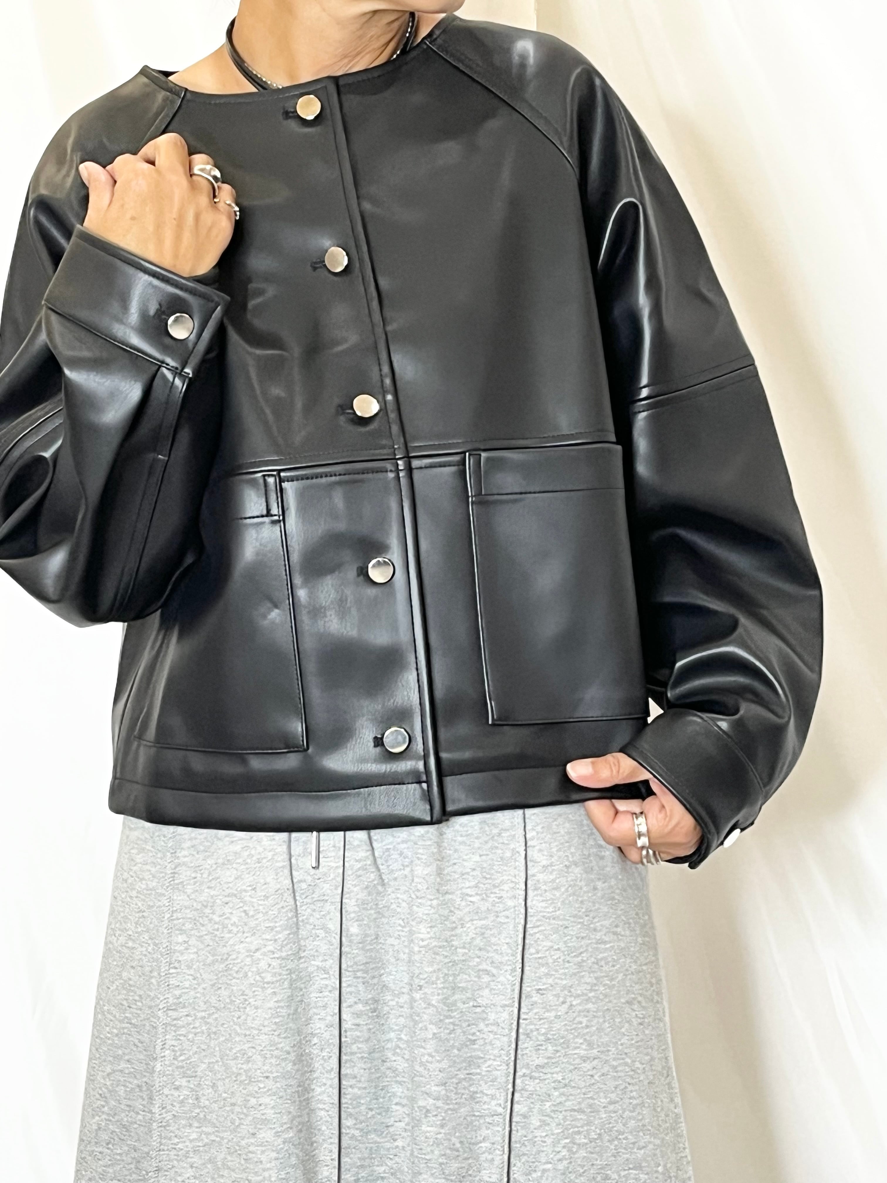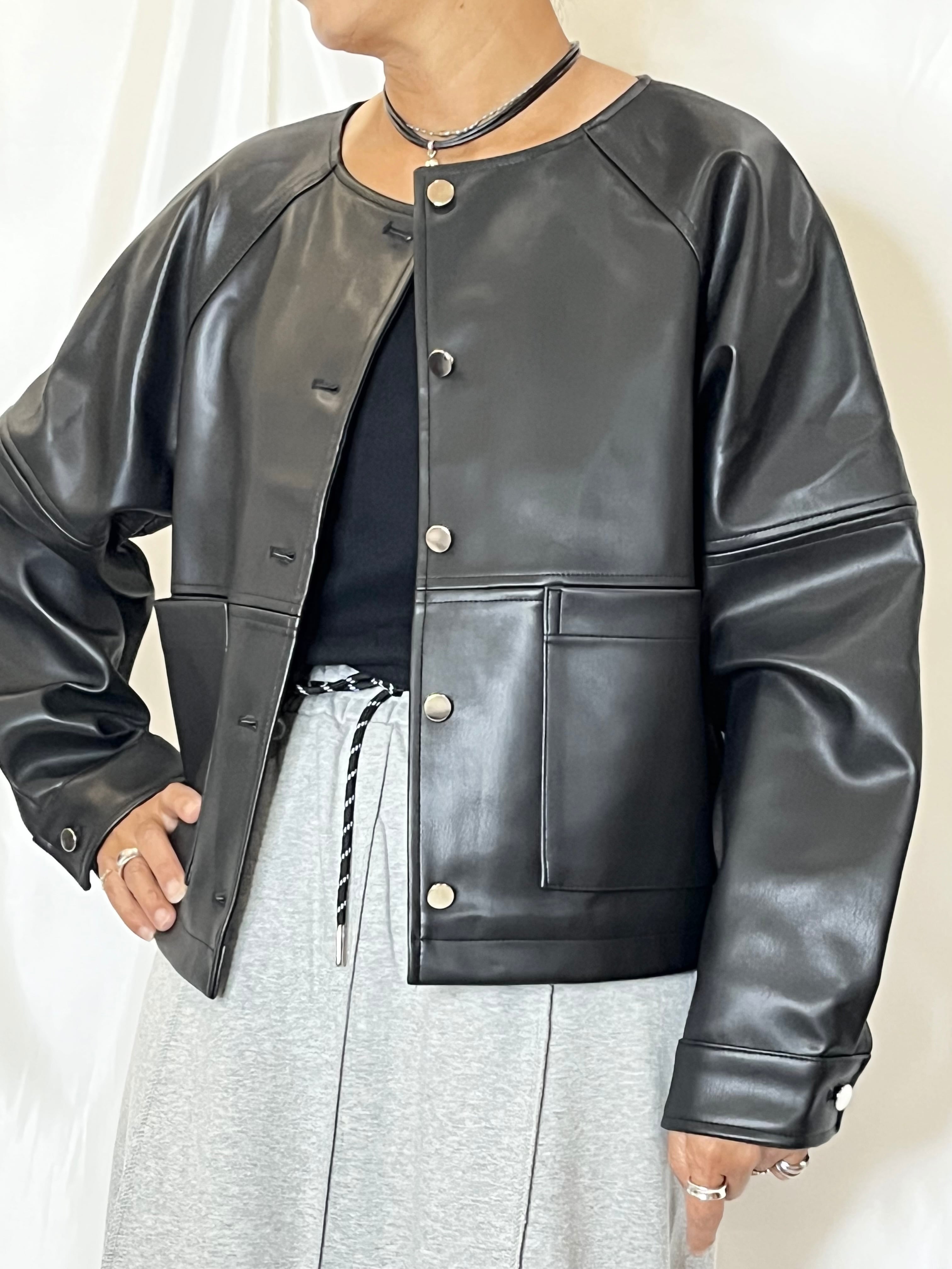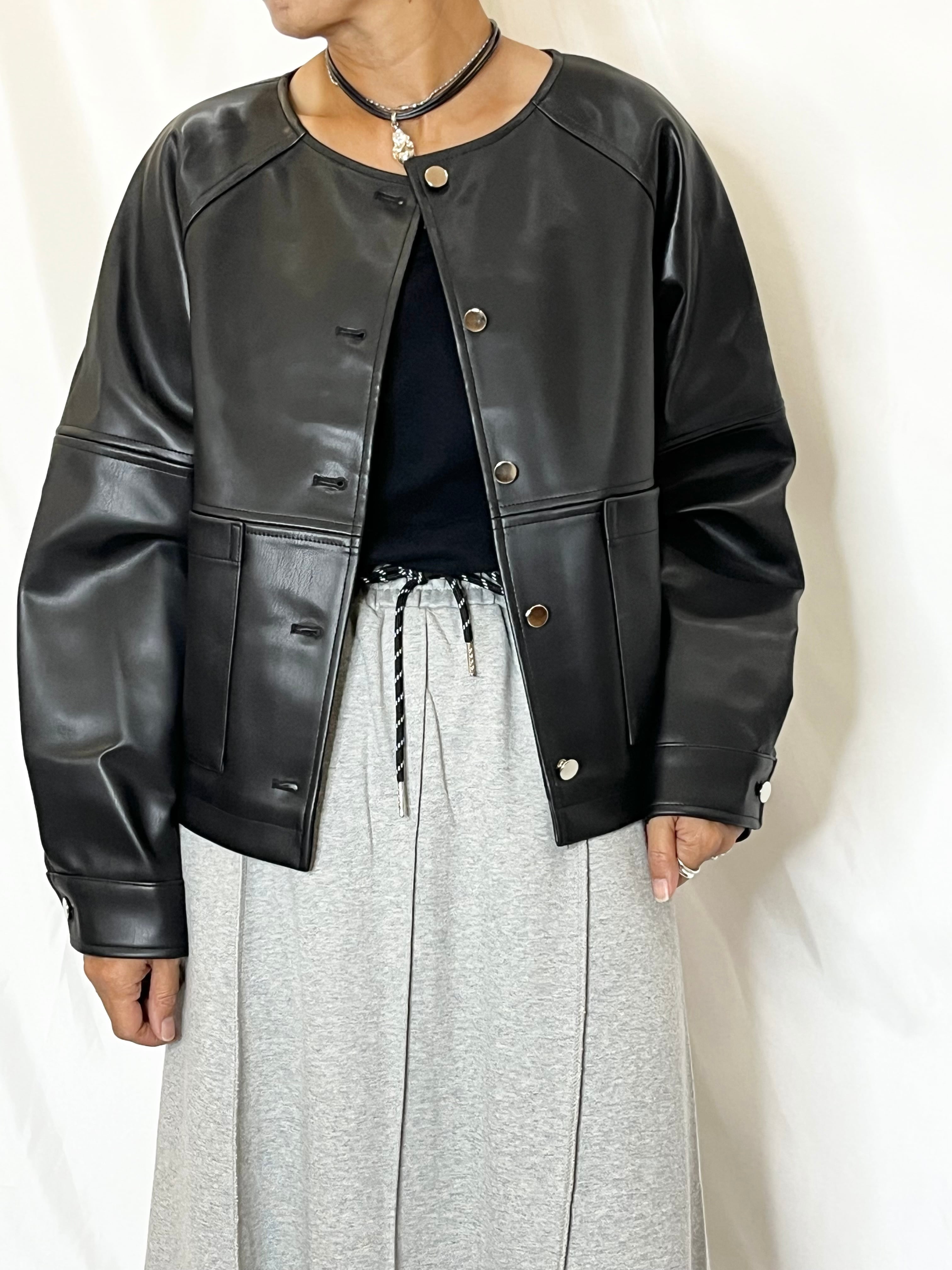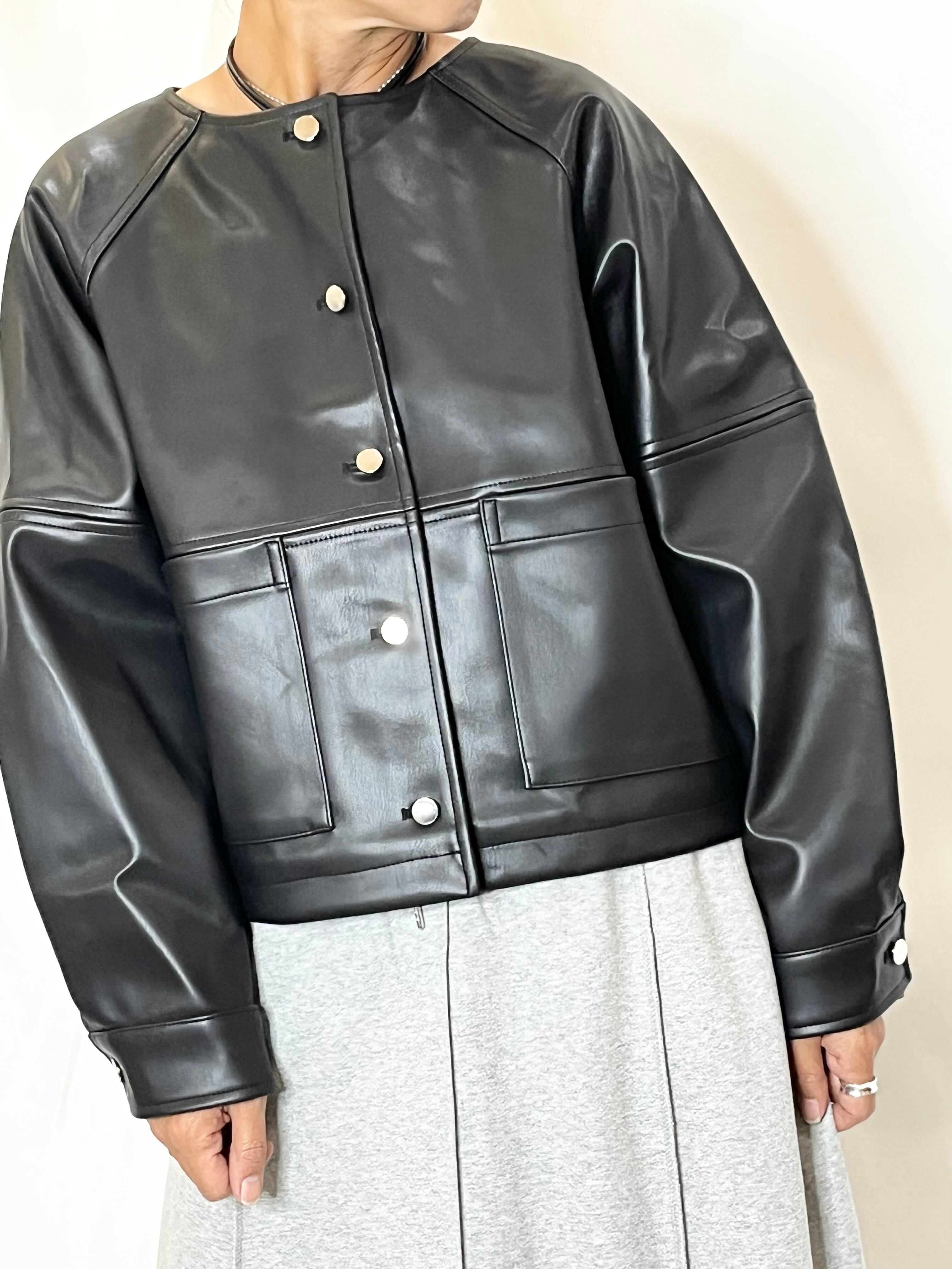 MARGAUX VINTAGE フェイクレザーノーカラージャケット