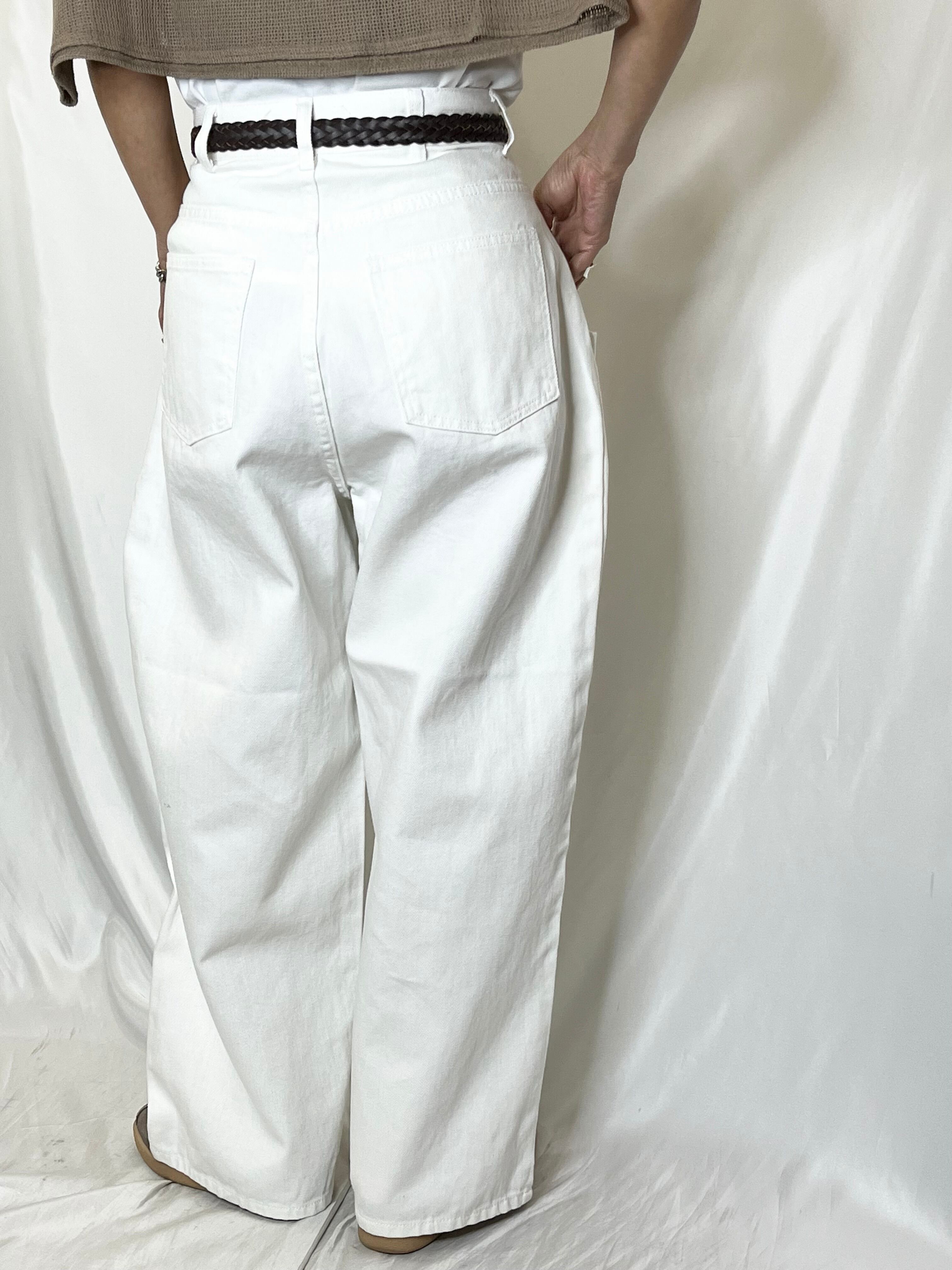 ゆるーいカーブシルエットのホワイトデニムパンツ。