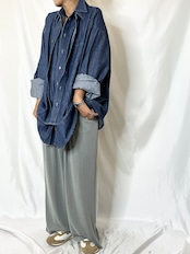 ライトオンスデニムを使用しているため軽量でシルエットはメンズシャツをラフに羽織った様なルーズ感はありつつ大人の女性に馴染む絶妙なバランスです。