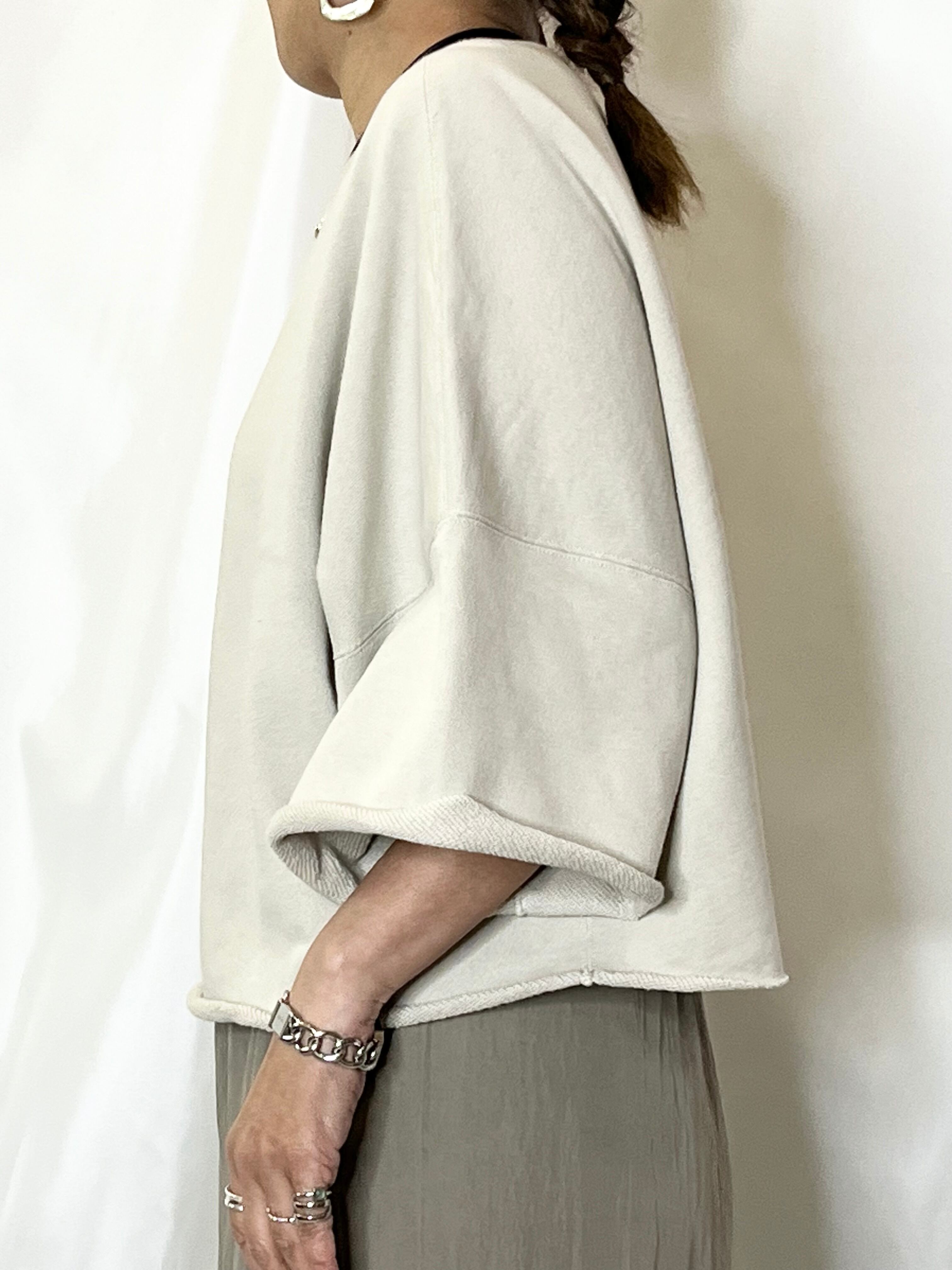 1枚でも重ね着を楽しんでもいただけるロングシーズン着回せる裏毛トップス。