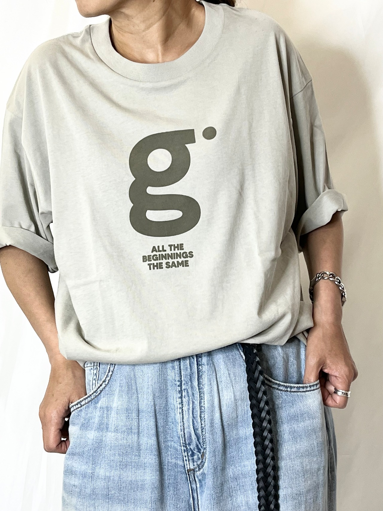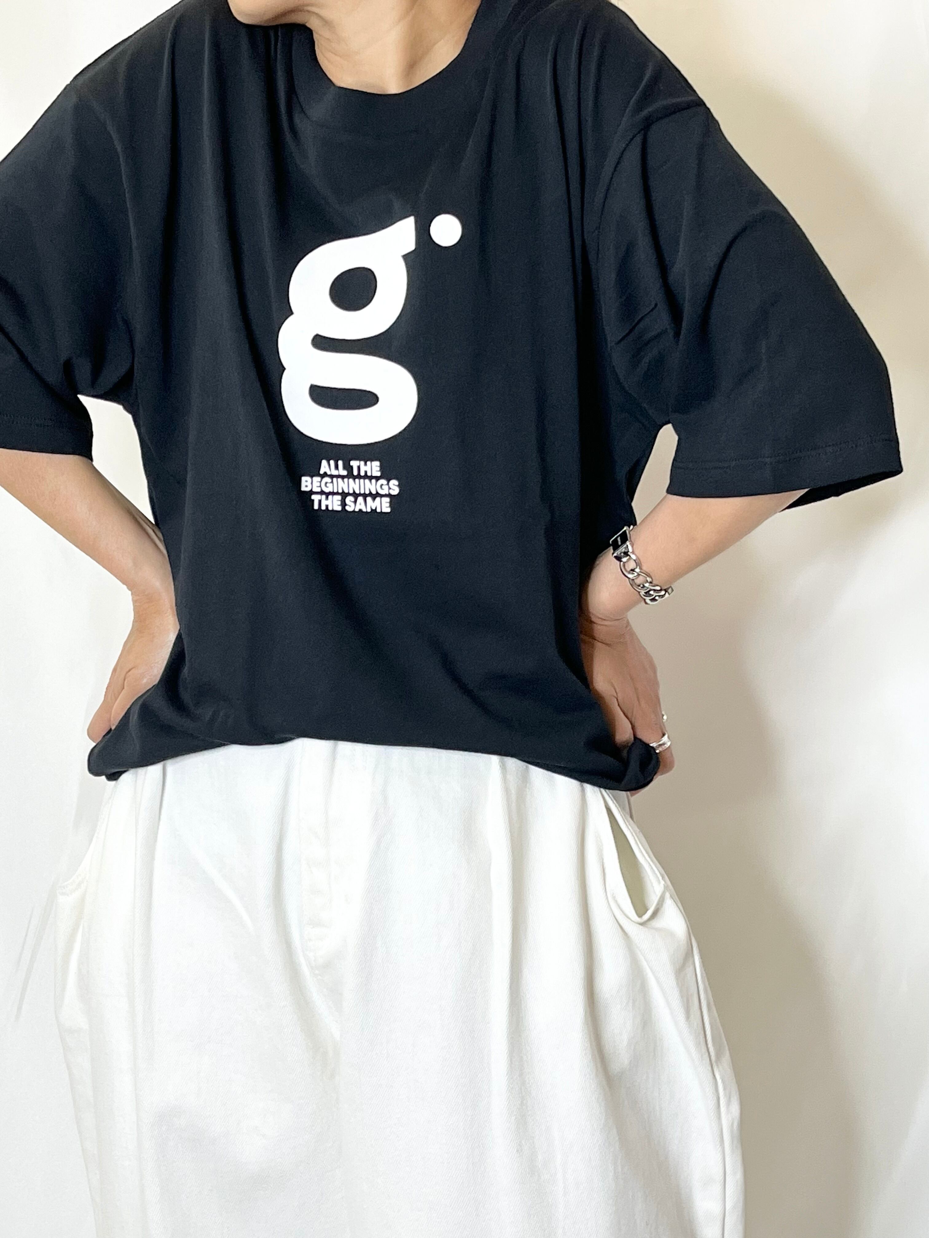 アルファベットのgがアイキャッチなプリントTシャツTシャツです。