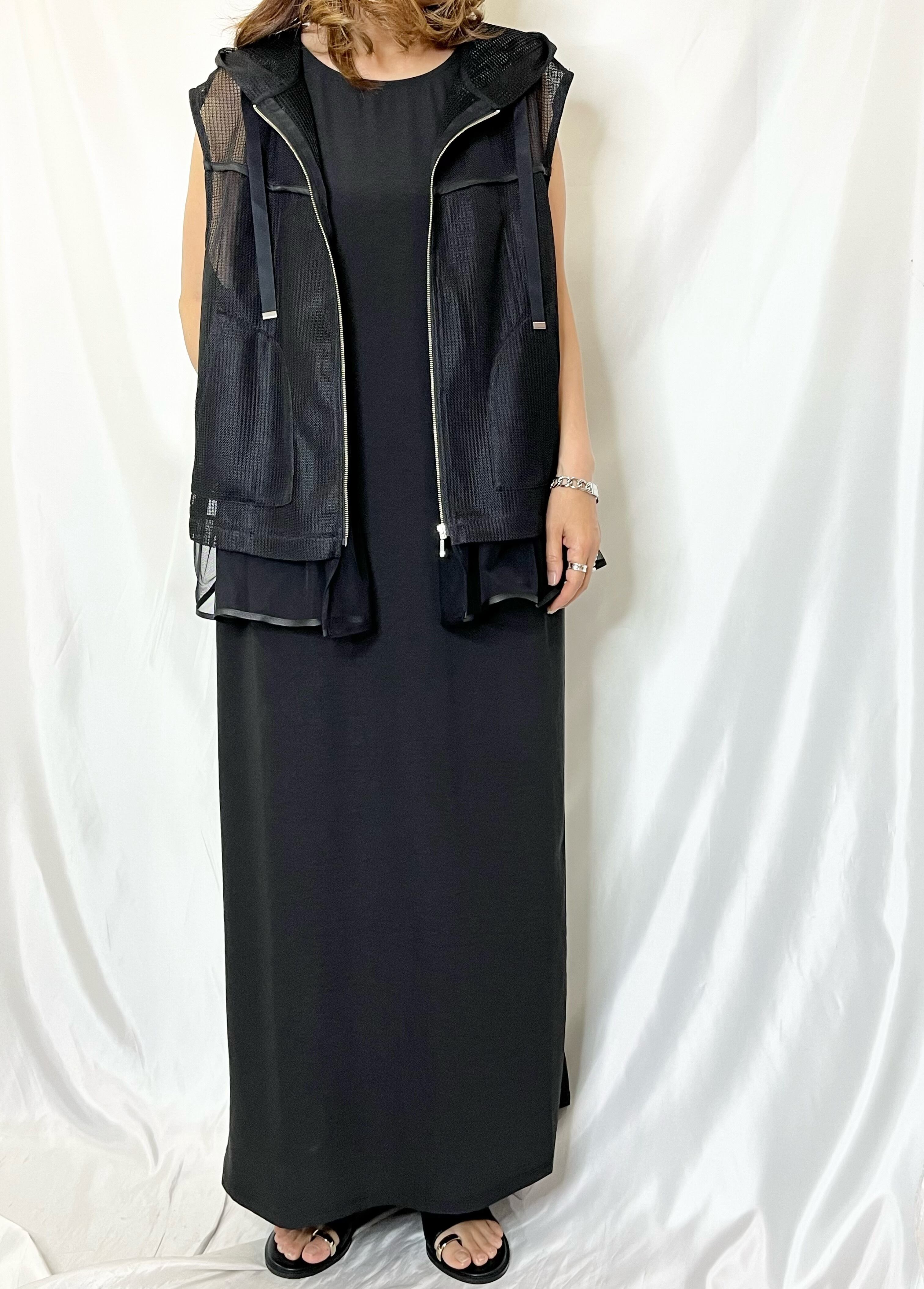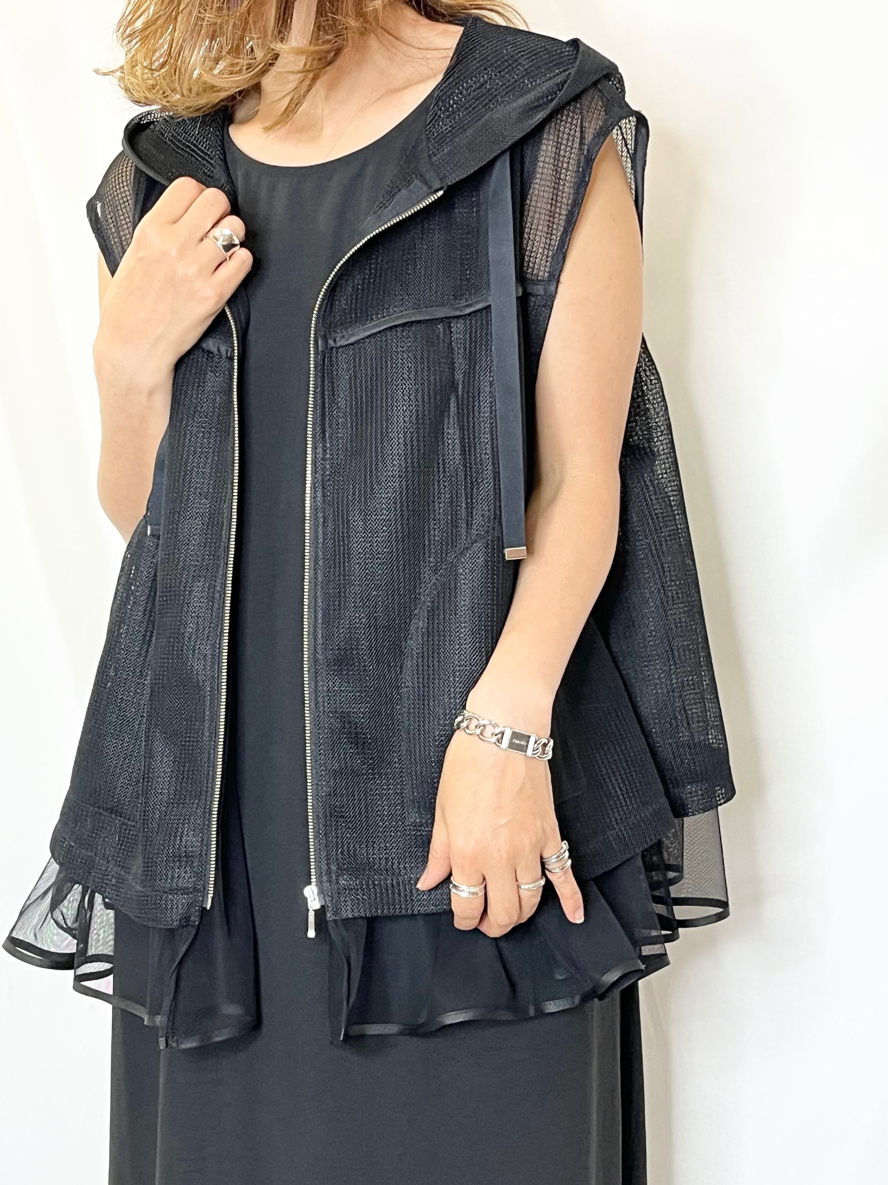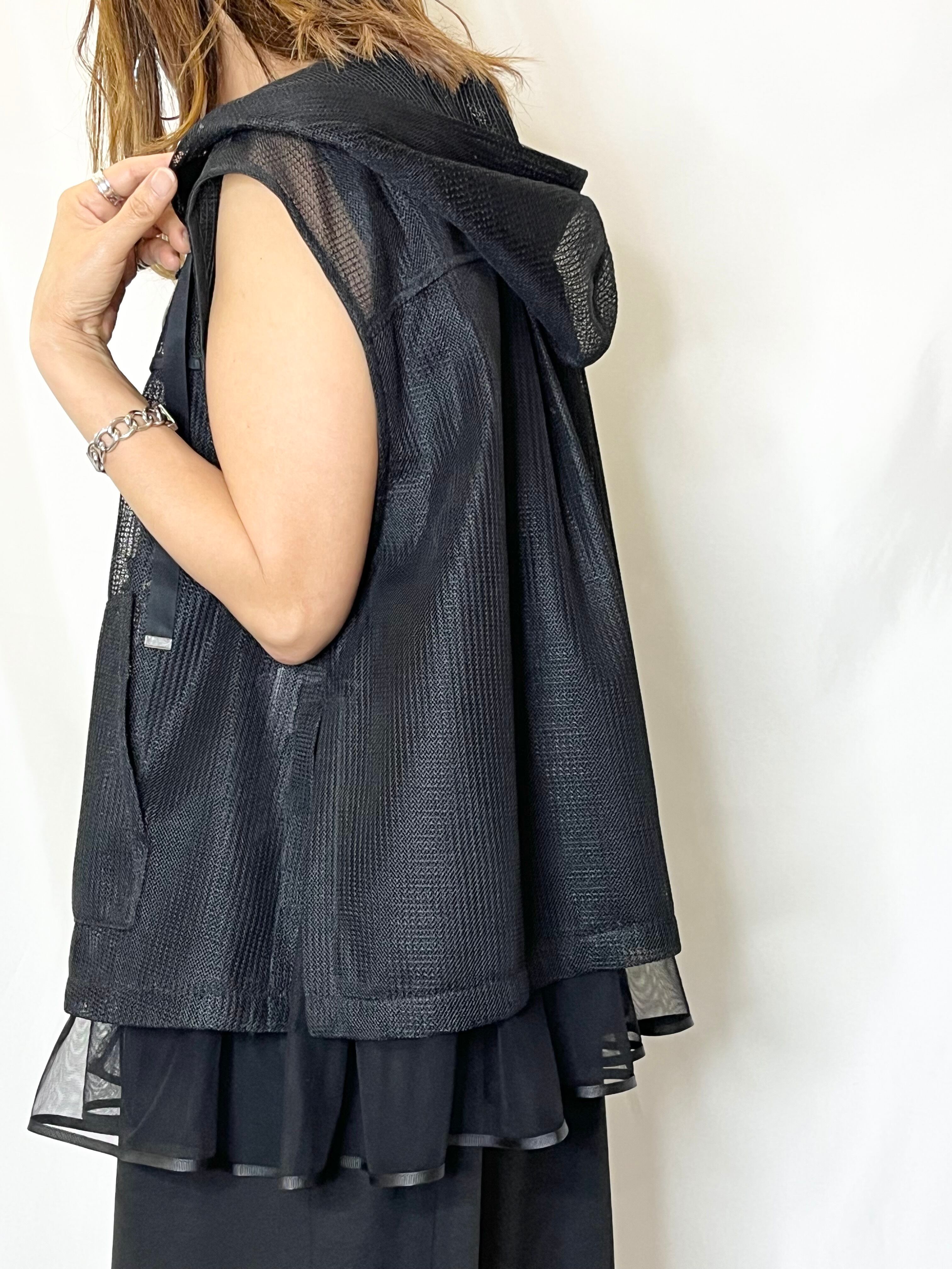 2種類のメッシュ生地を貼り合わせたボンディング素材のメッシュフーディー。