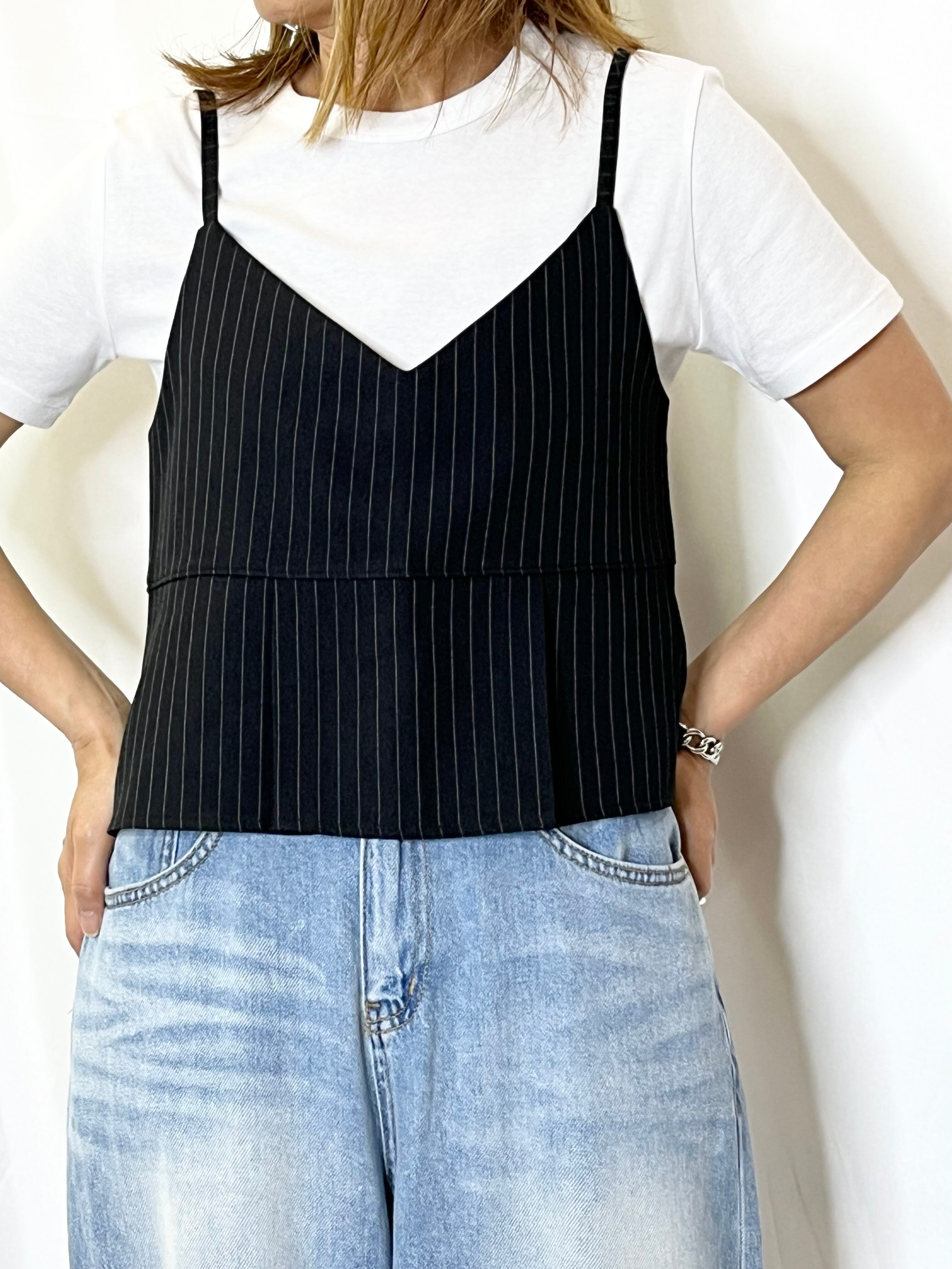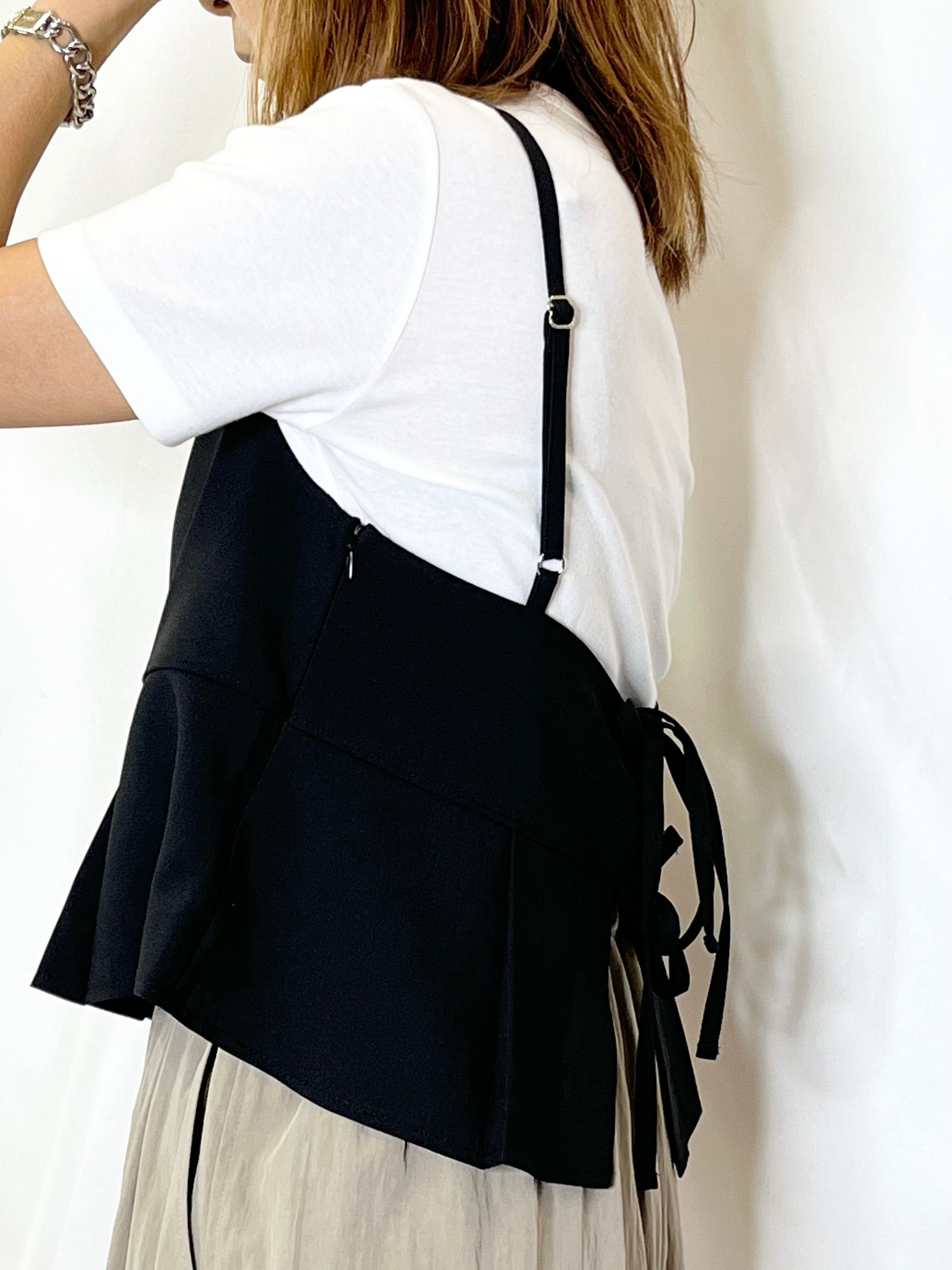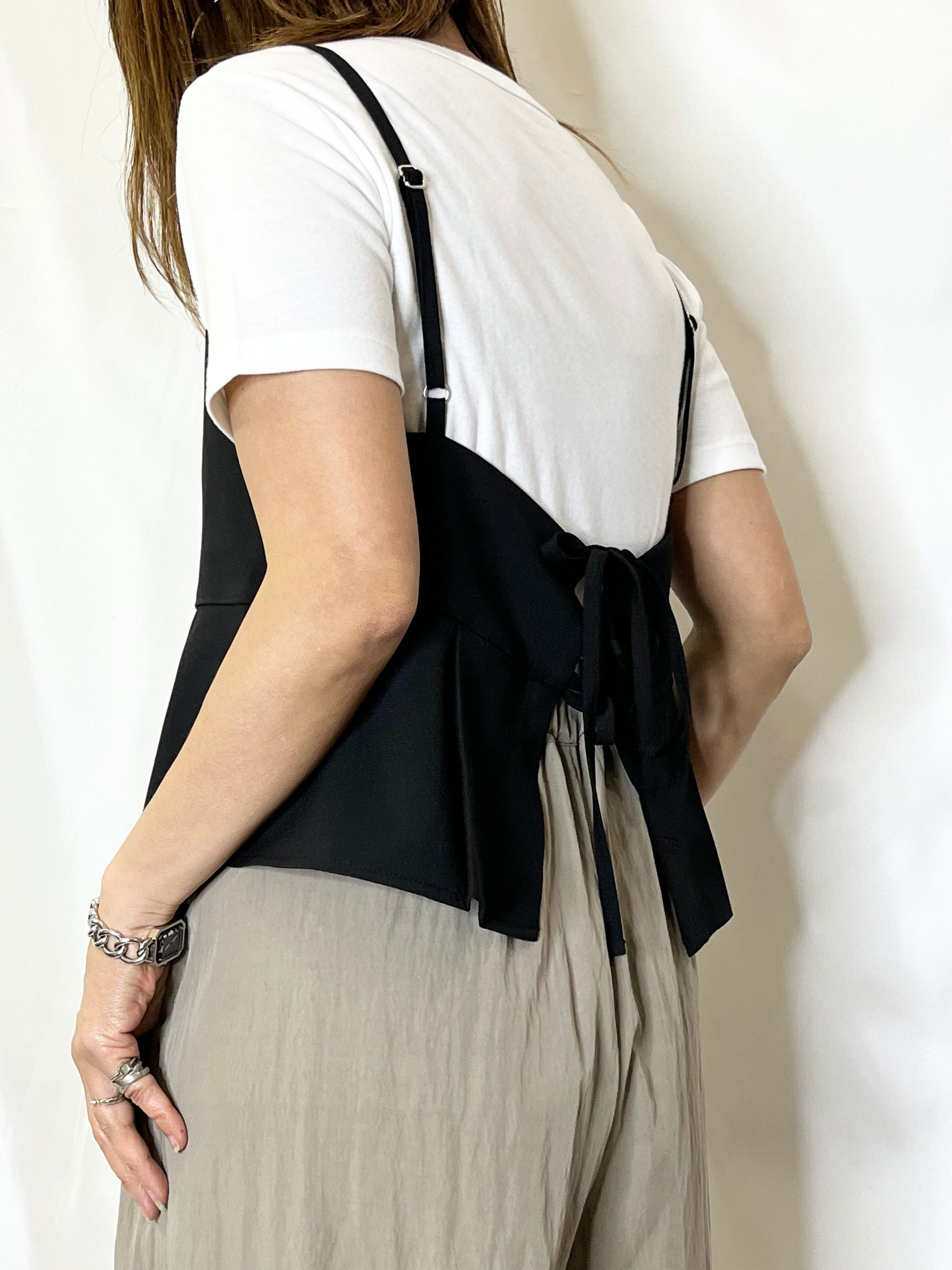 大人女子にも取り入れやすいキャミタイプのビスチェ。