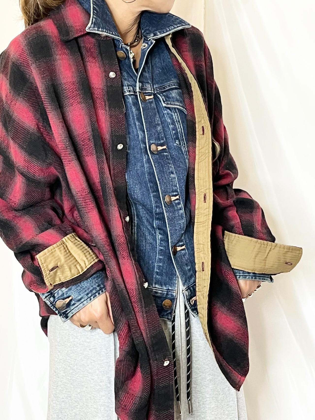アメカジテイストな色合いとオンブレーチェックが目を惹き、柔らかさと優しいタッチを持つ素材感。