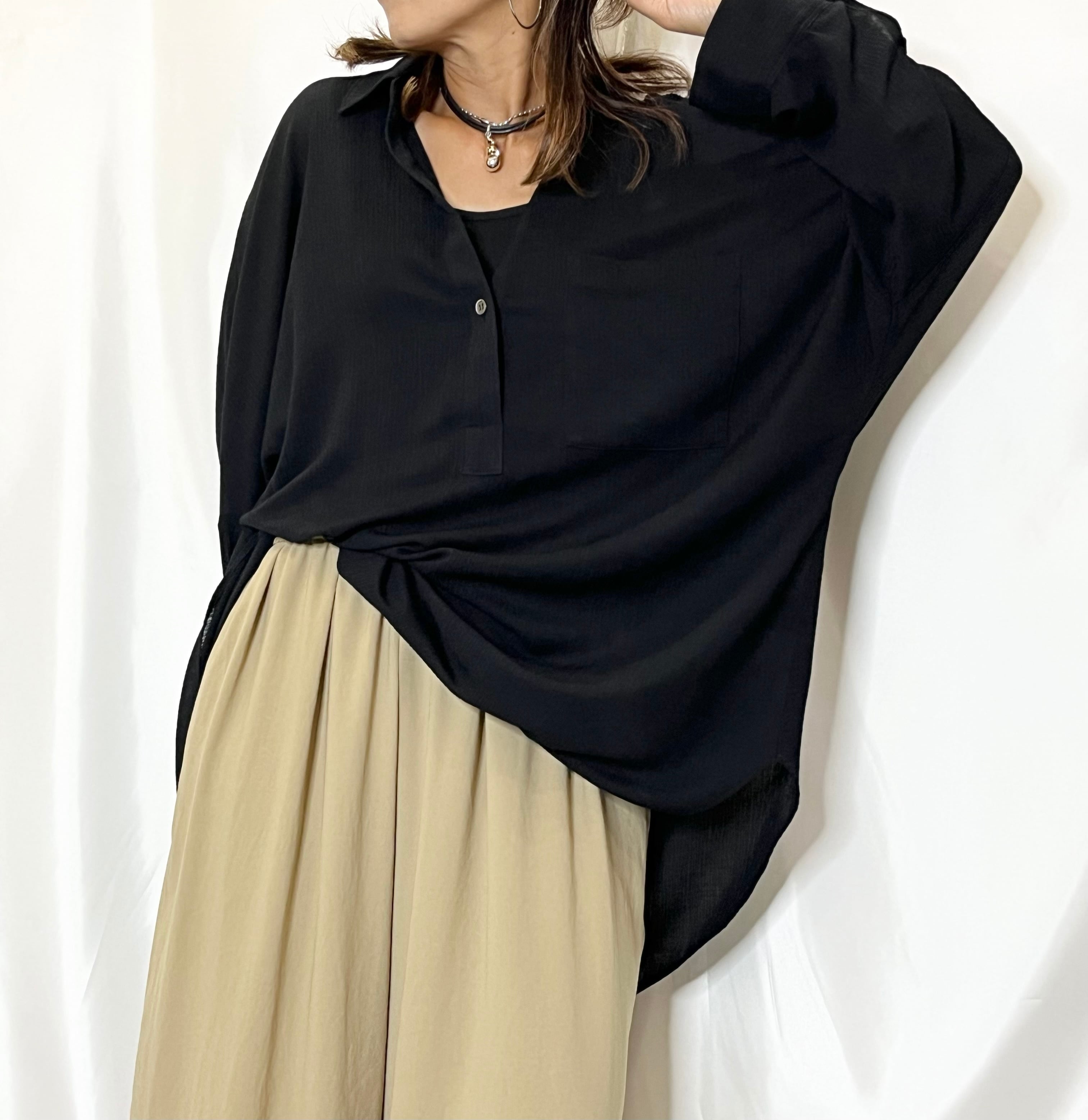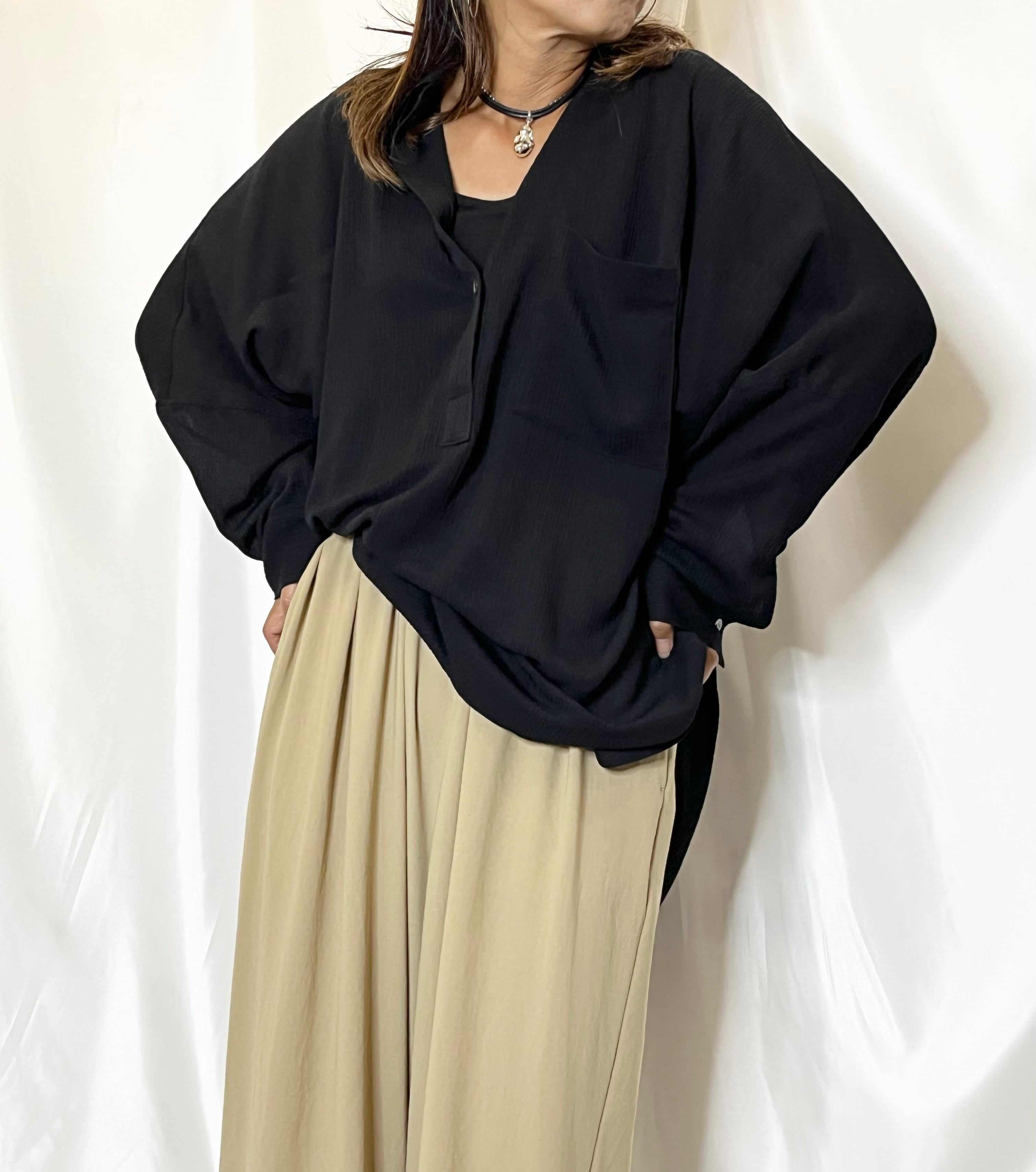 身体のラインを拾わないゆったりシルエットで、自然と華奢見えする美しいフォルムに♩