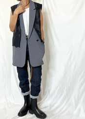 ハンサム仕上げのジレにオーガンジー刺繍ベストを合わせた存在感ある1枚。