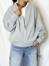 何かとこの時期から使えるスウェット地の羽織りアイテムは着回し力抜群です。