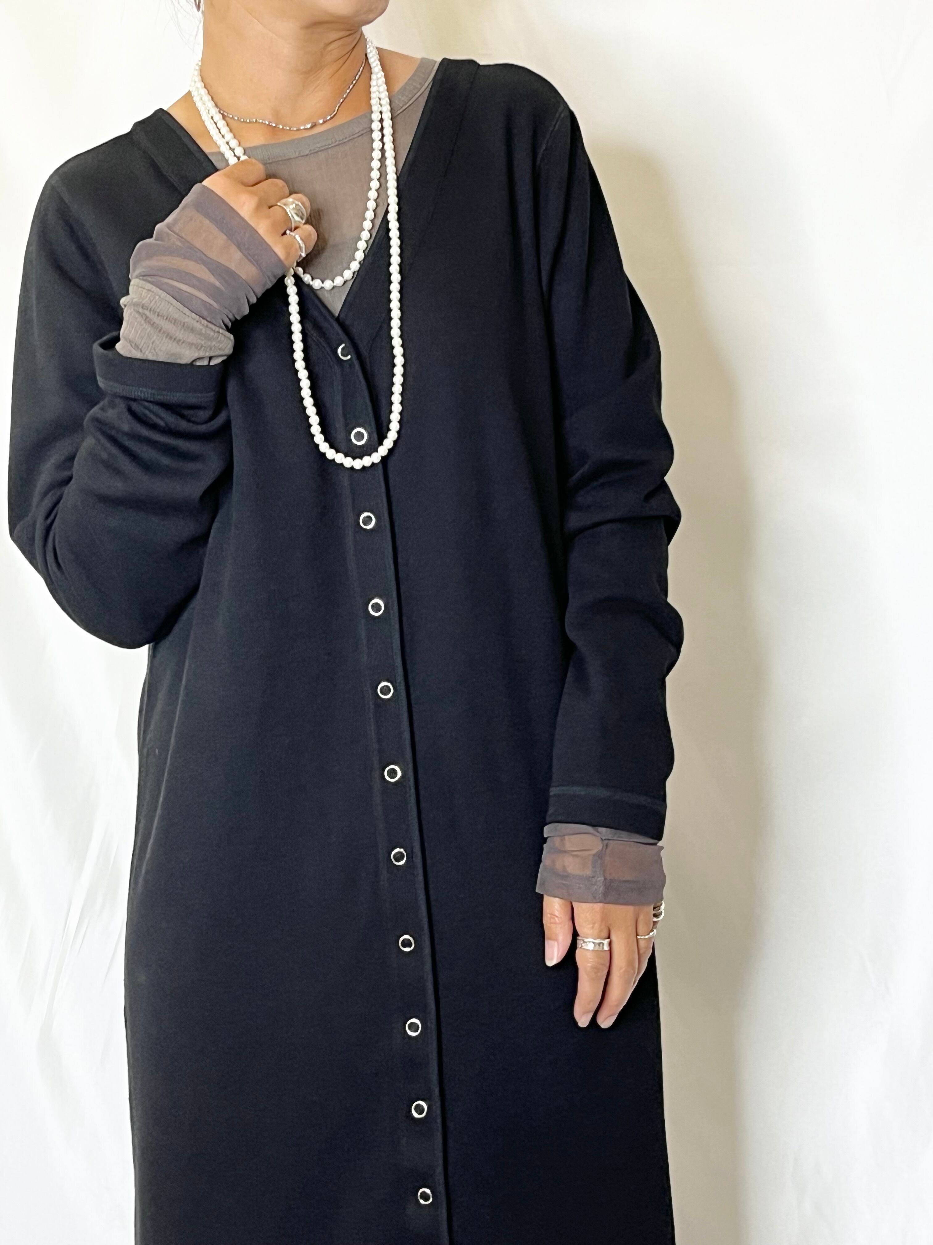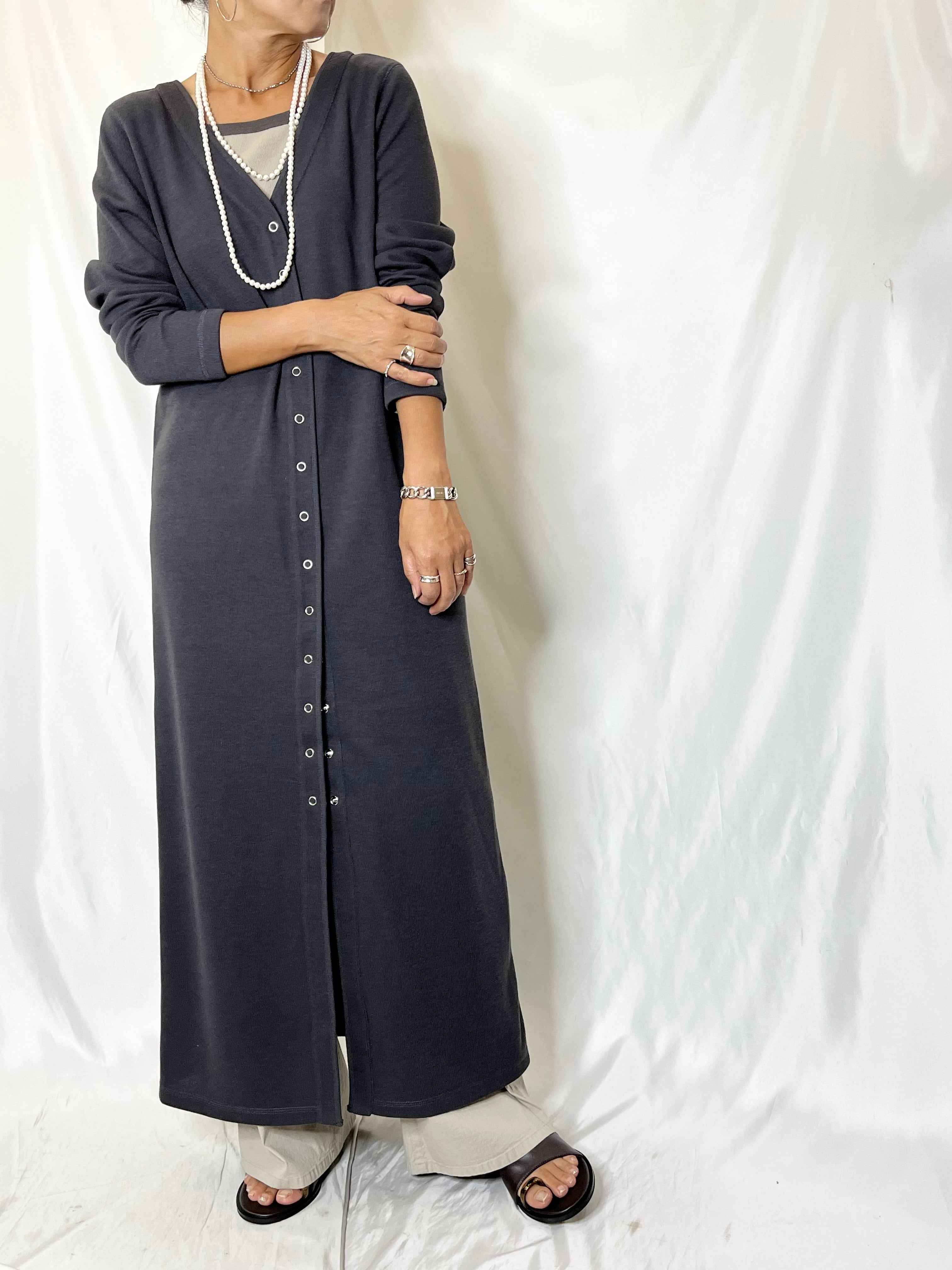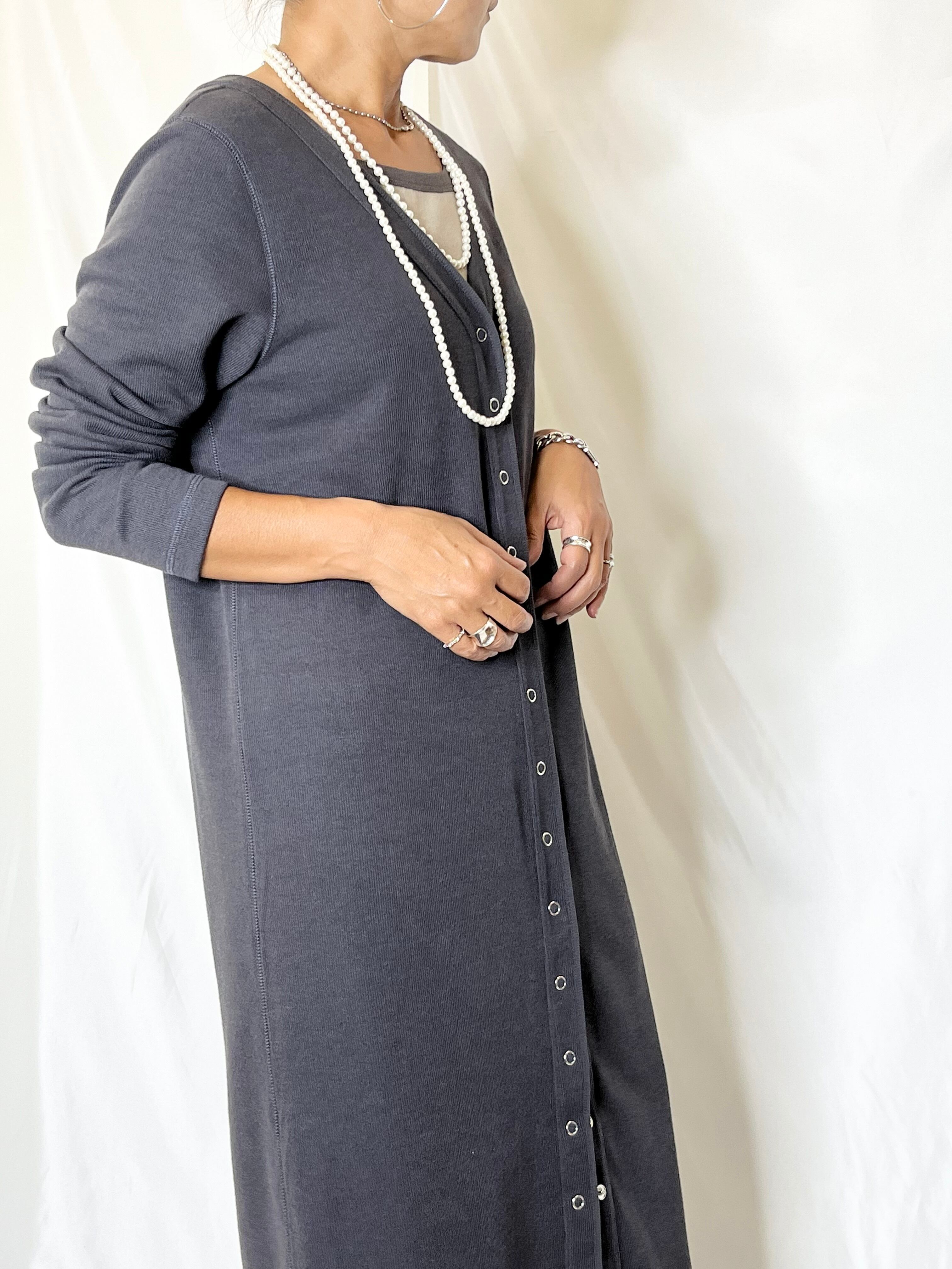 ボトムにパンツ、スカートいろんなコーディネートが楽しめる細見えするワンピースです。