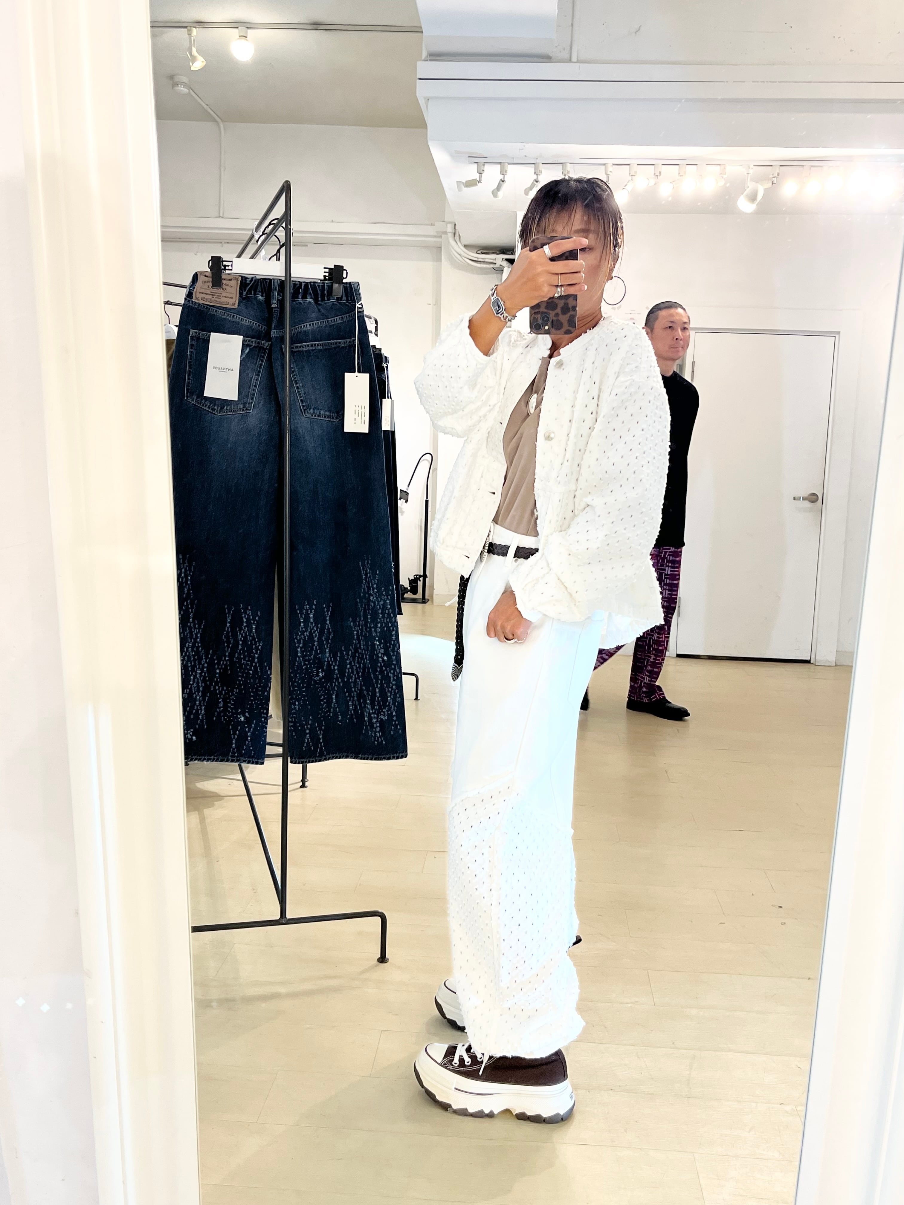 前後身の下半分にはデニムベースに0.5cmほどの穴あけだめーを施した、他にないデザイン♡