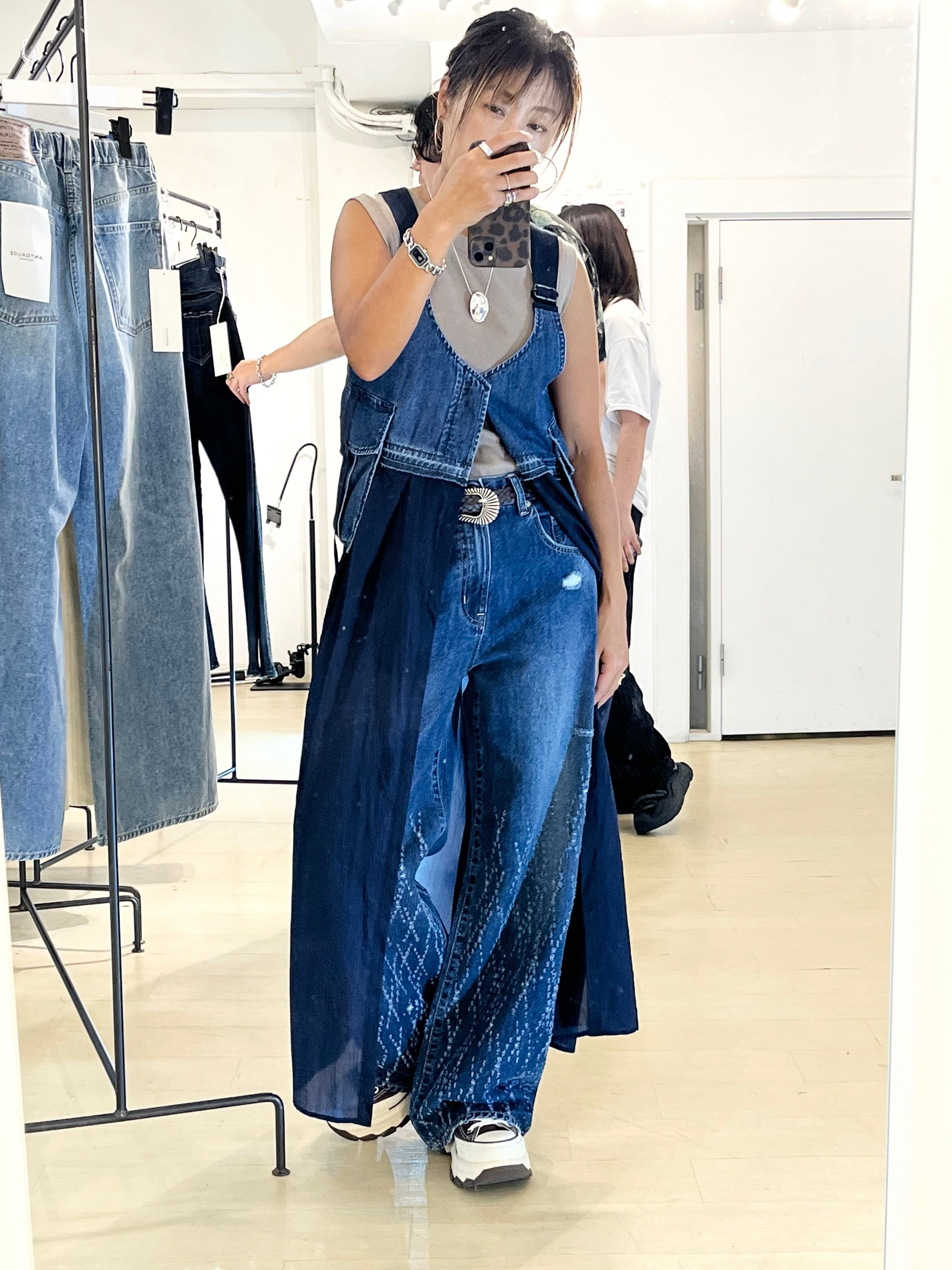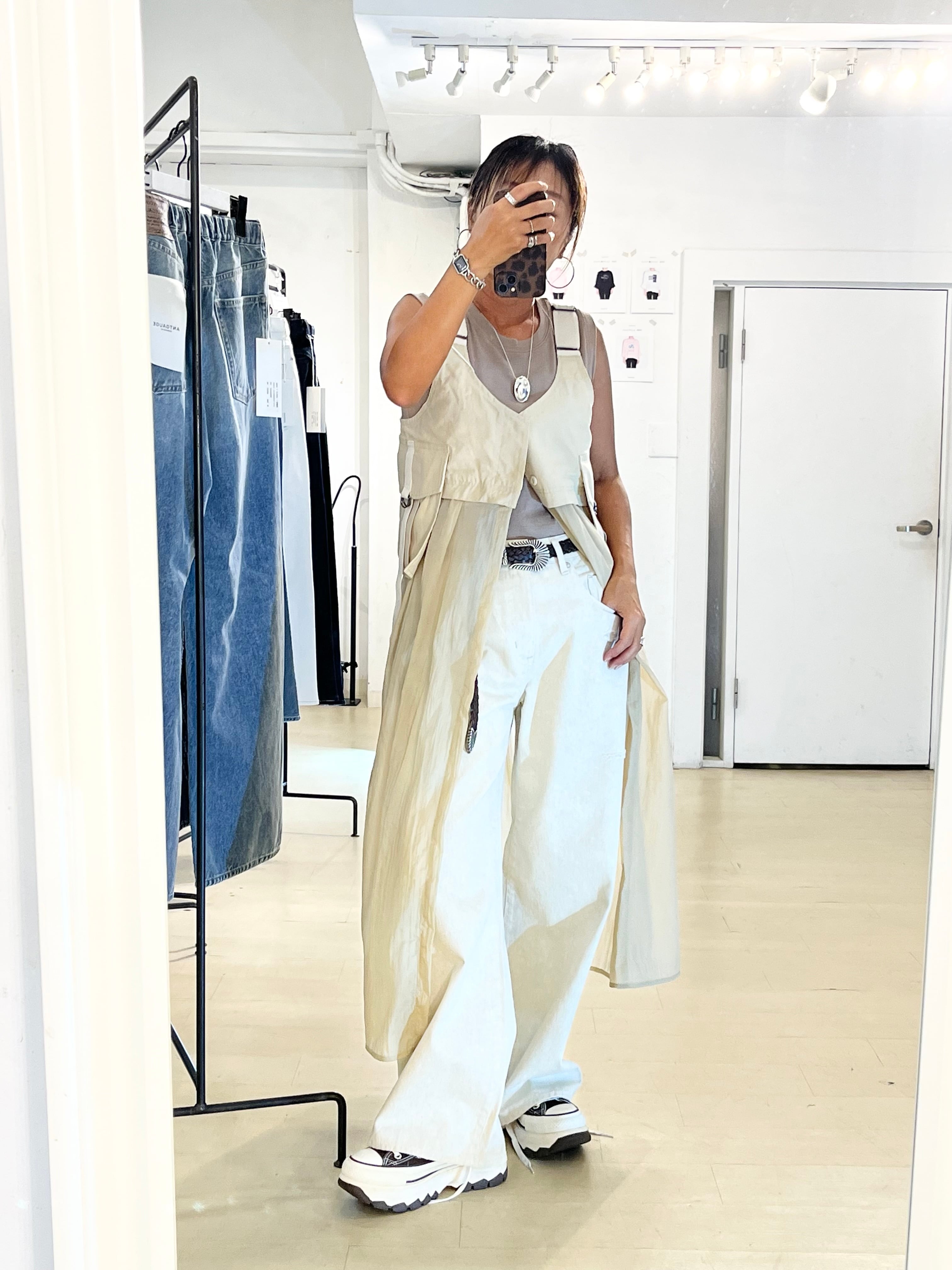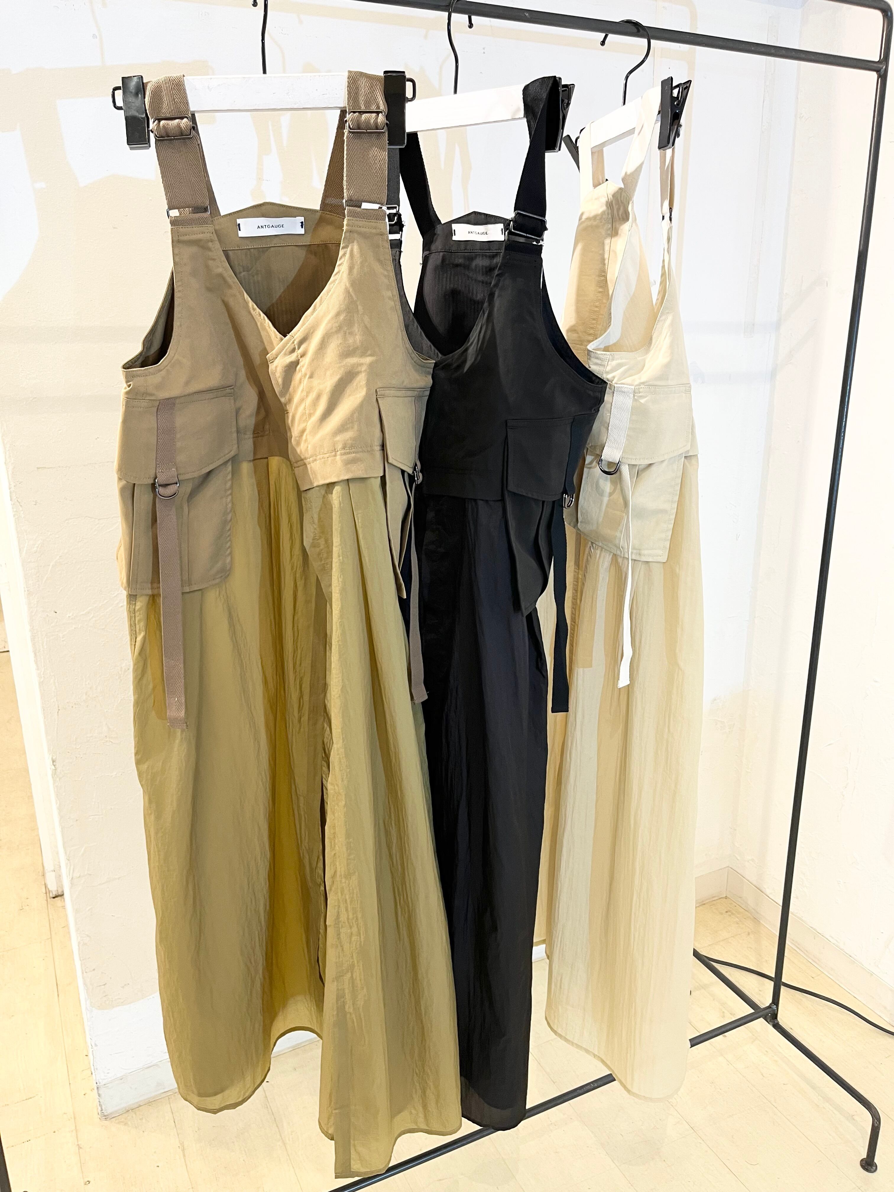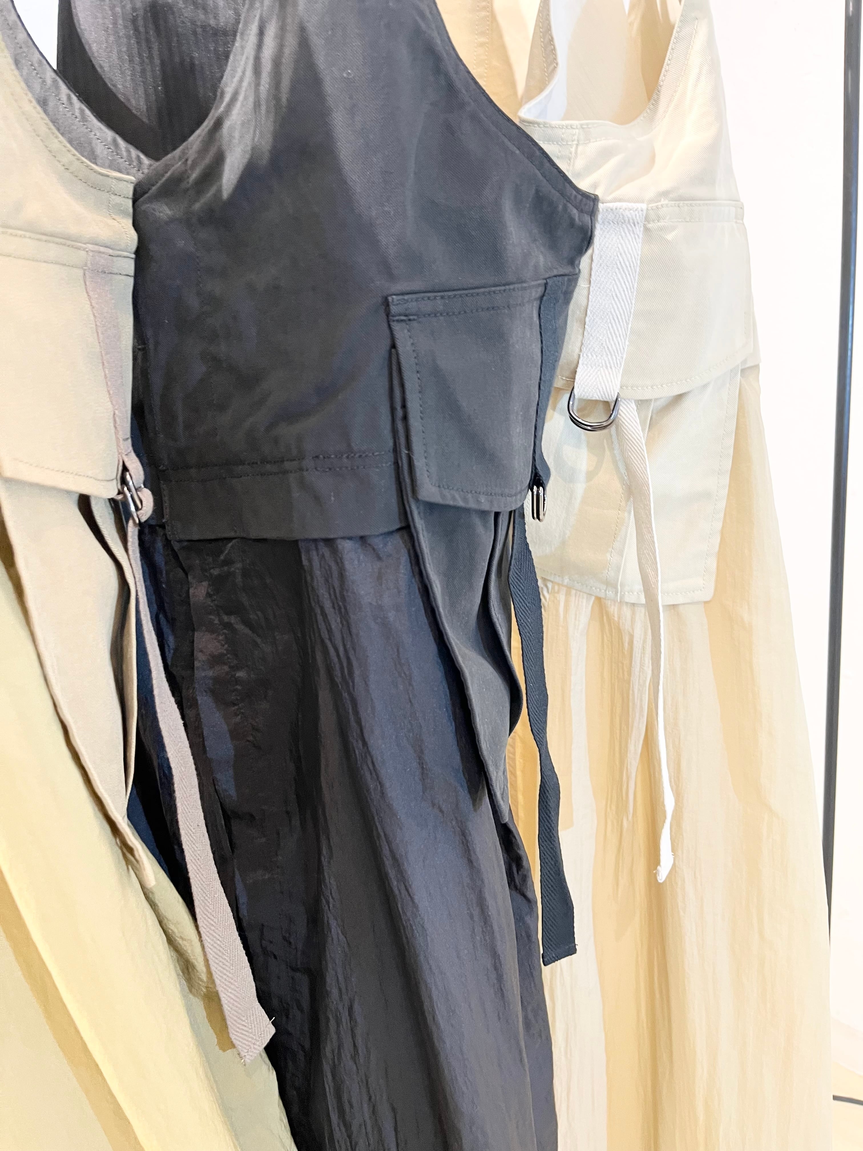 軽やかな透け感が交差する存在感のあるベストワンピース。
