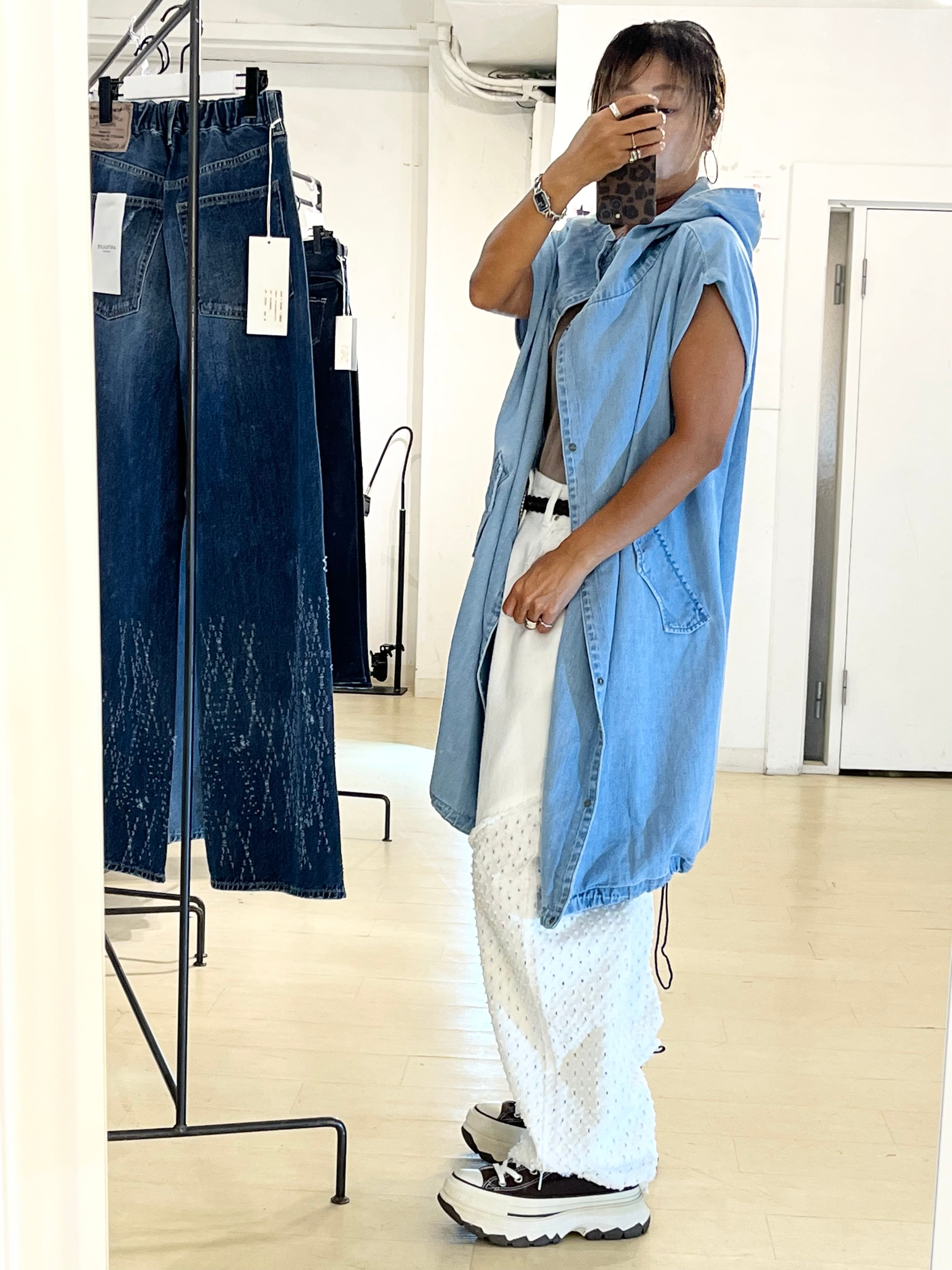 寒い時期はニットやアウターの上から、夏はTシャツやタンクトップの上からとロングシーズン活躍する万能ジレパーカーです。