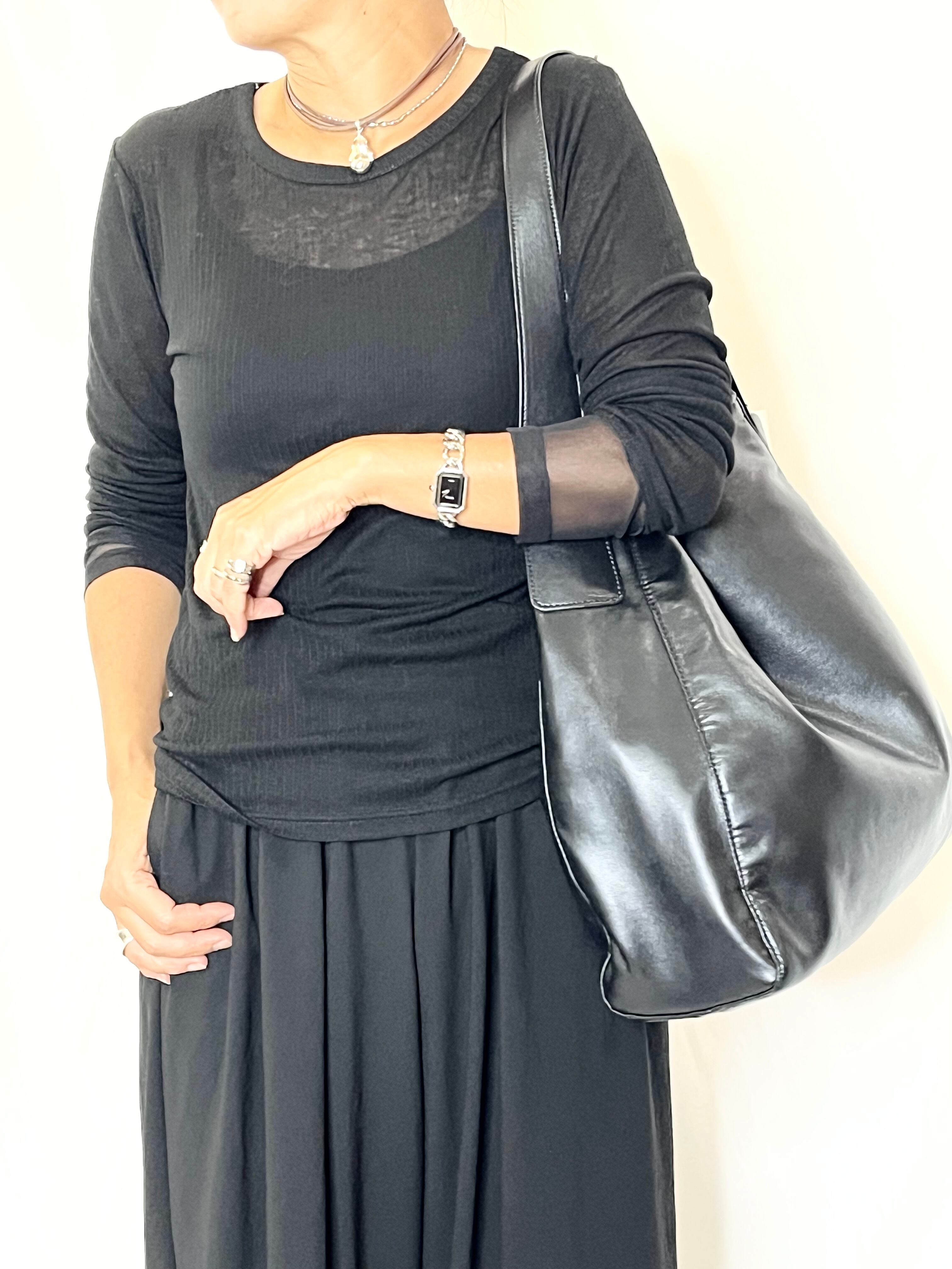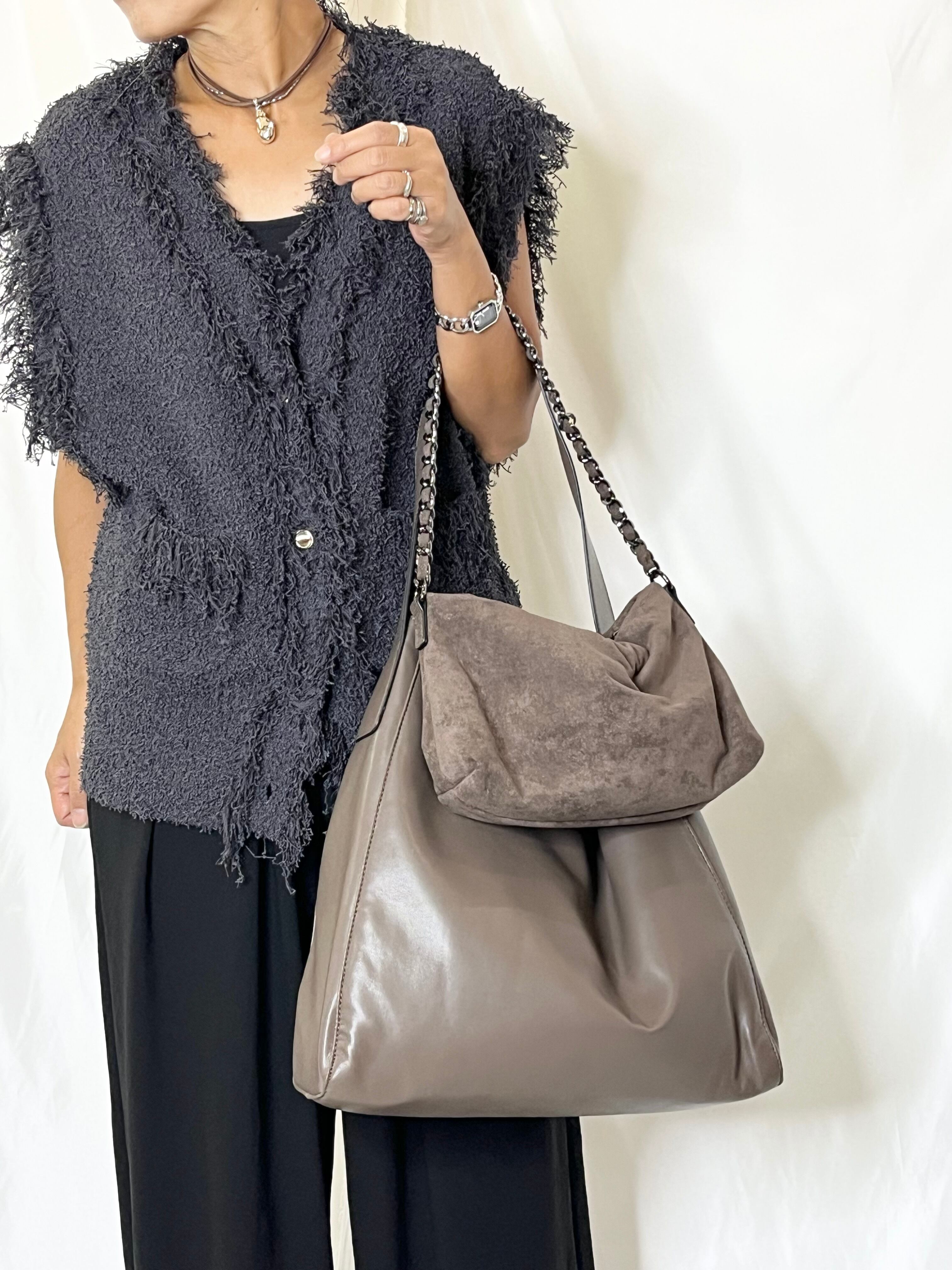 大きめのワンハンドルトートバッグと小さめのチェーンバッグがセットになったバッグ。
