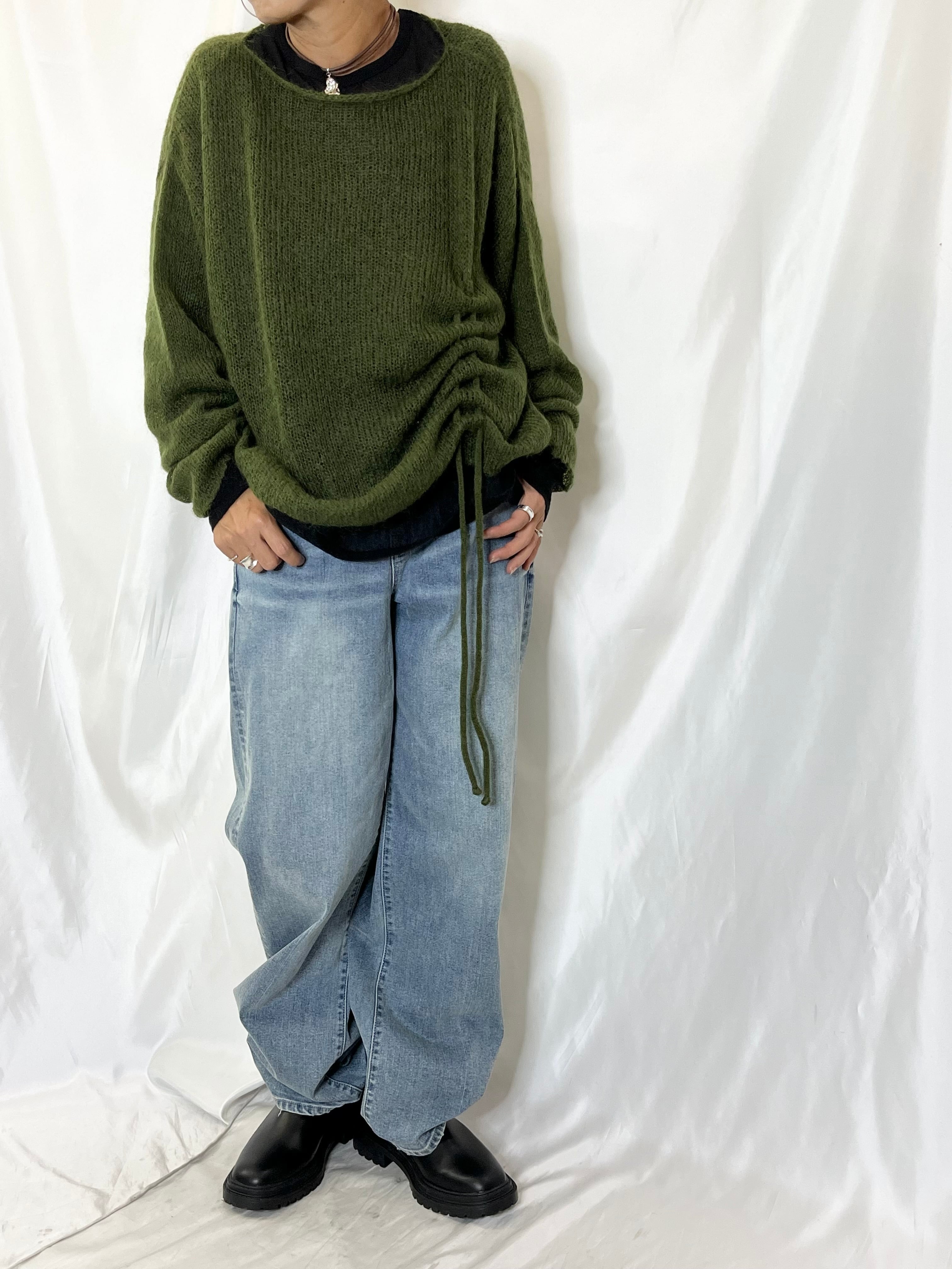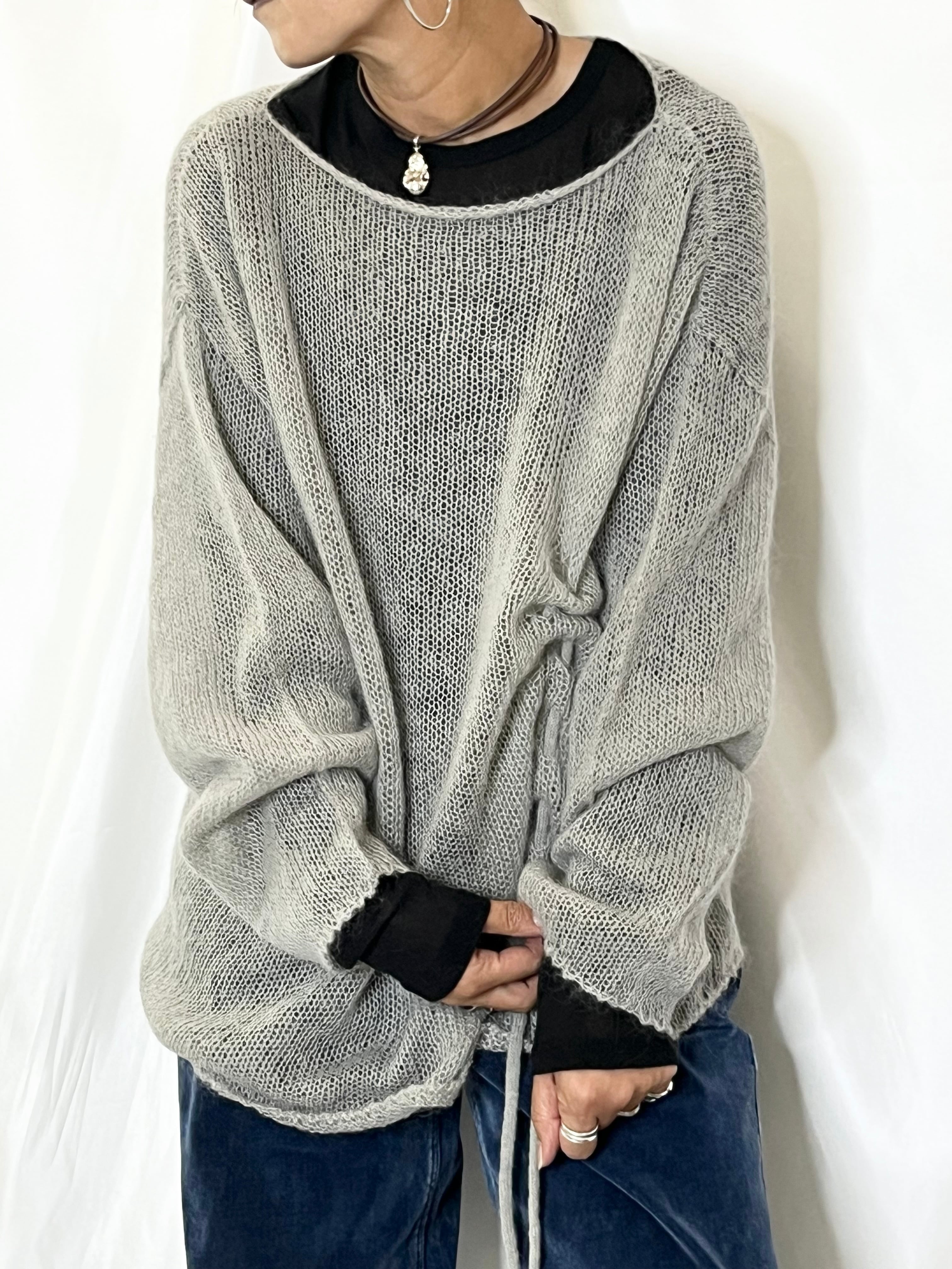 毛吹き感による温かみがありつつも、ざっくりと編んだシアー感のある編地が魅力なシャーリングモヘアニット。