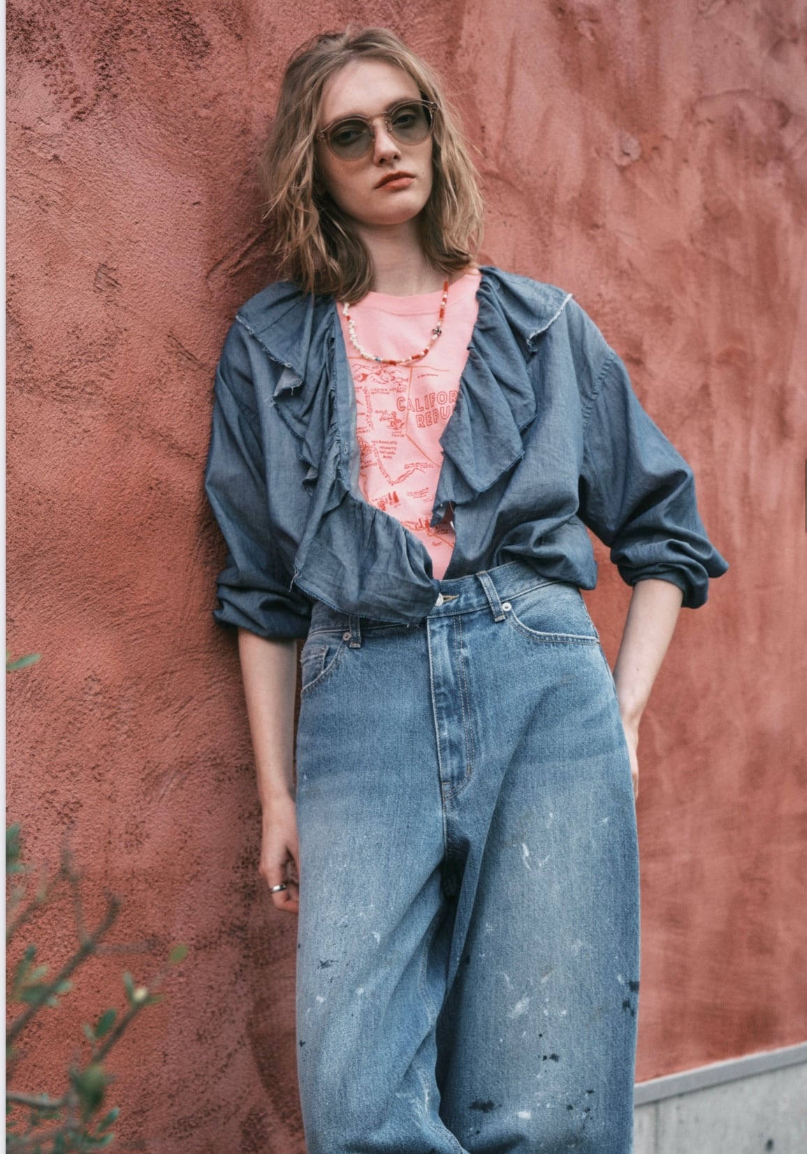lemelangeペンキング加工ウエスタンシャツ