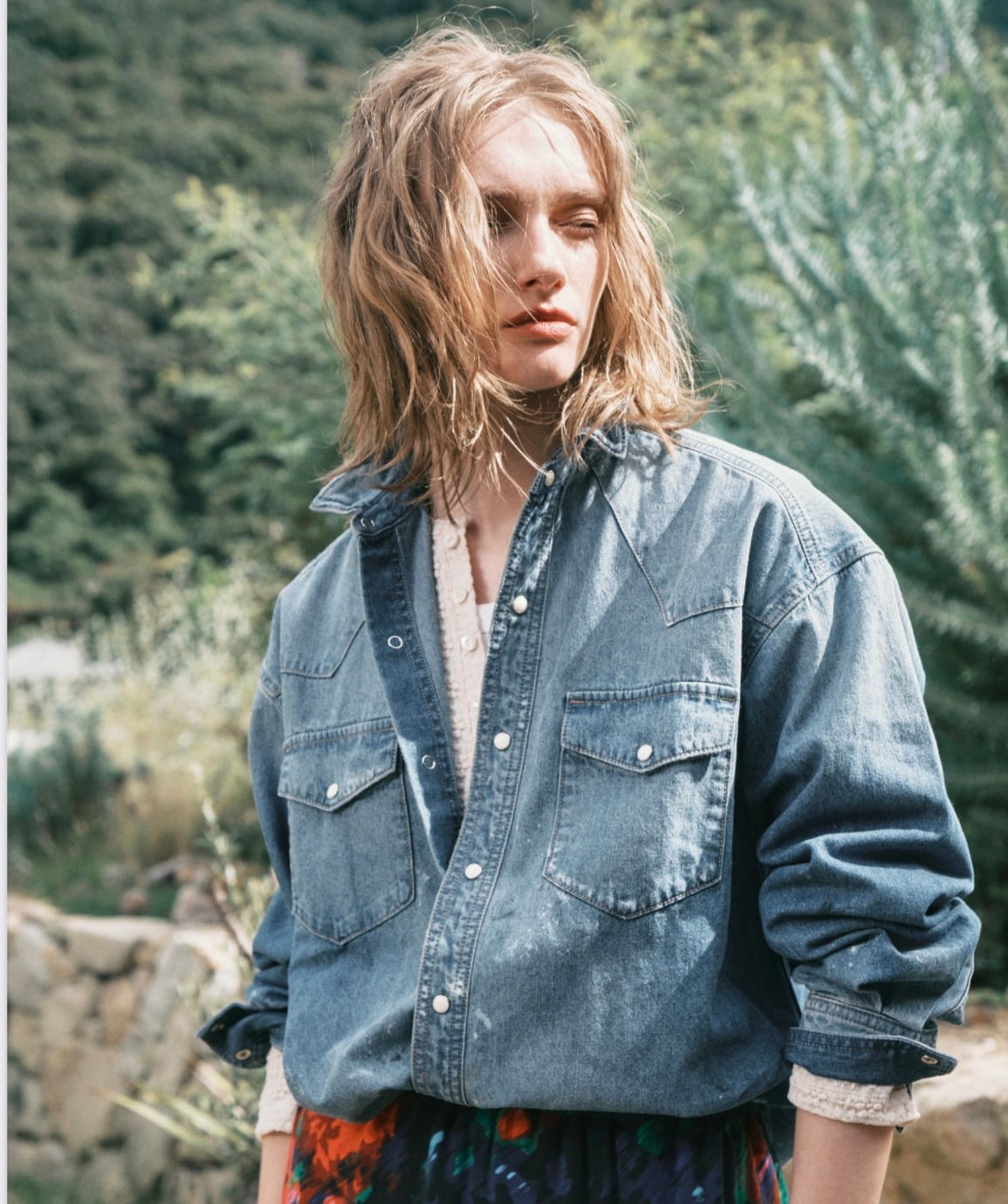 ドロップショルダーのウエスタンシャツ。