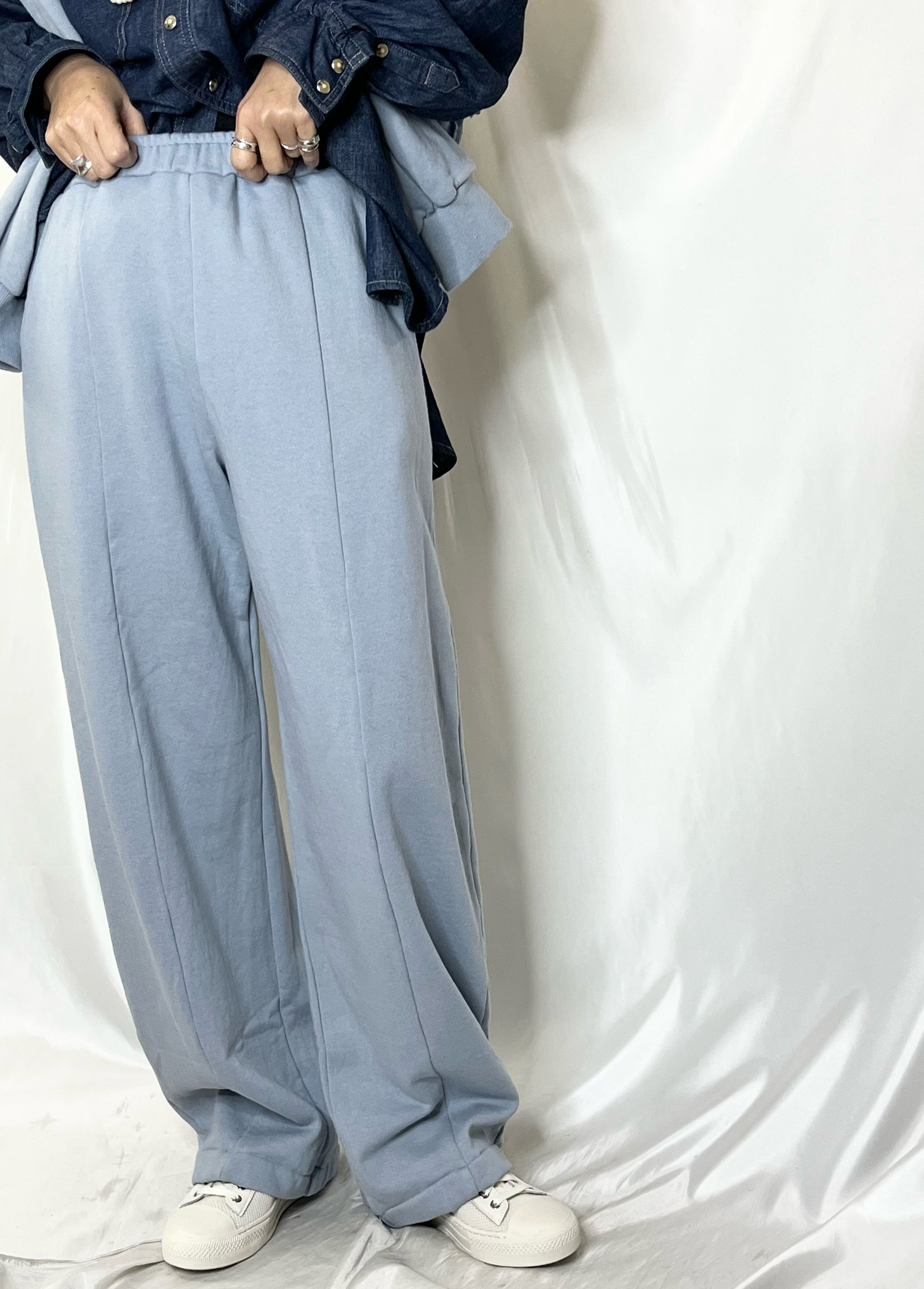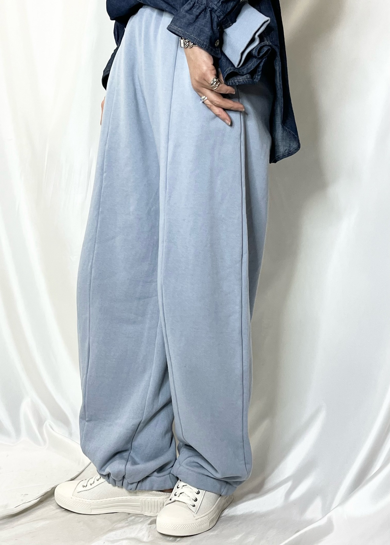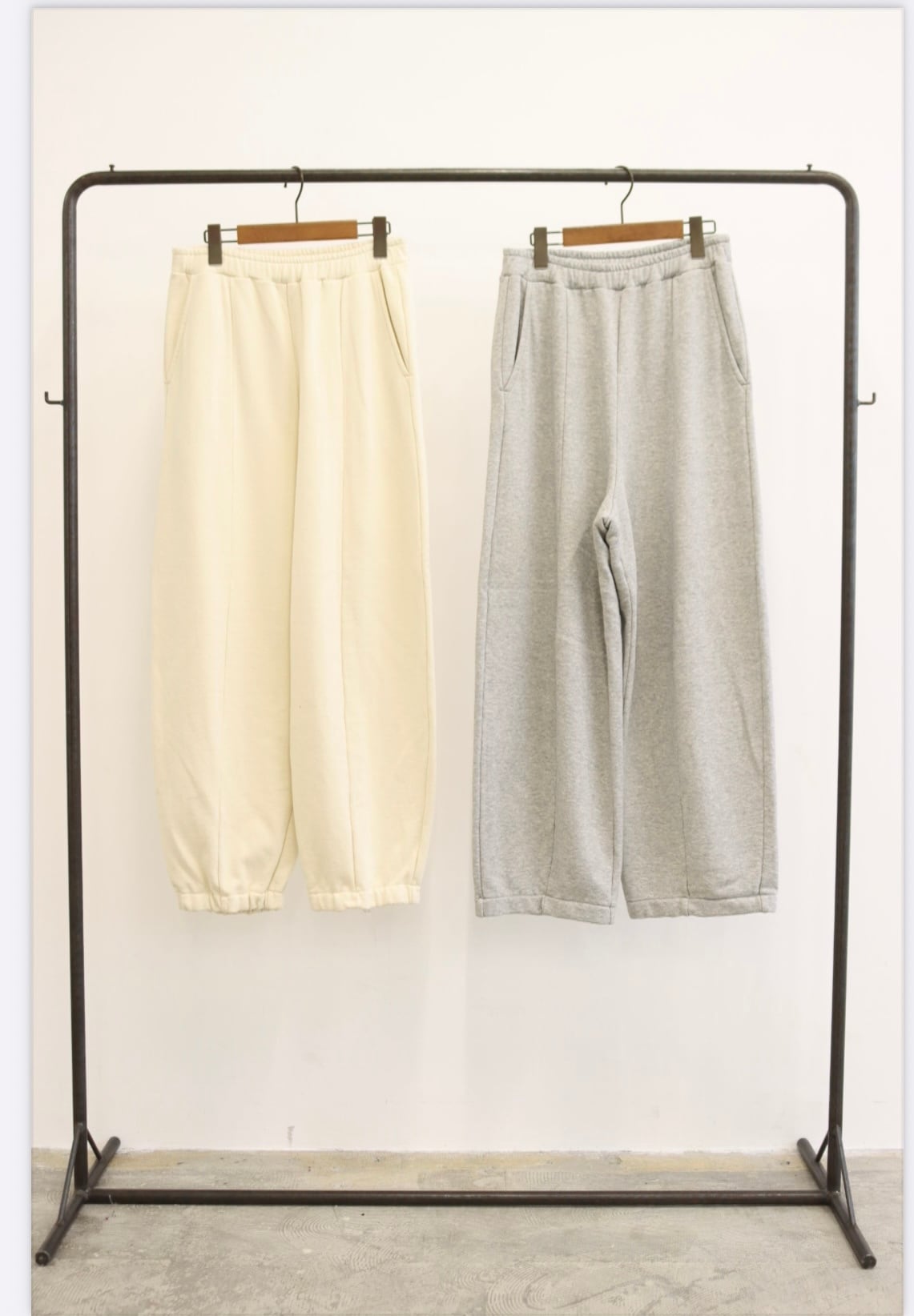 バルーンシルエットのスウェットPTは、脇ライン、前シームが丸みのあるパターン。