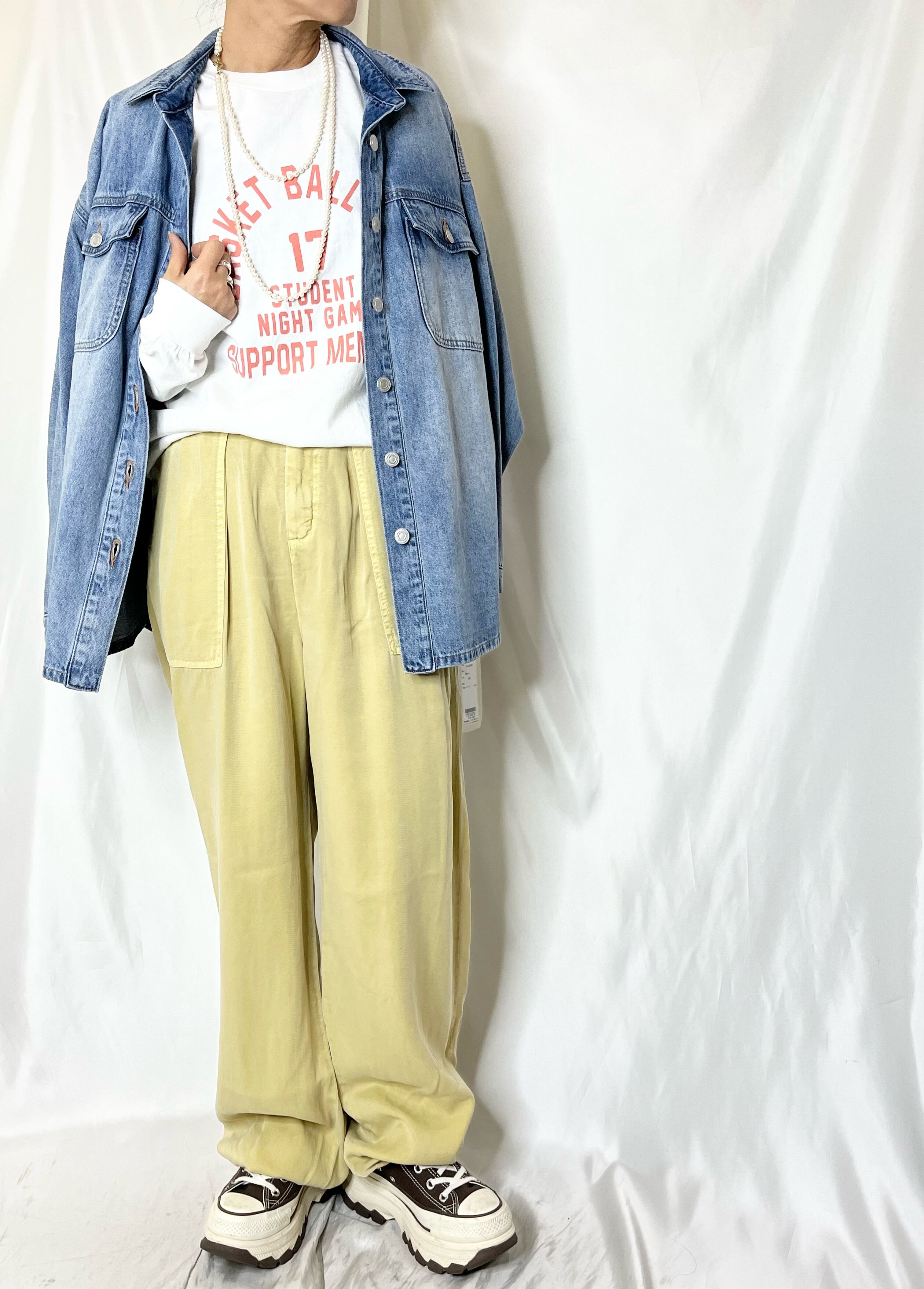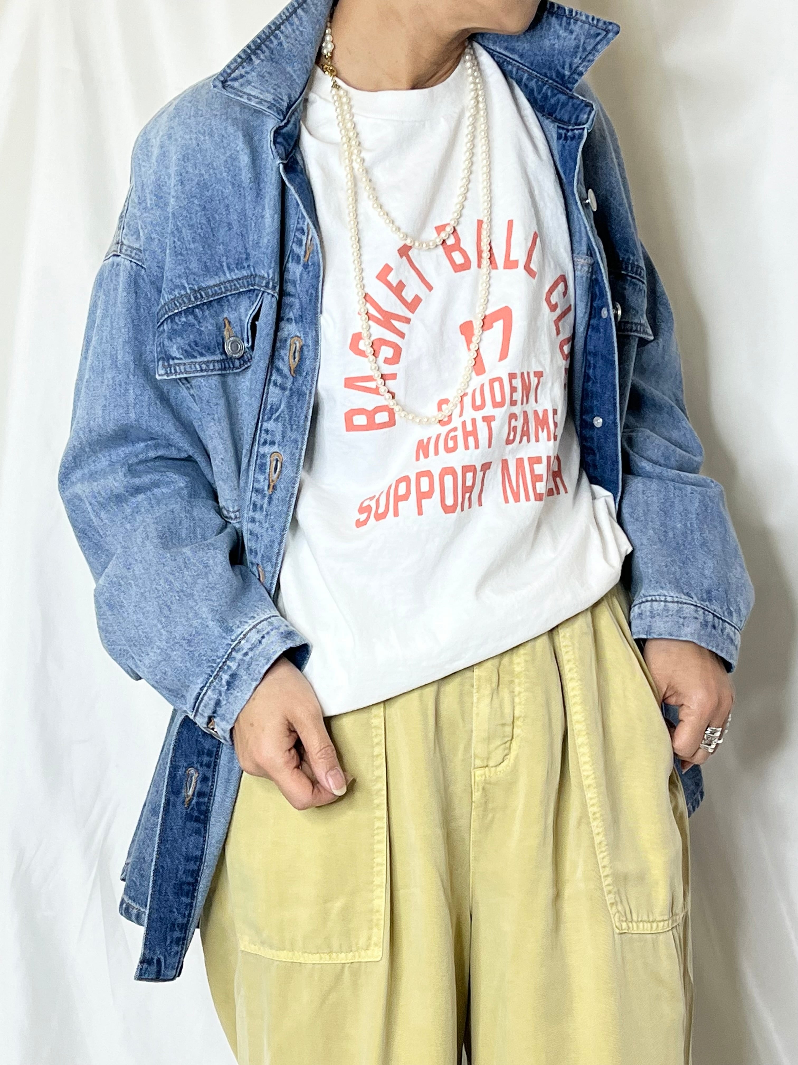 しっかりラバーでプリントしたアーチ型のアメカジロゴTです。淡色のボディxカラープリントで春らしい色展開。