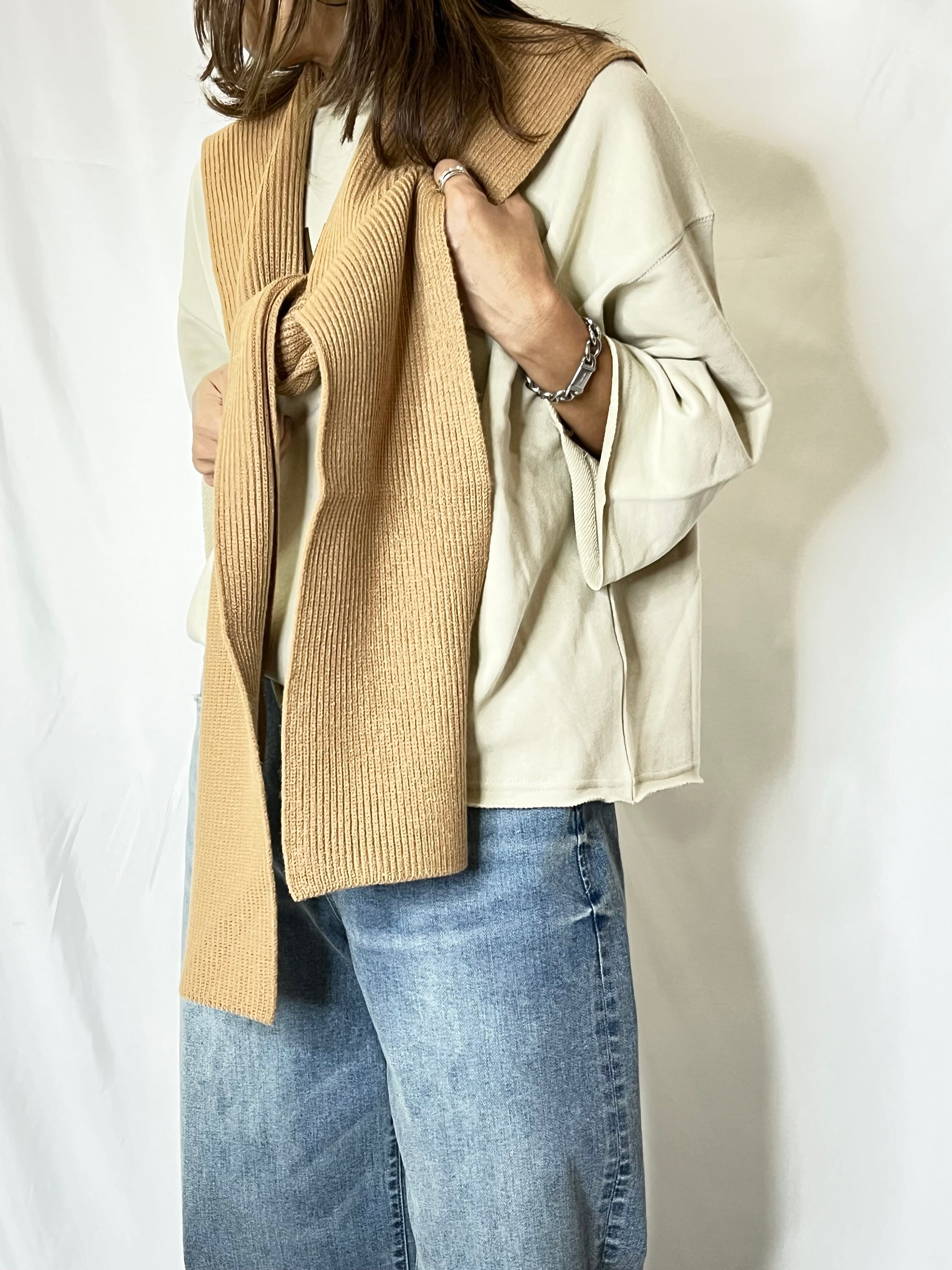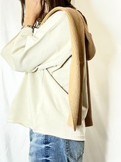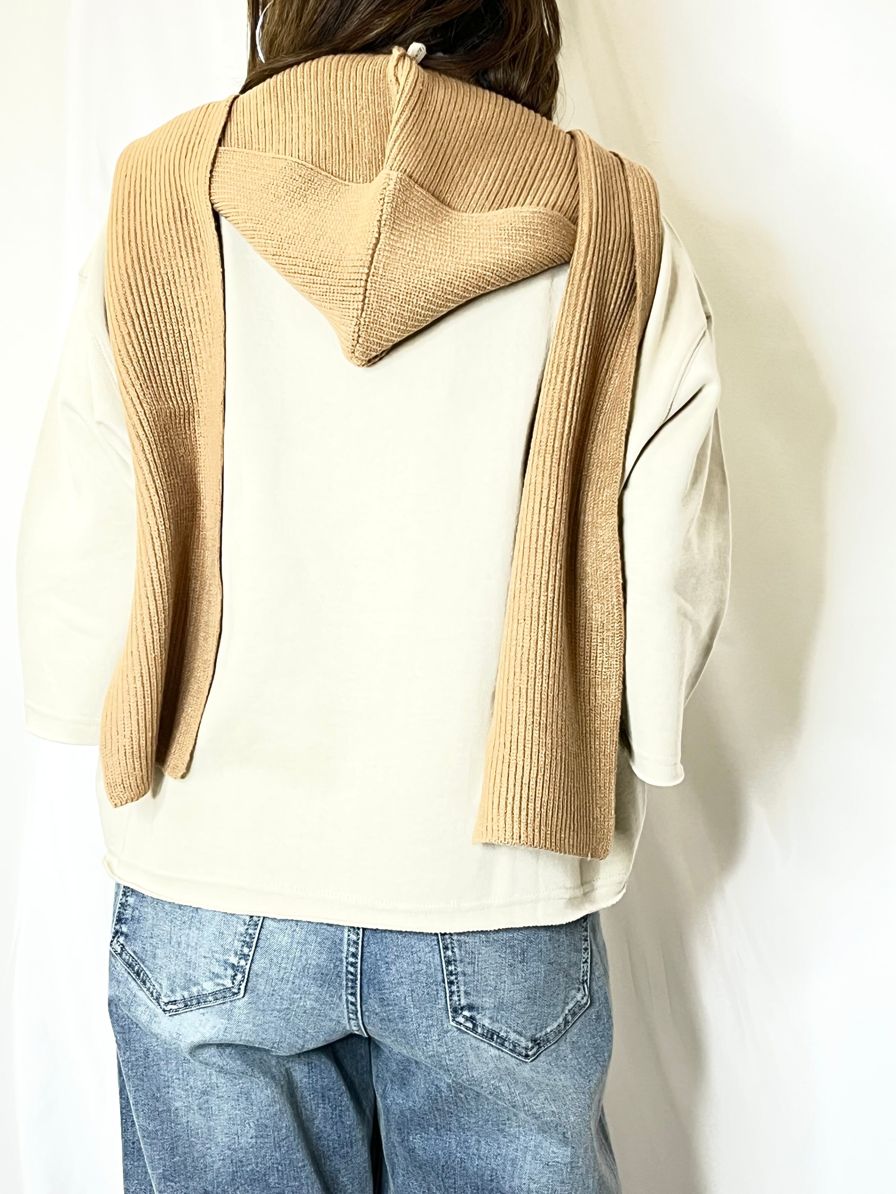 トレンドのフード付きのマフラーは顔周りがぴったりしすぎず、つけやすいのがポイントです。
