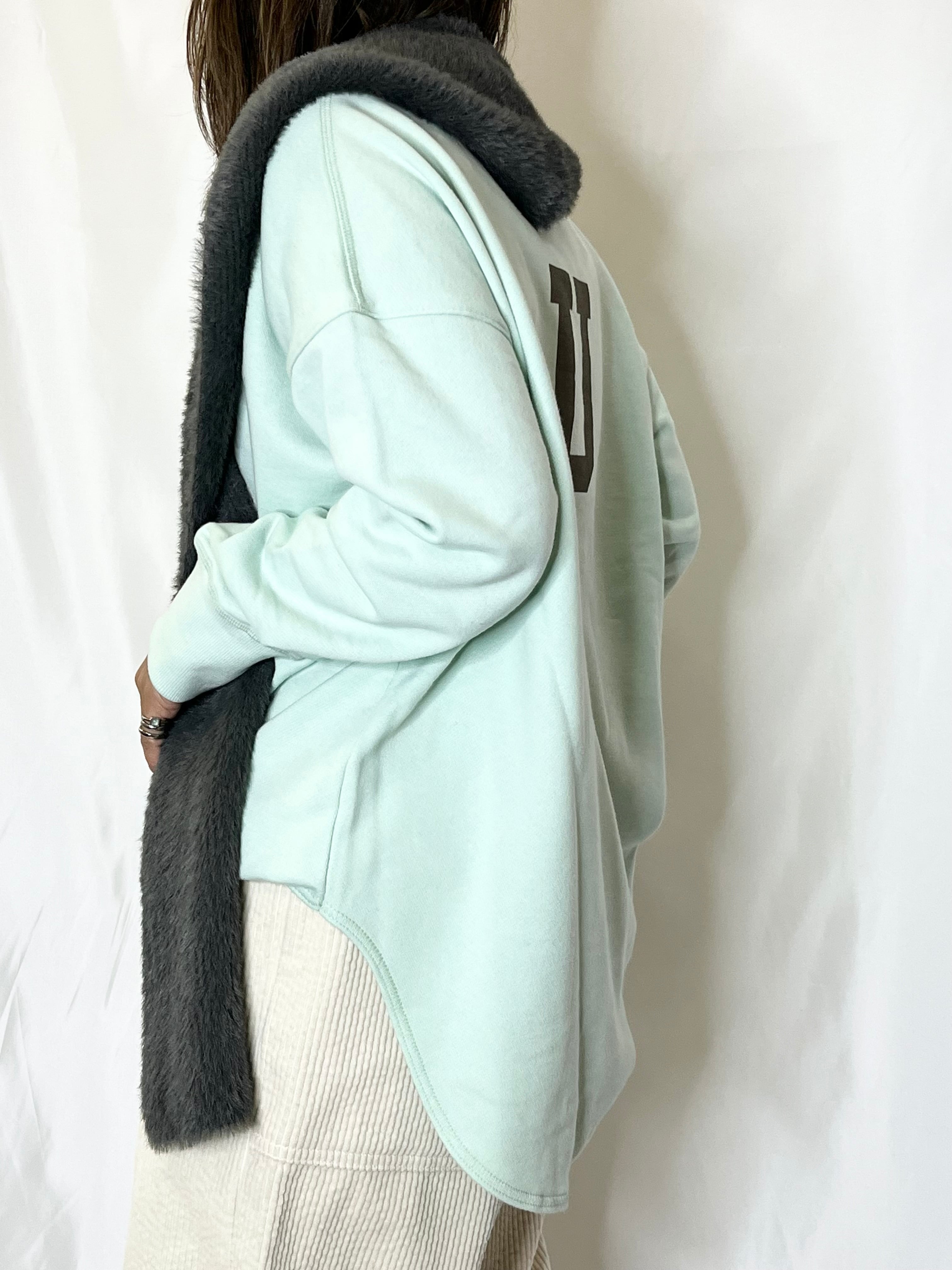 トレンドのフード付きのマフラーは顔周りがぴったりしすぎず、つけやすいのがポイントです。