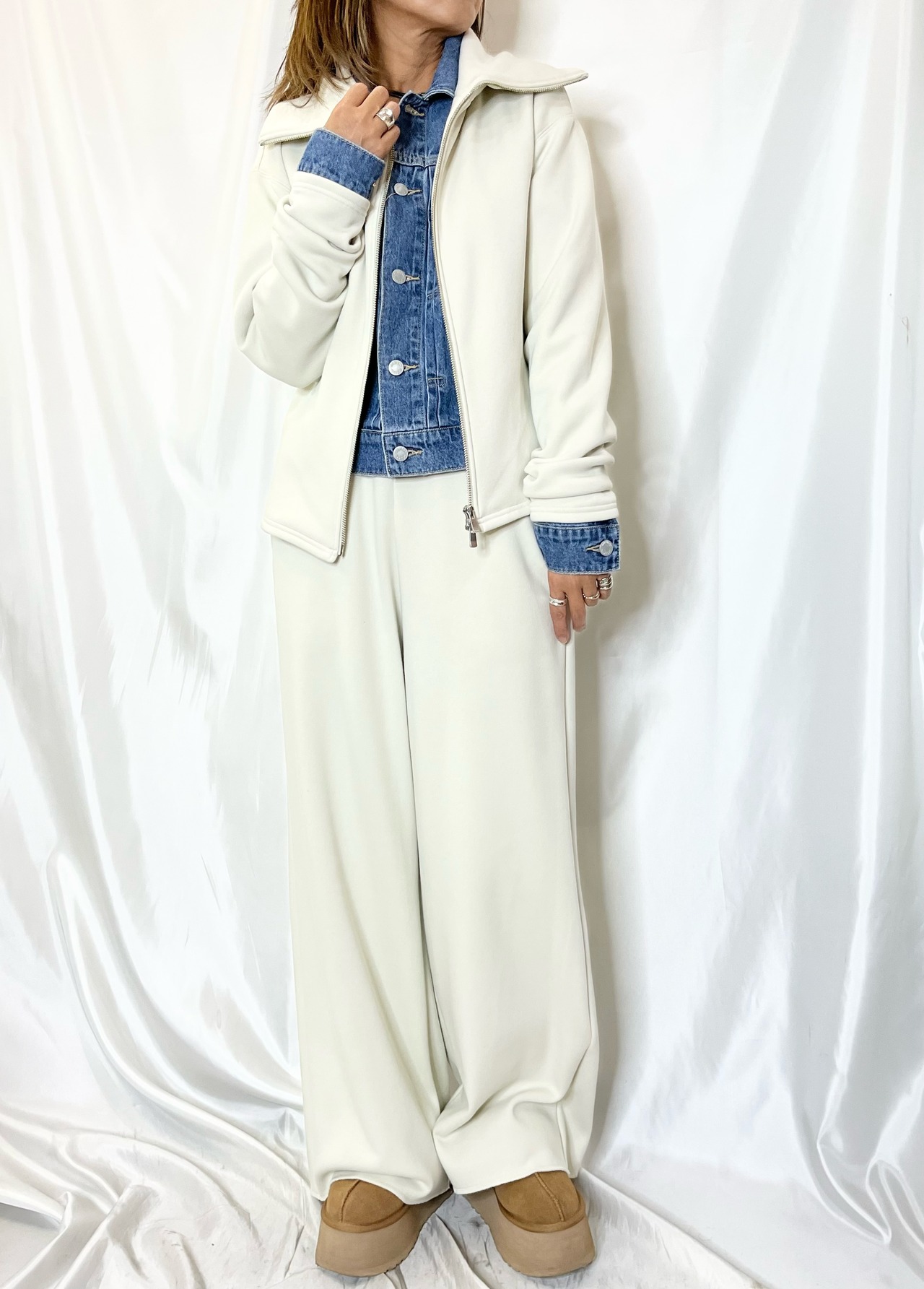 暖かく気持ちの良いリラクシーな履き⼼地のワイドイージーパンツ。