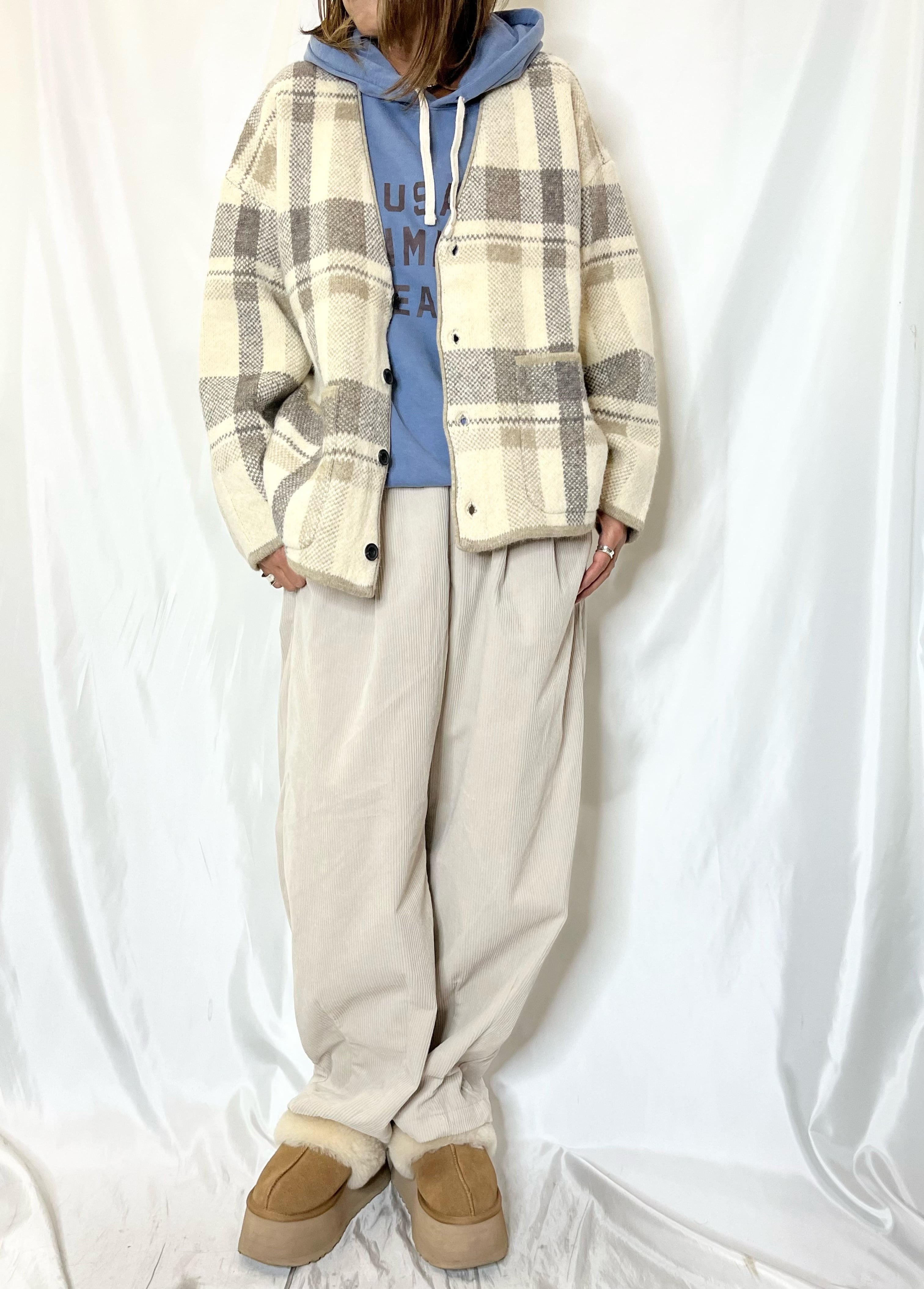 Vネックのたっぷりとしたサイズ感のアウターカーディガン。