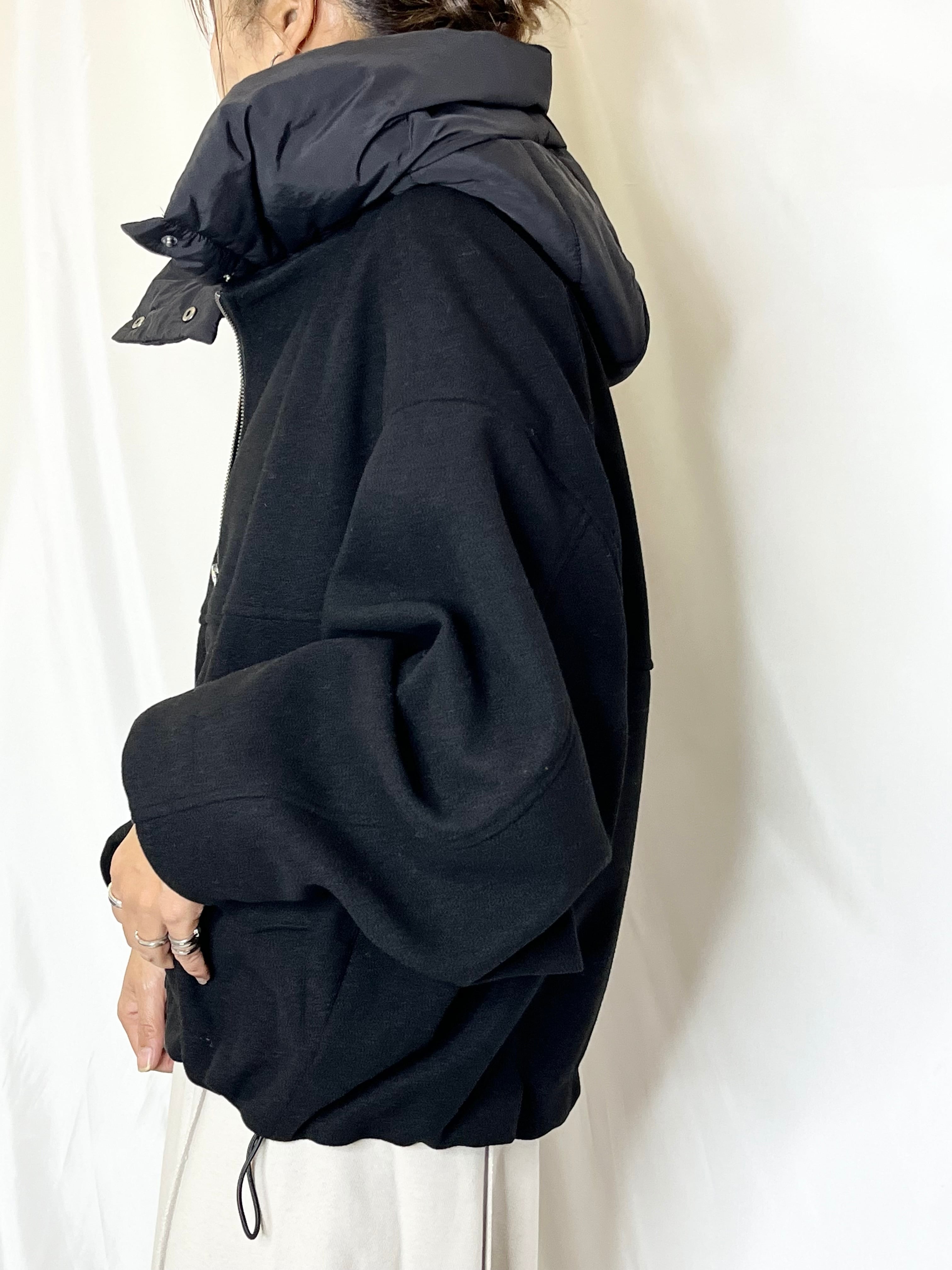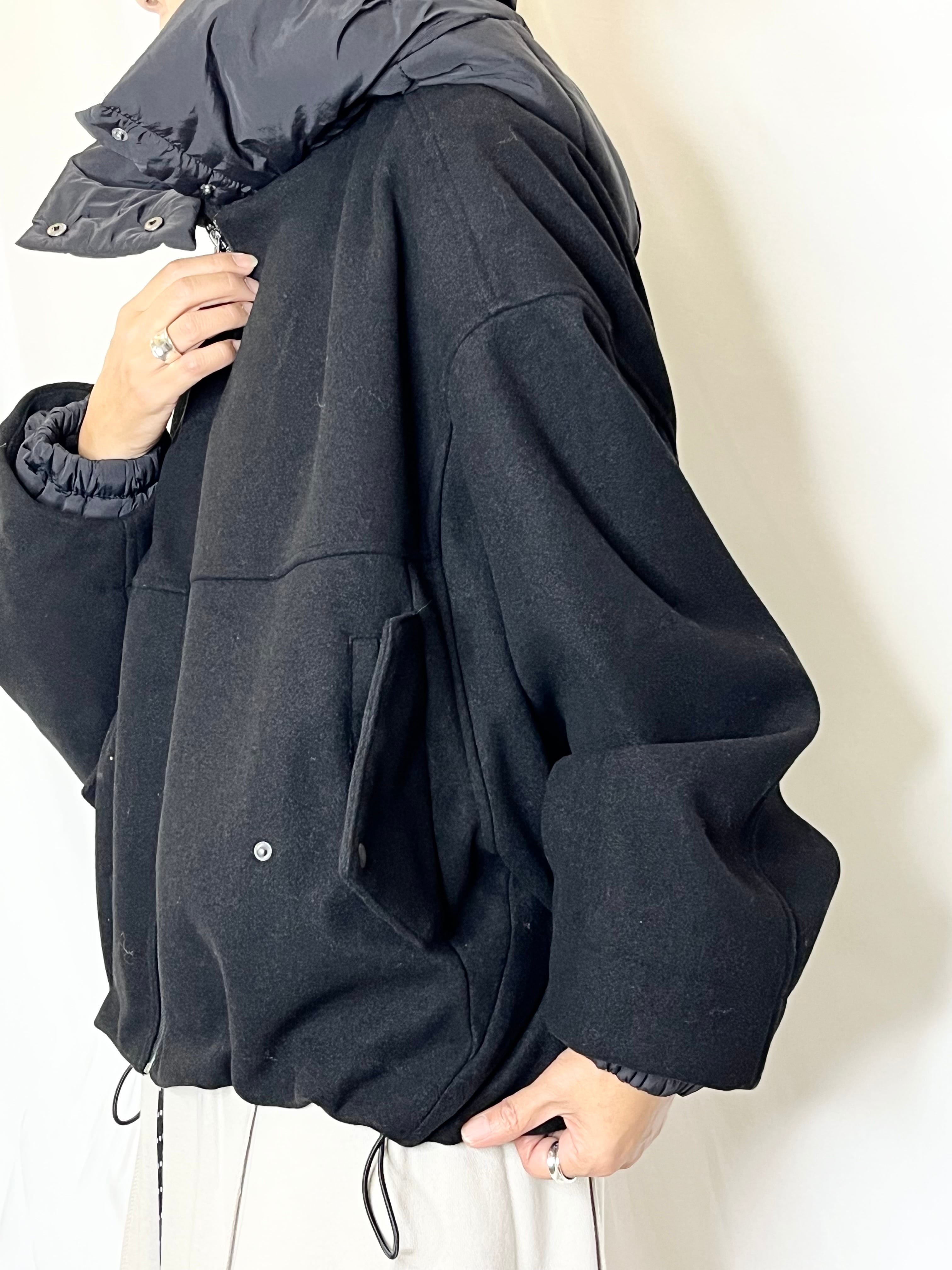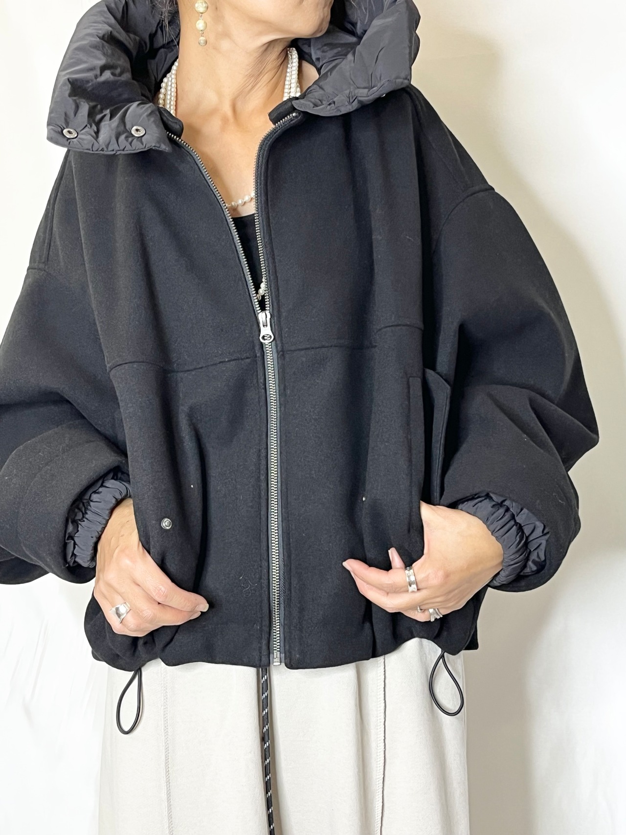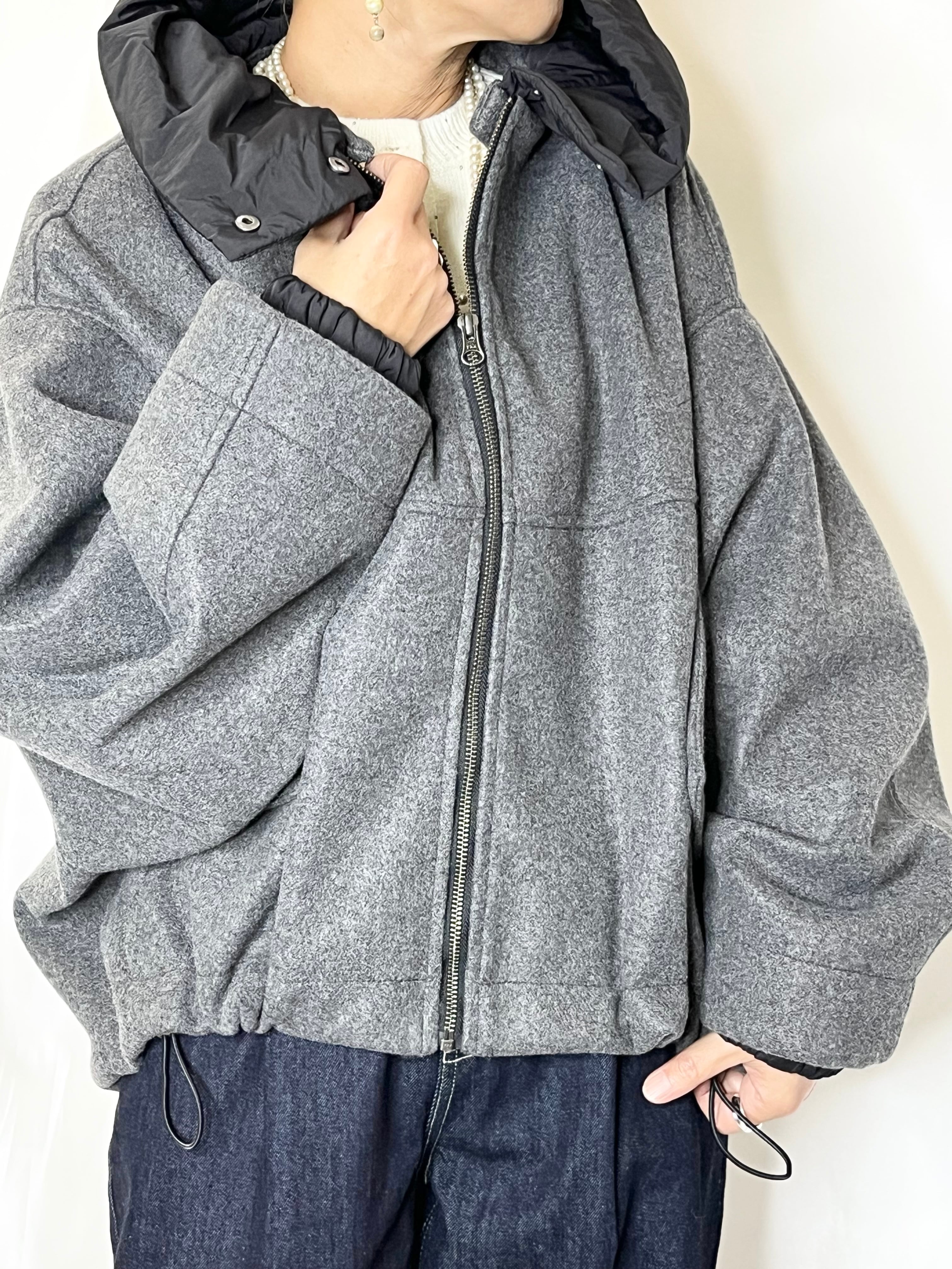 コクーンシルエットでゆったりシルエットのジップブルゾンコート。