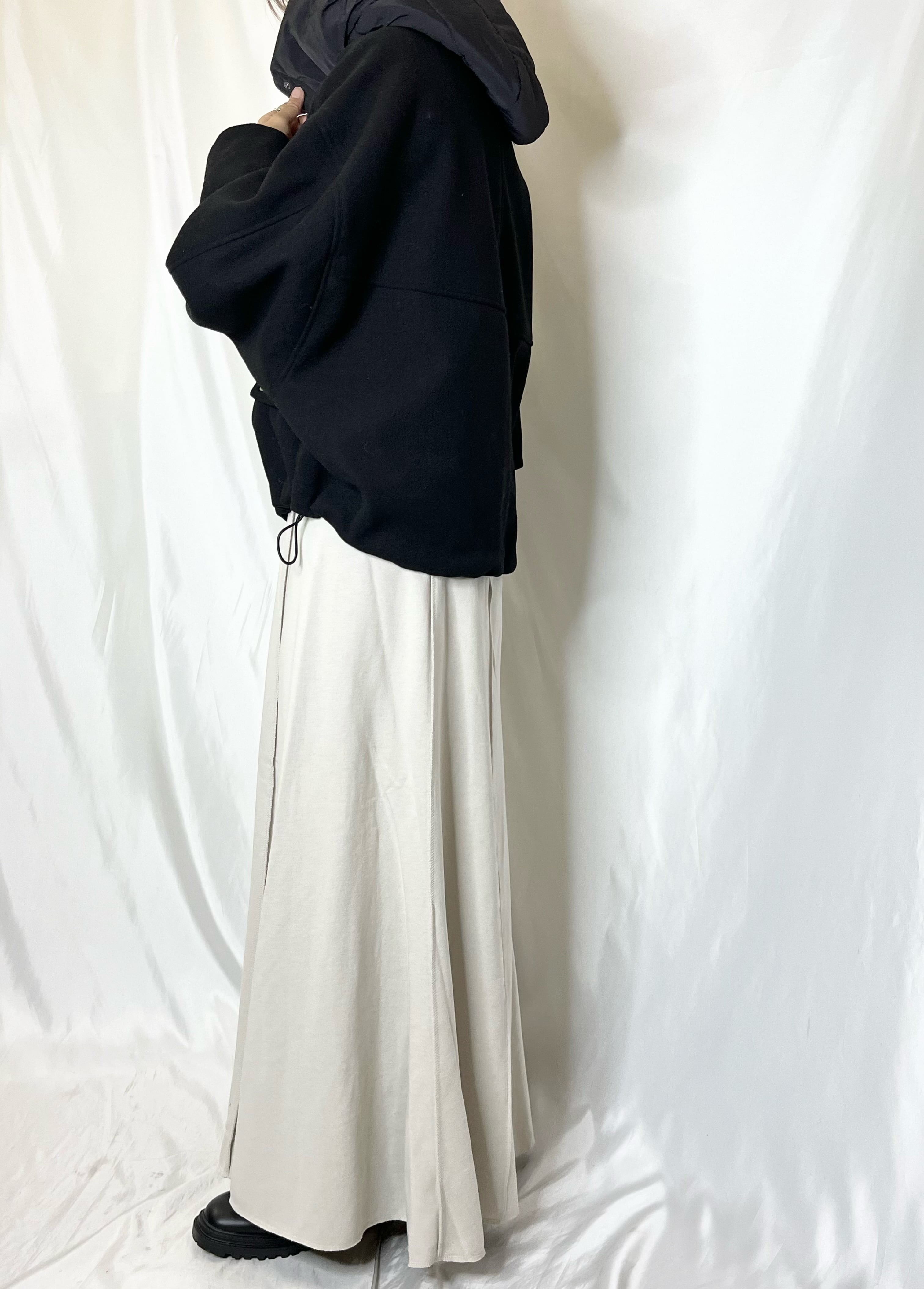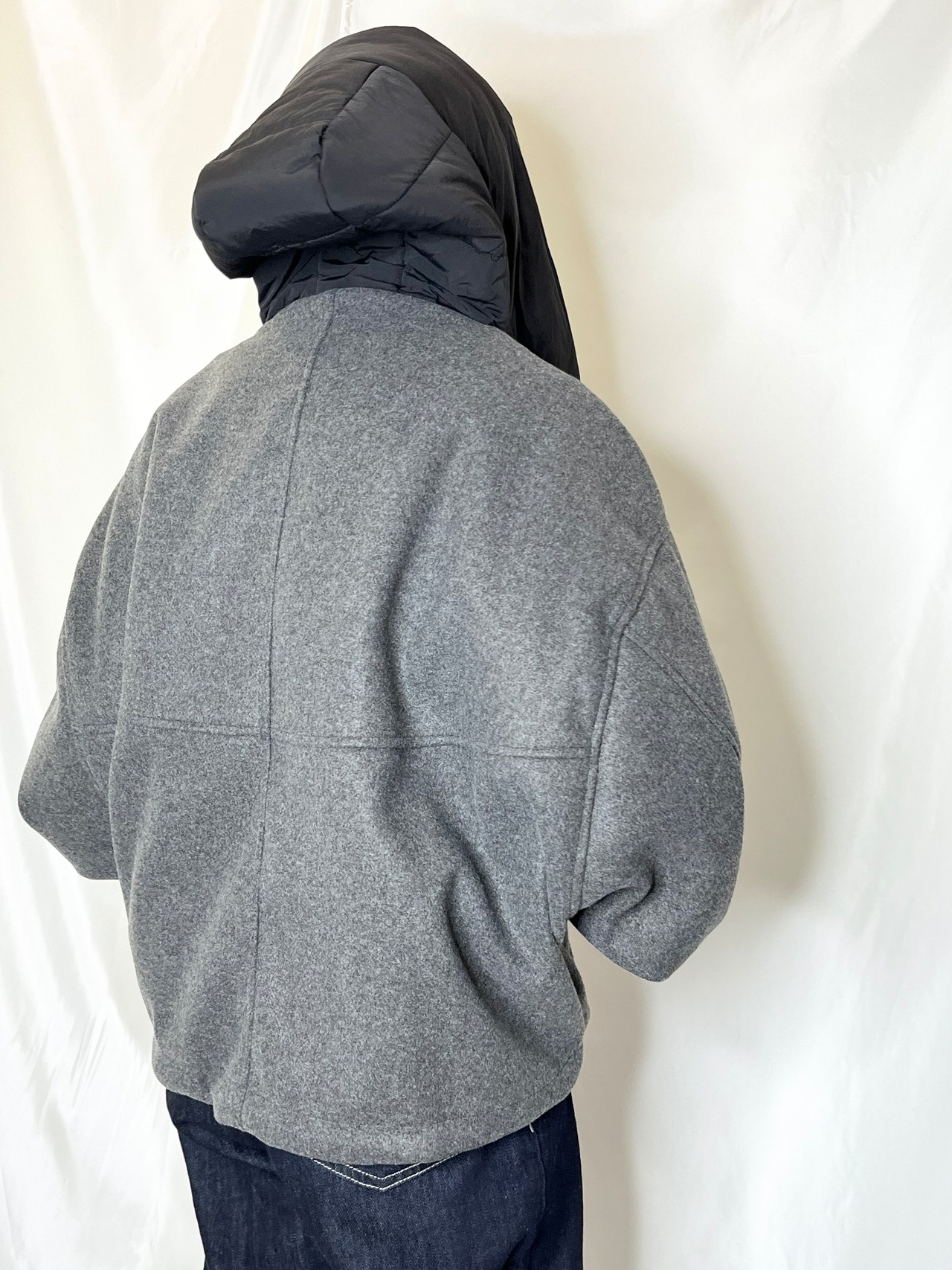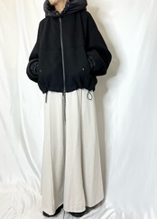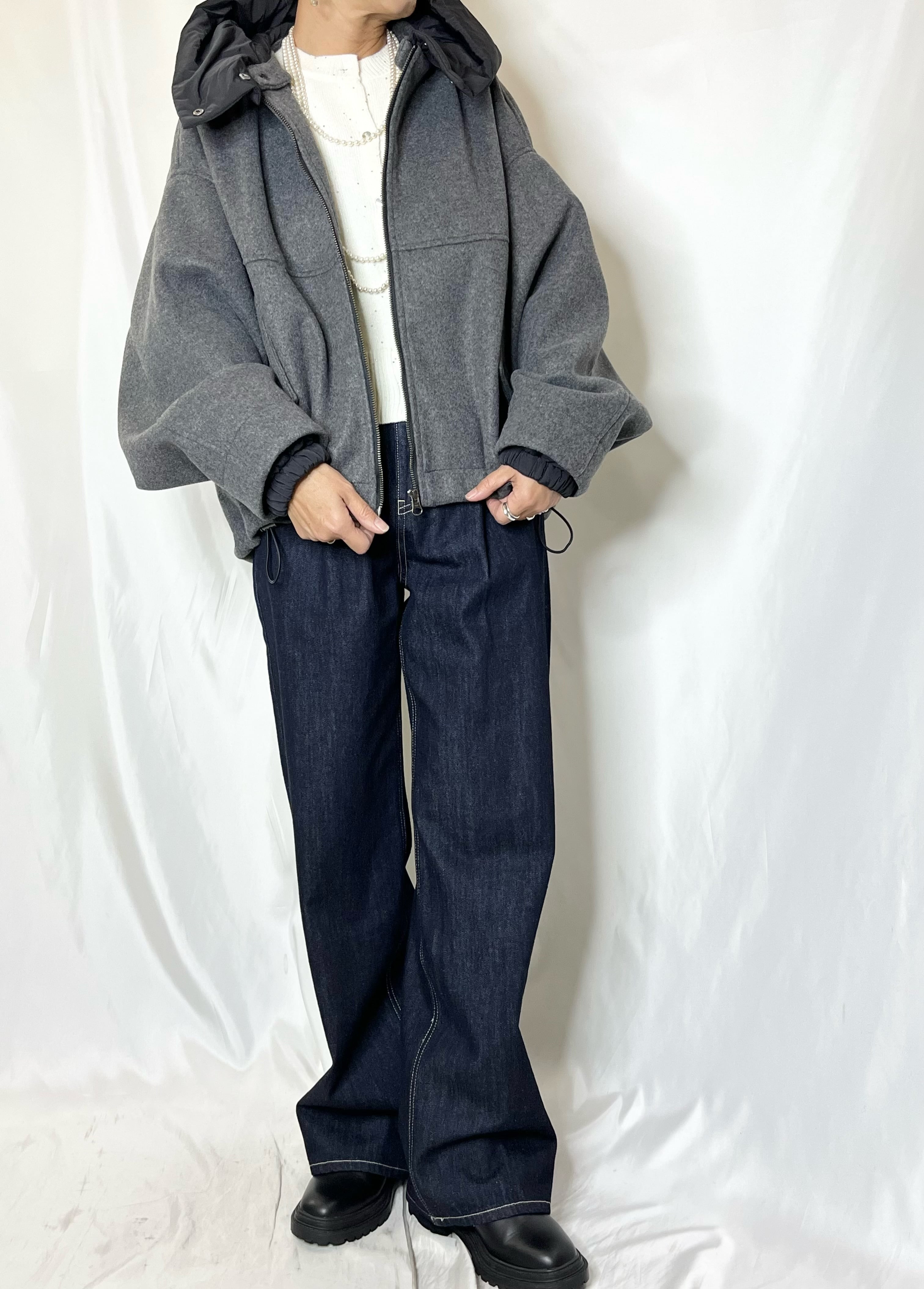 コクーンシルエットでゆったりシルエットのジップブルゾンコート。