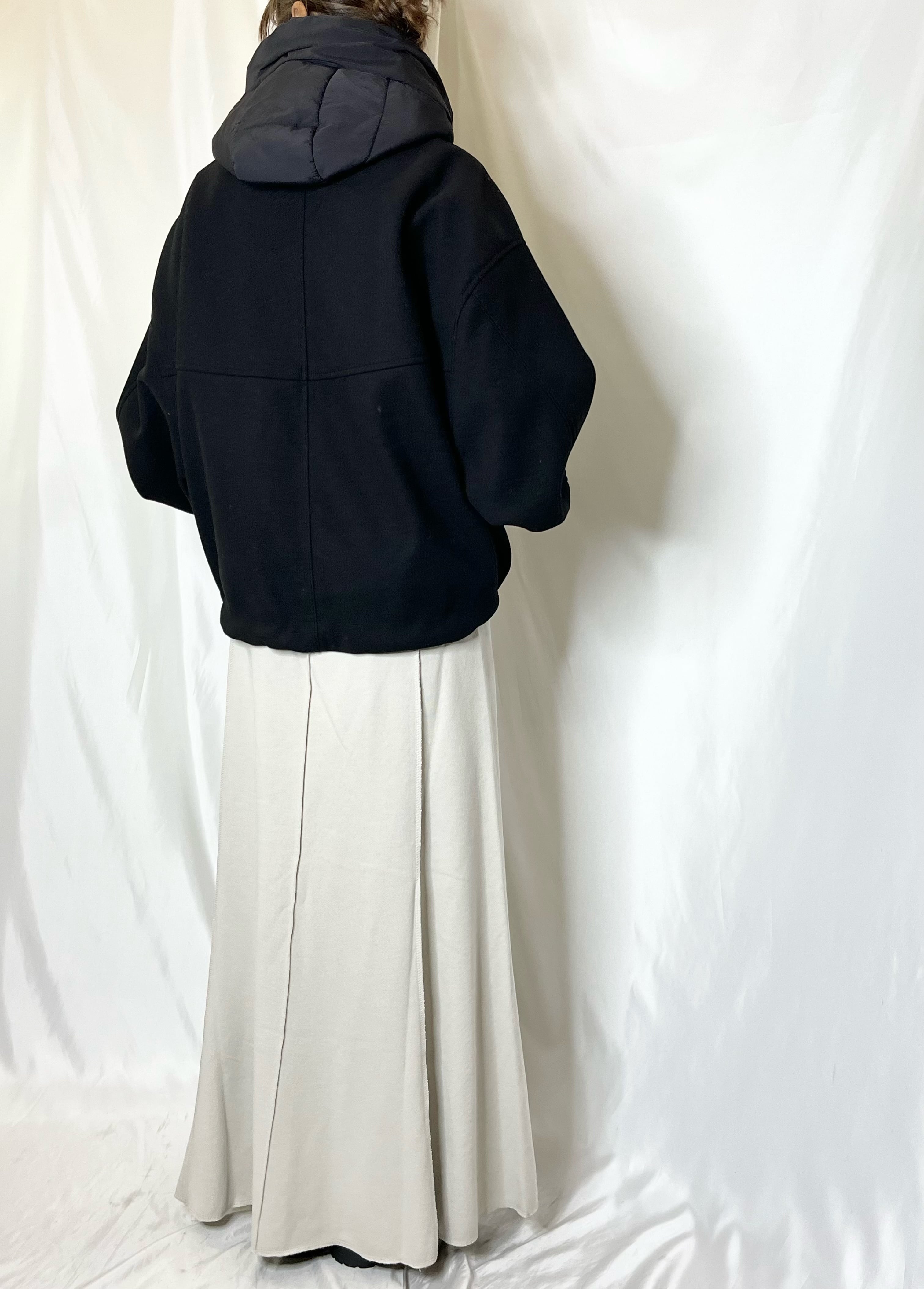 フードは取り外し可能で、インナー次第でいろんなコーディネートが楽しめます♬
