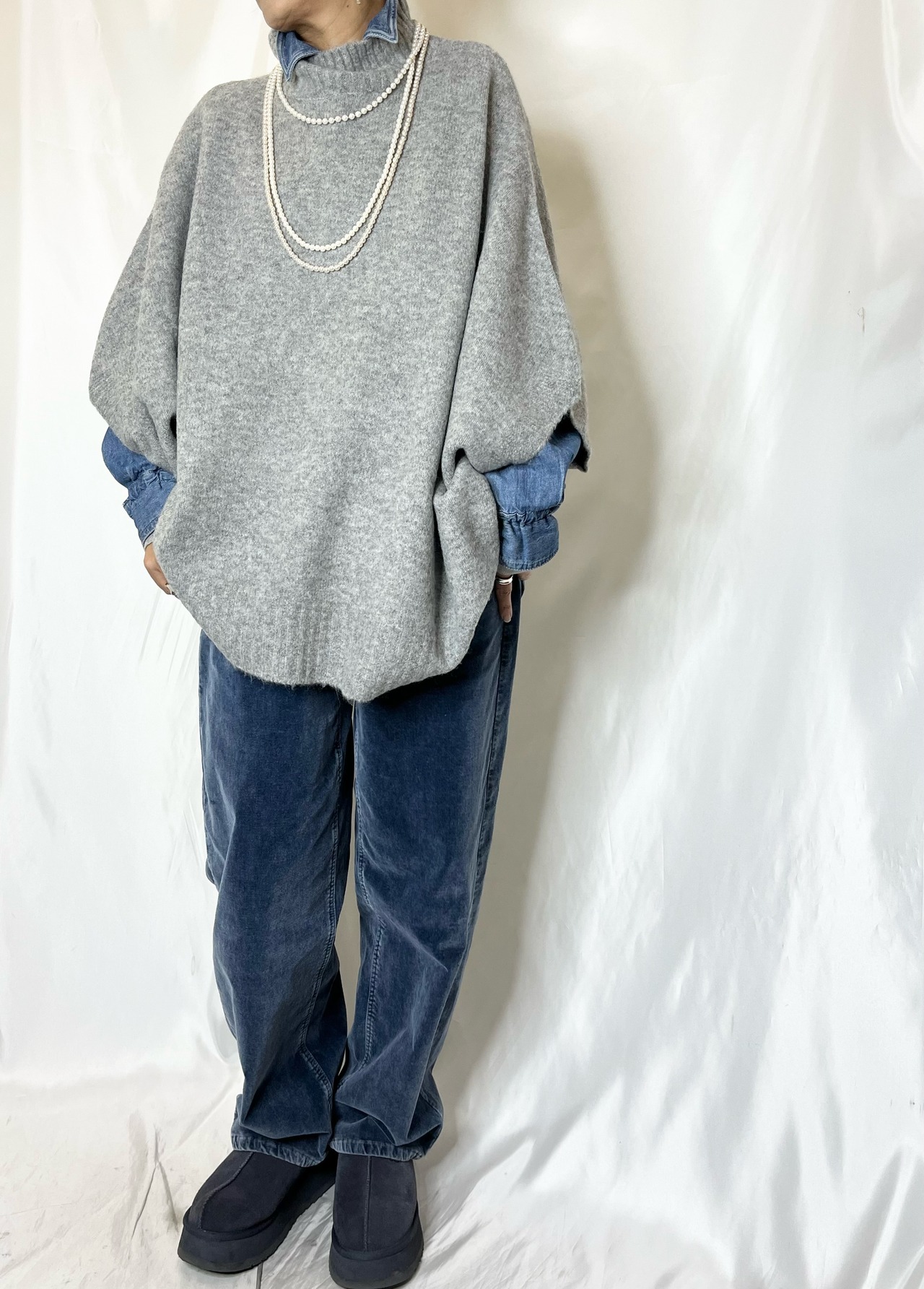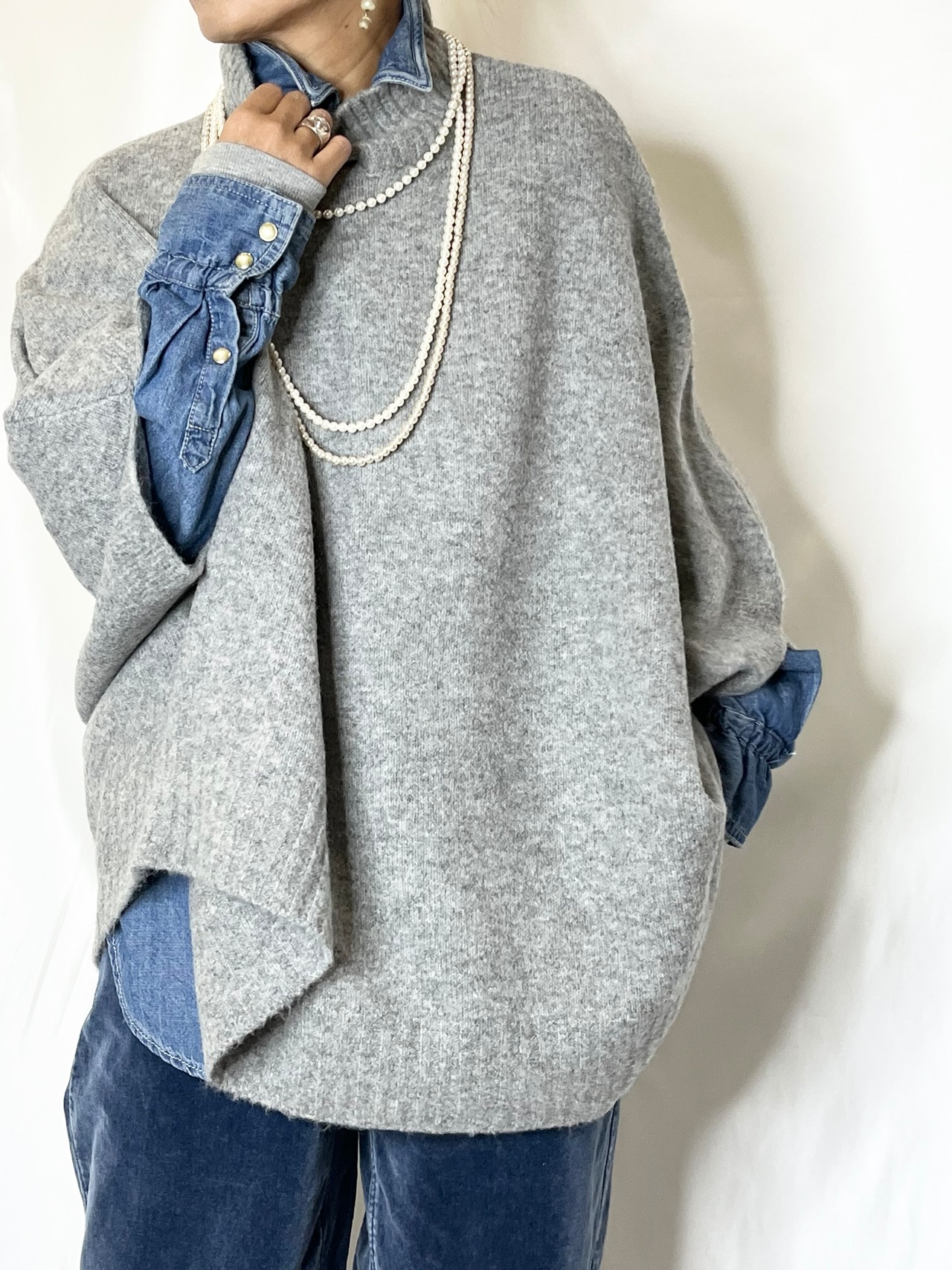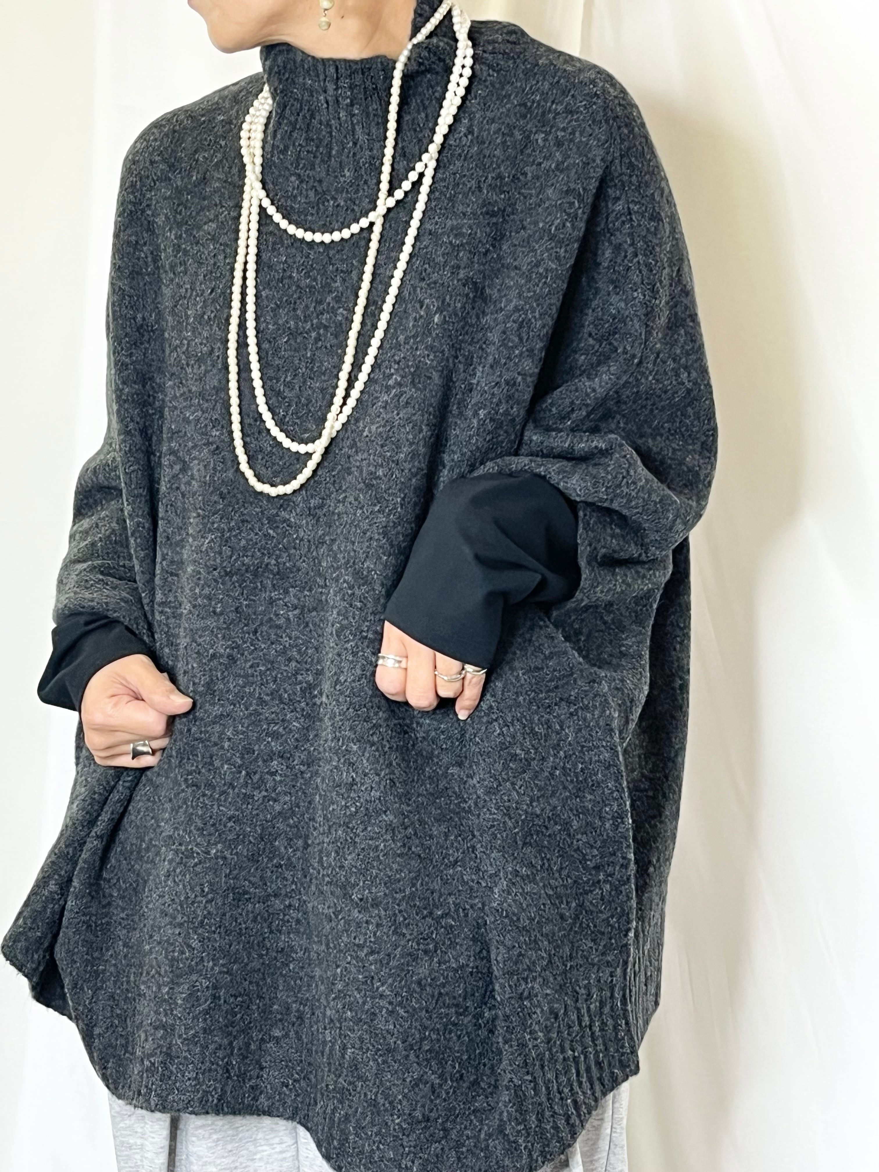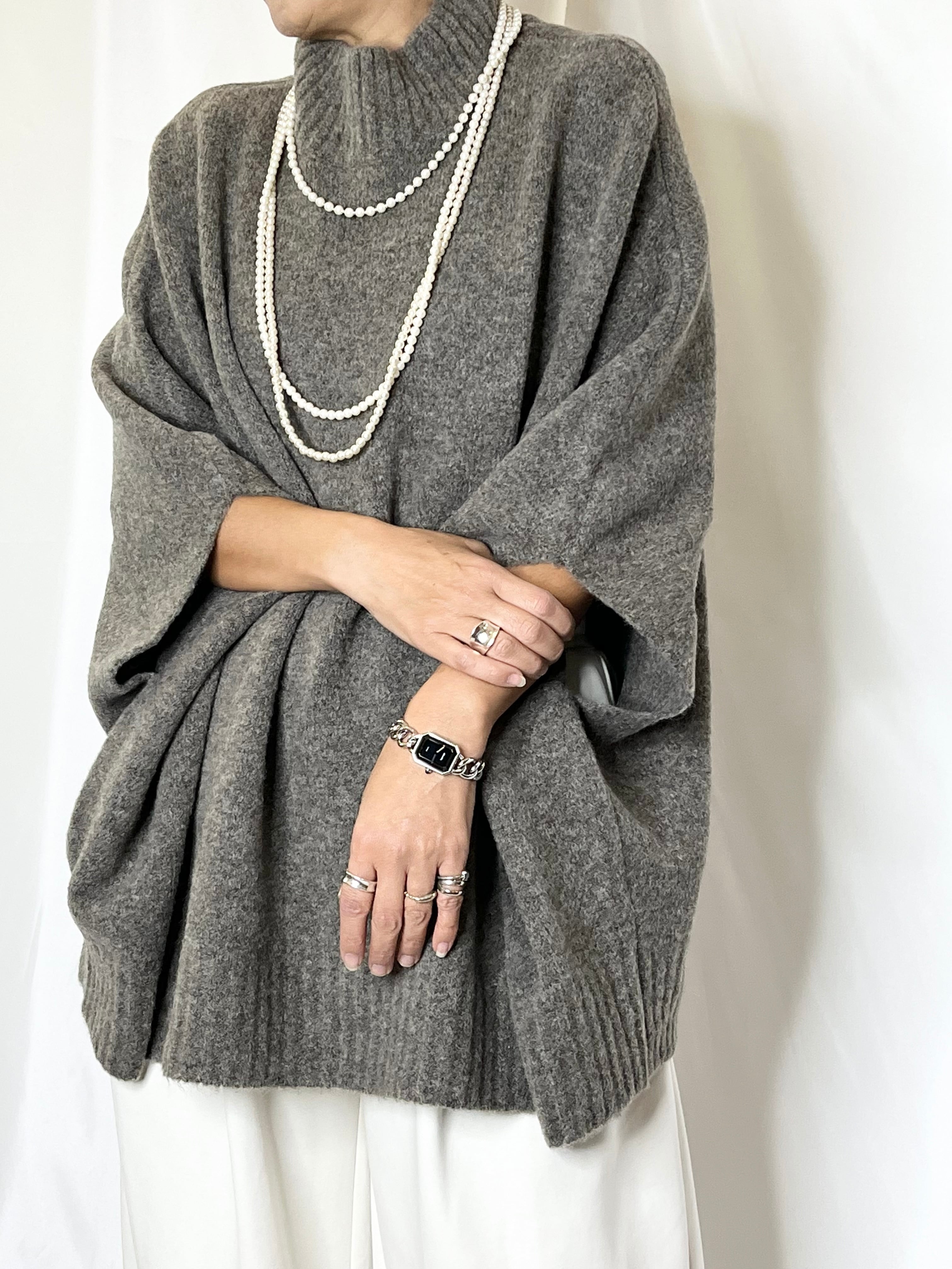 肩が綺麗に落ちるようにシルエットにこだわったポンチョ型ニットベスト。