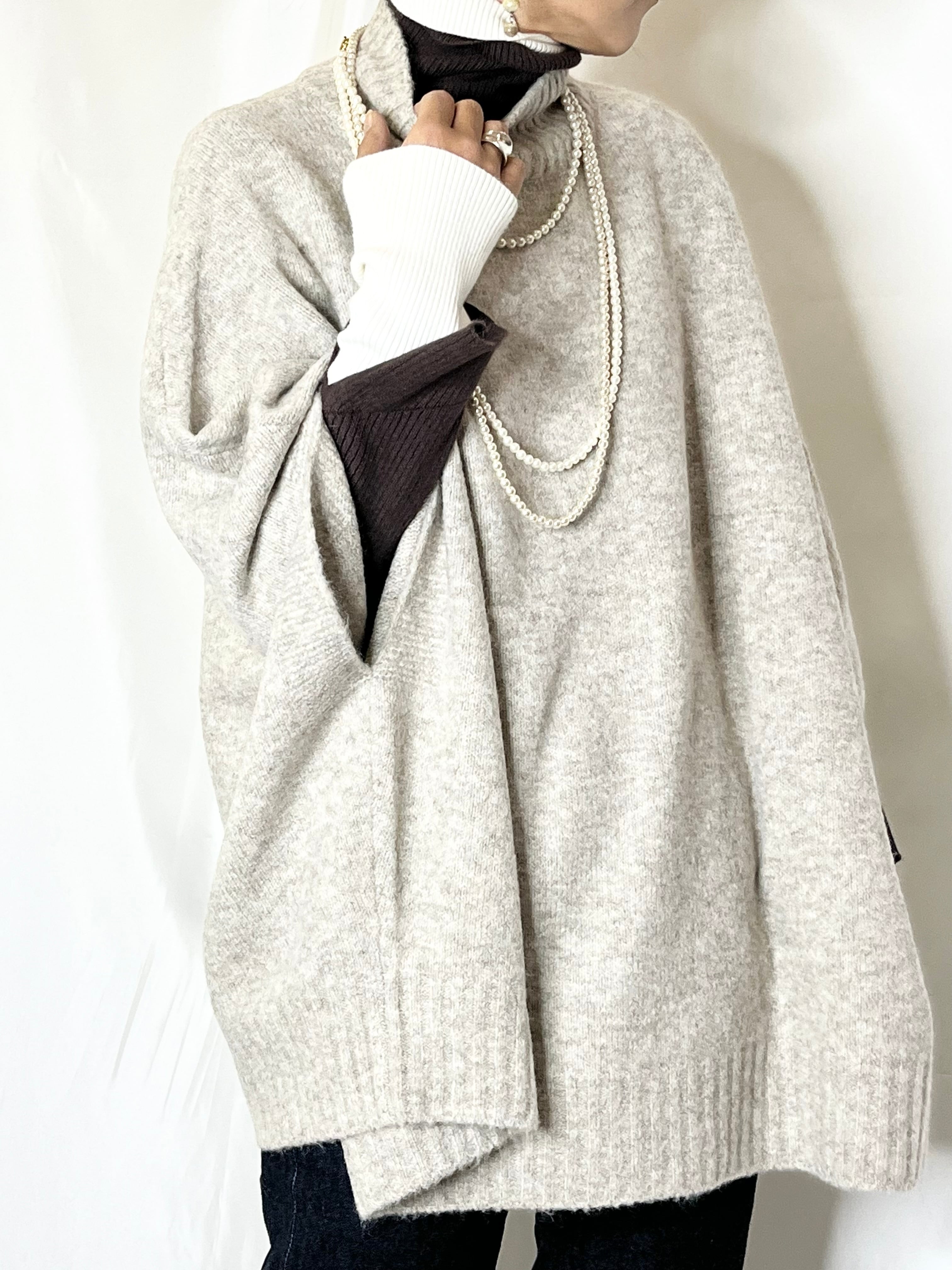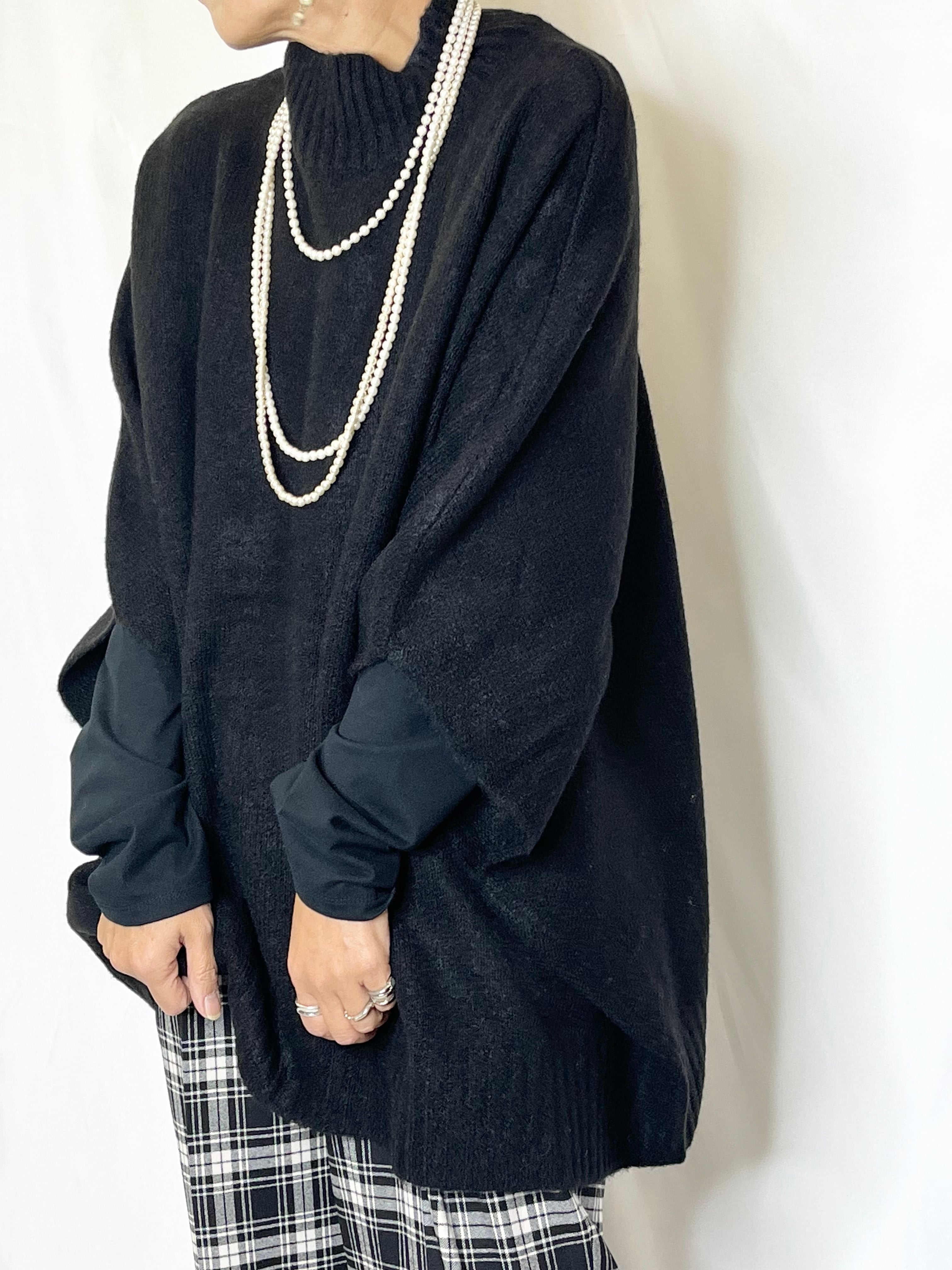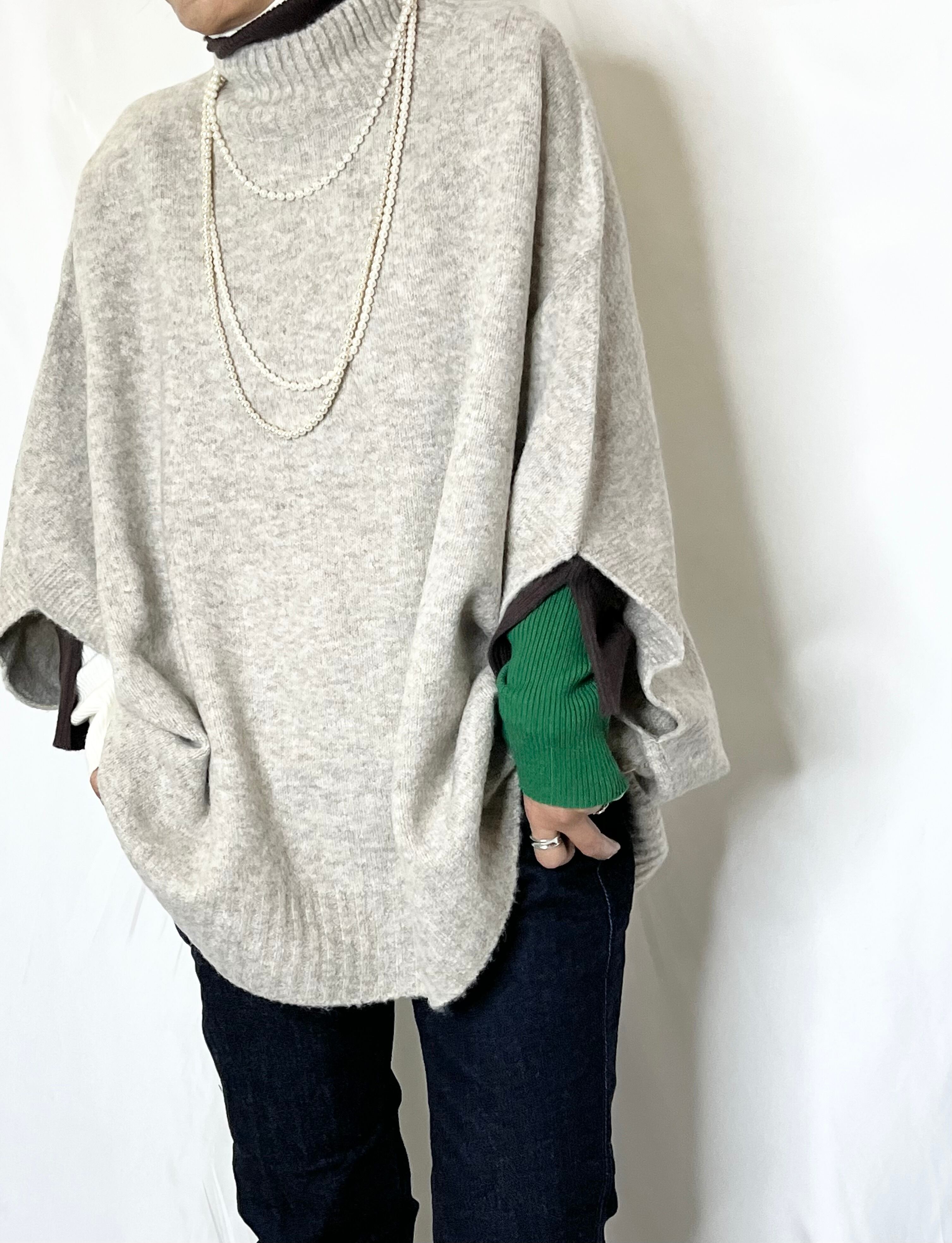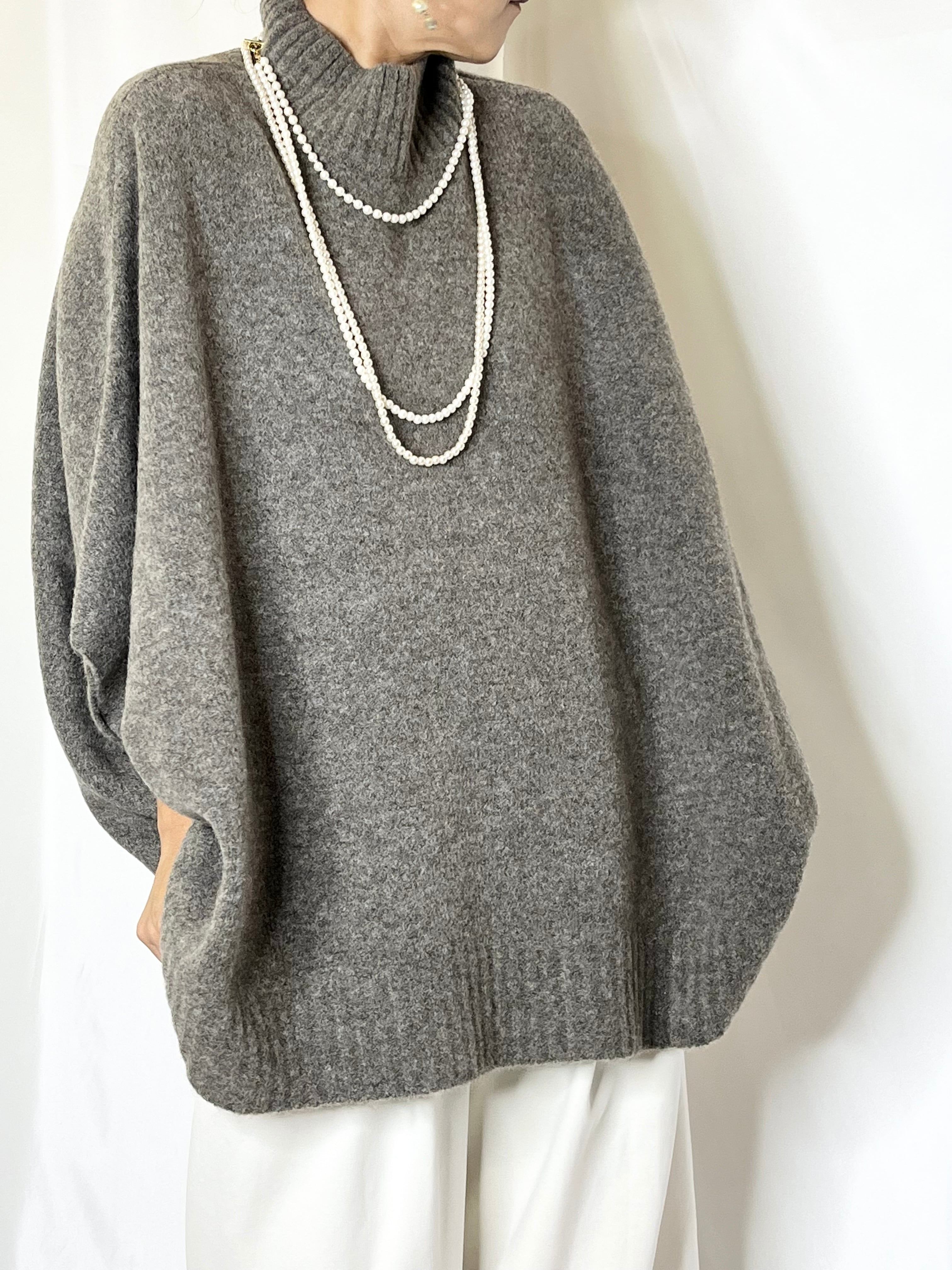 肩が綺麗に落ちるようにシルエットにこだわったポンチョ型ニットベスト。