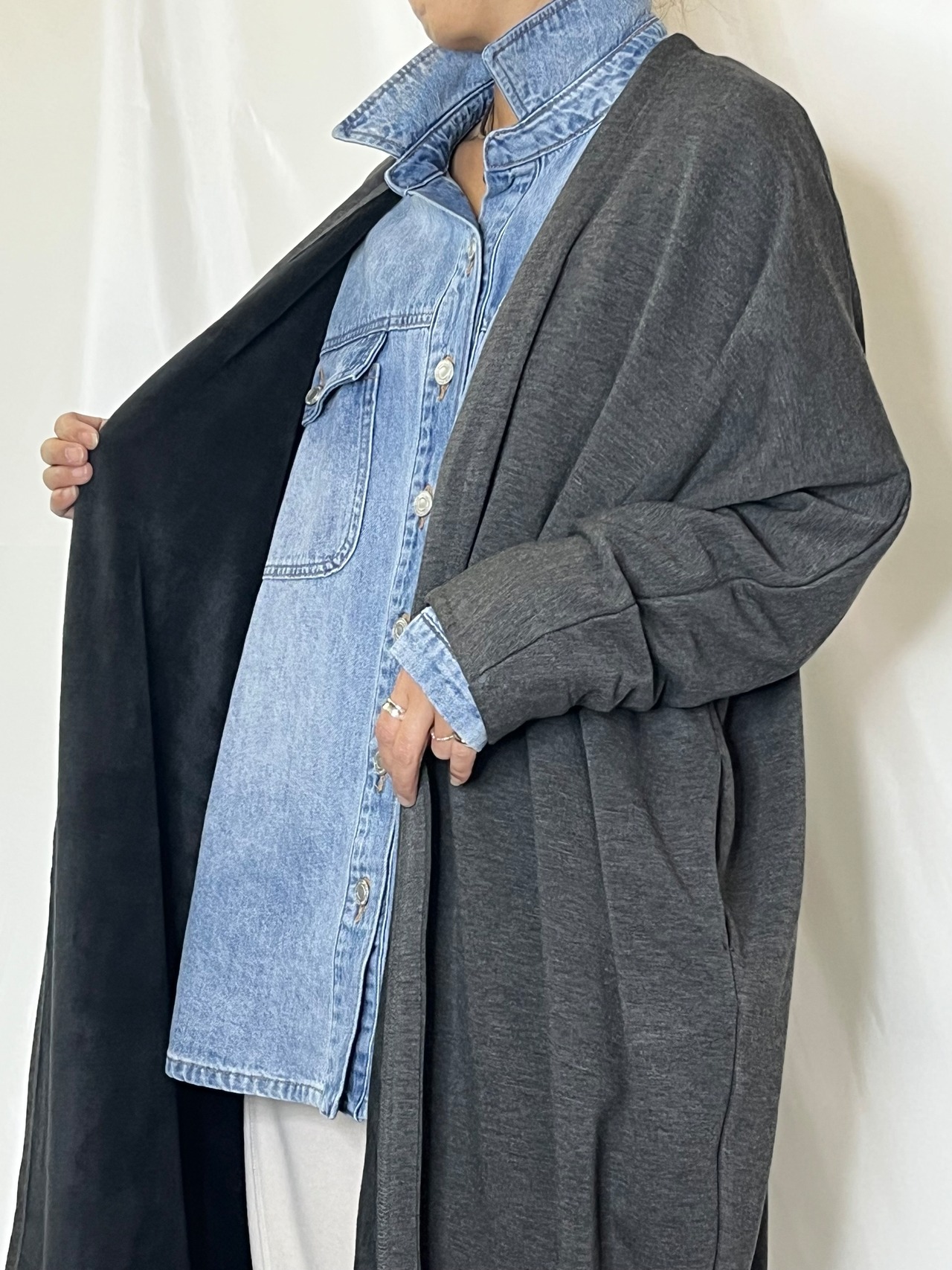サイドには便利に使えるポケット付きで、サッと羽織れていただきやすいです。