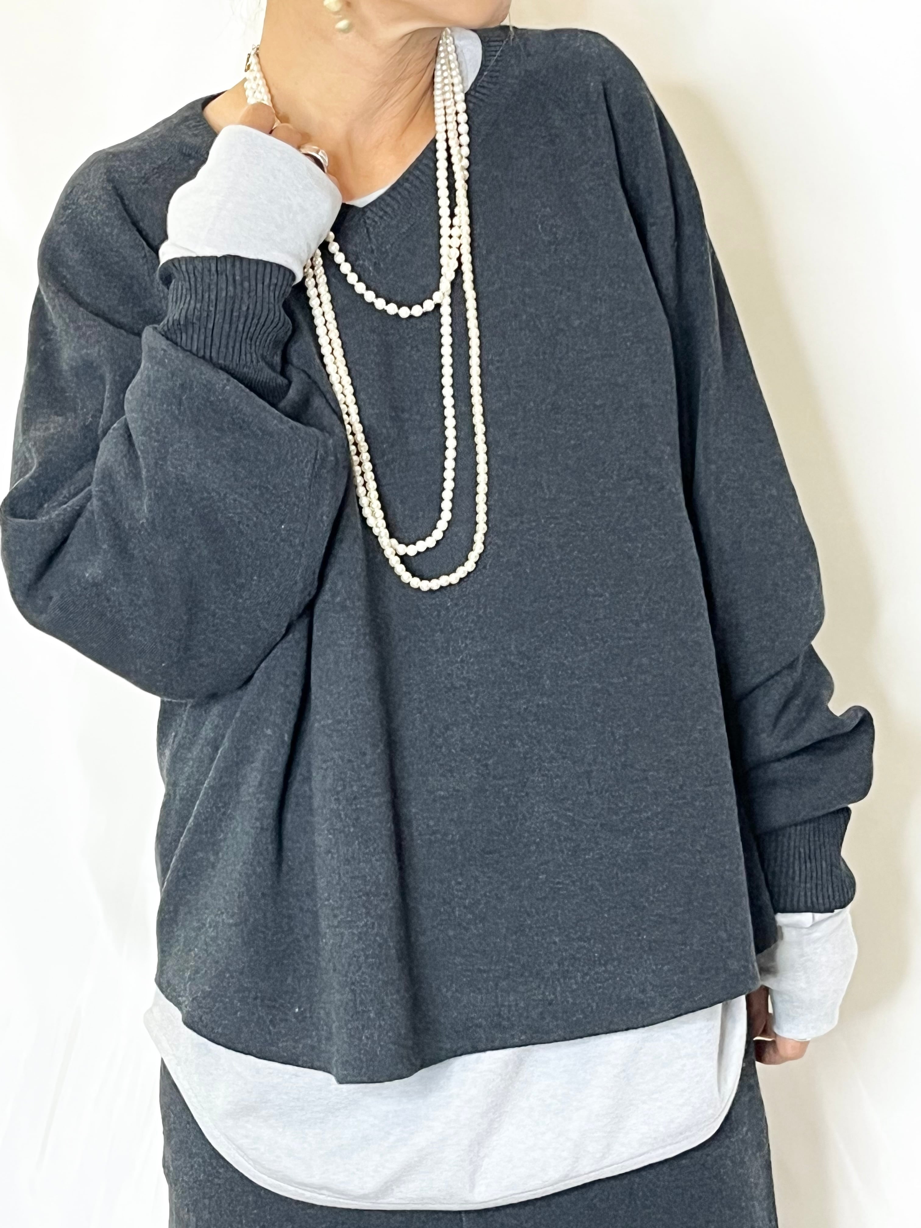 もちもち柔らか素材のVネックニット。