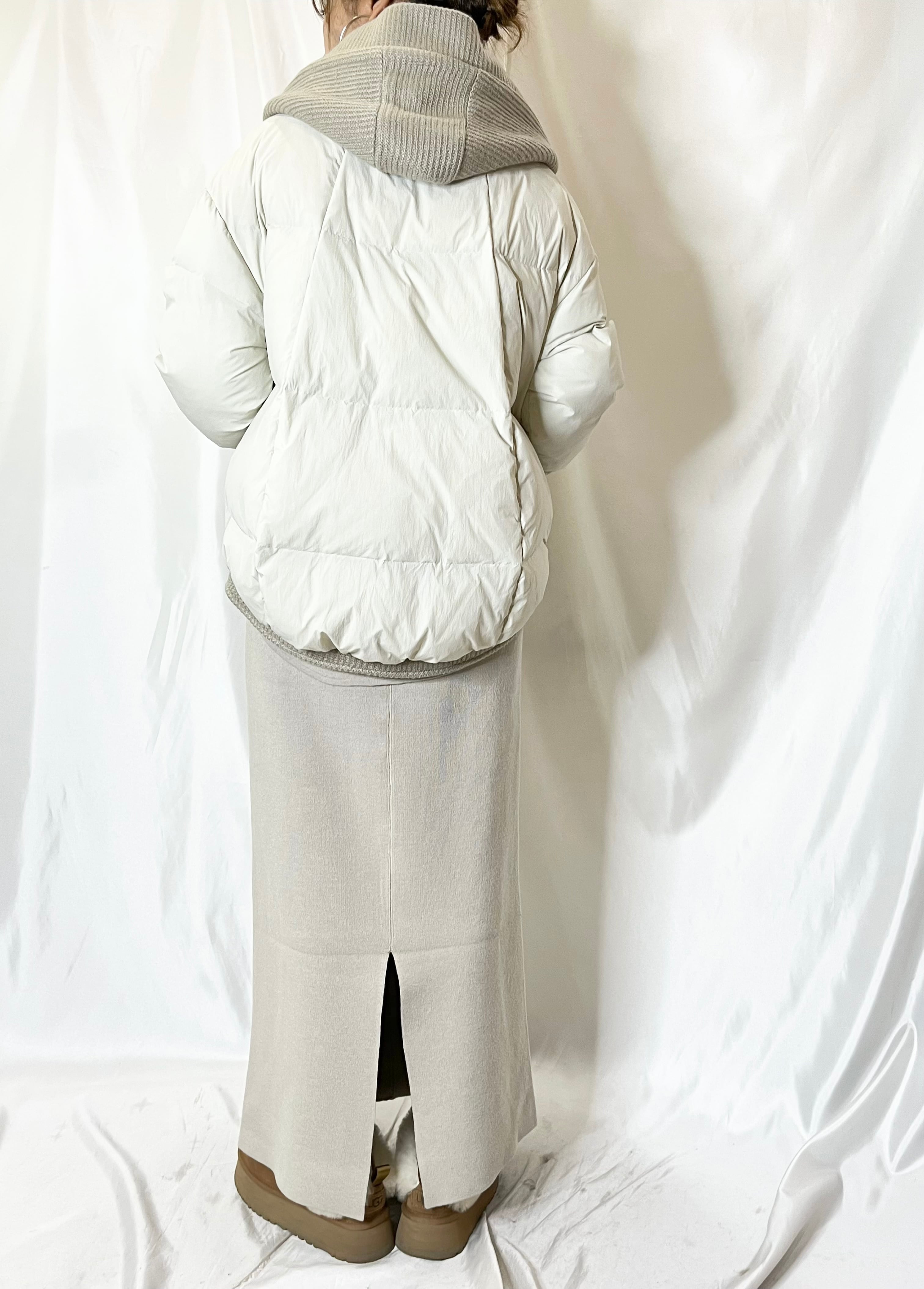 ニットとダウンのレイヤードされた2wayダウンジャケット。