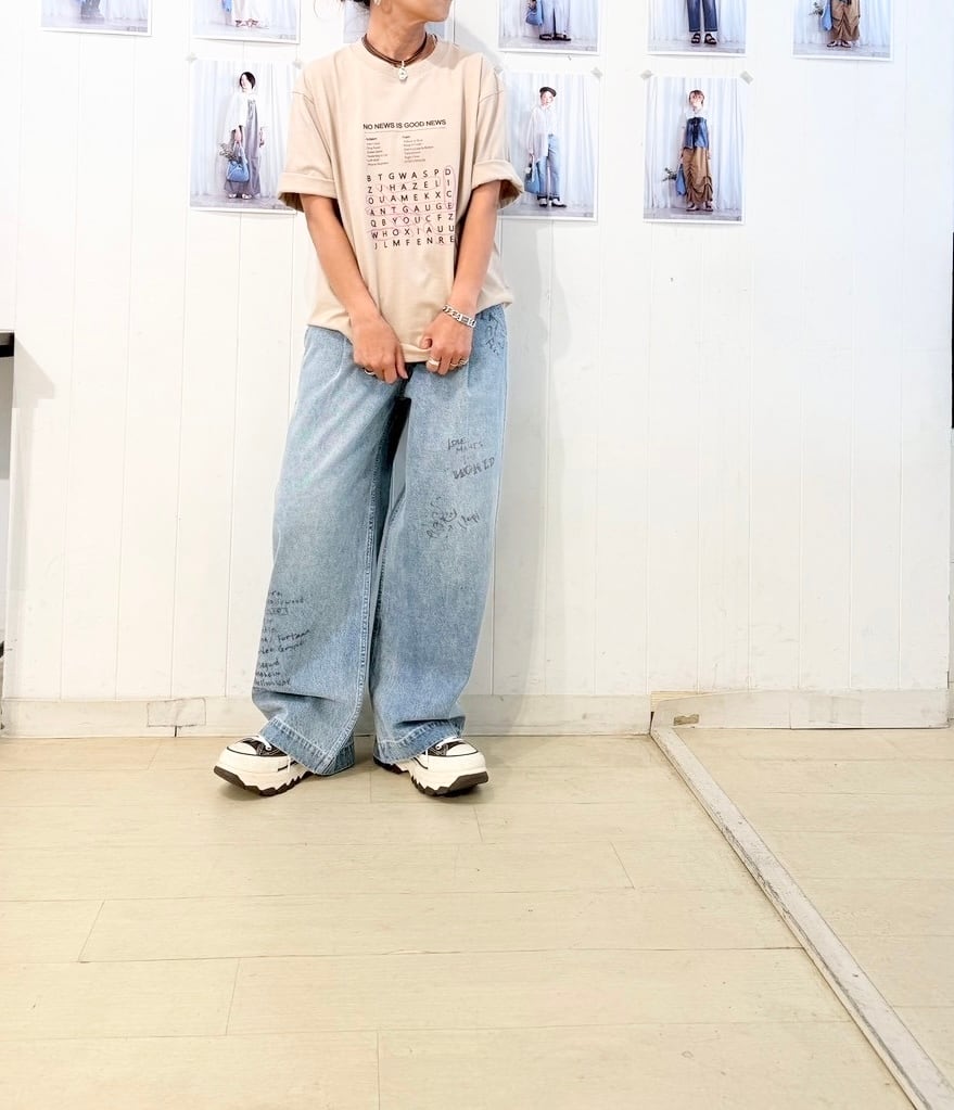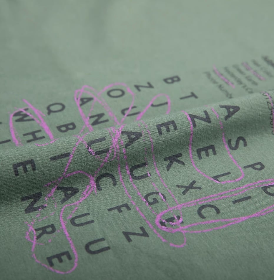 言葉遊びと、ポップな差し色がアクセントになった大人の遊び心あふれるプリントTシャツです。