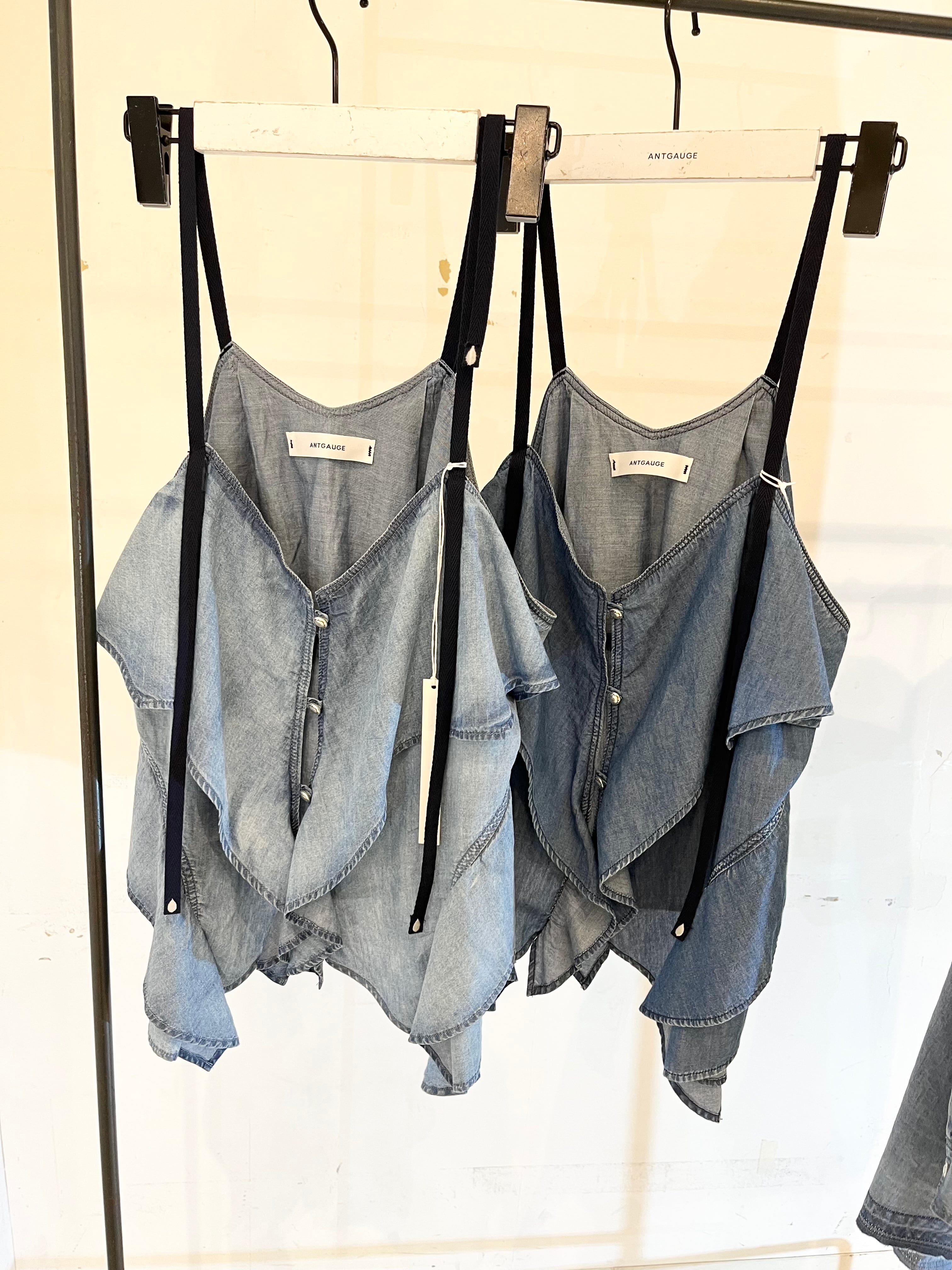 トレンドのビスチェをウエスタン調に、ティアードデザインで表現しました。