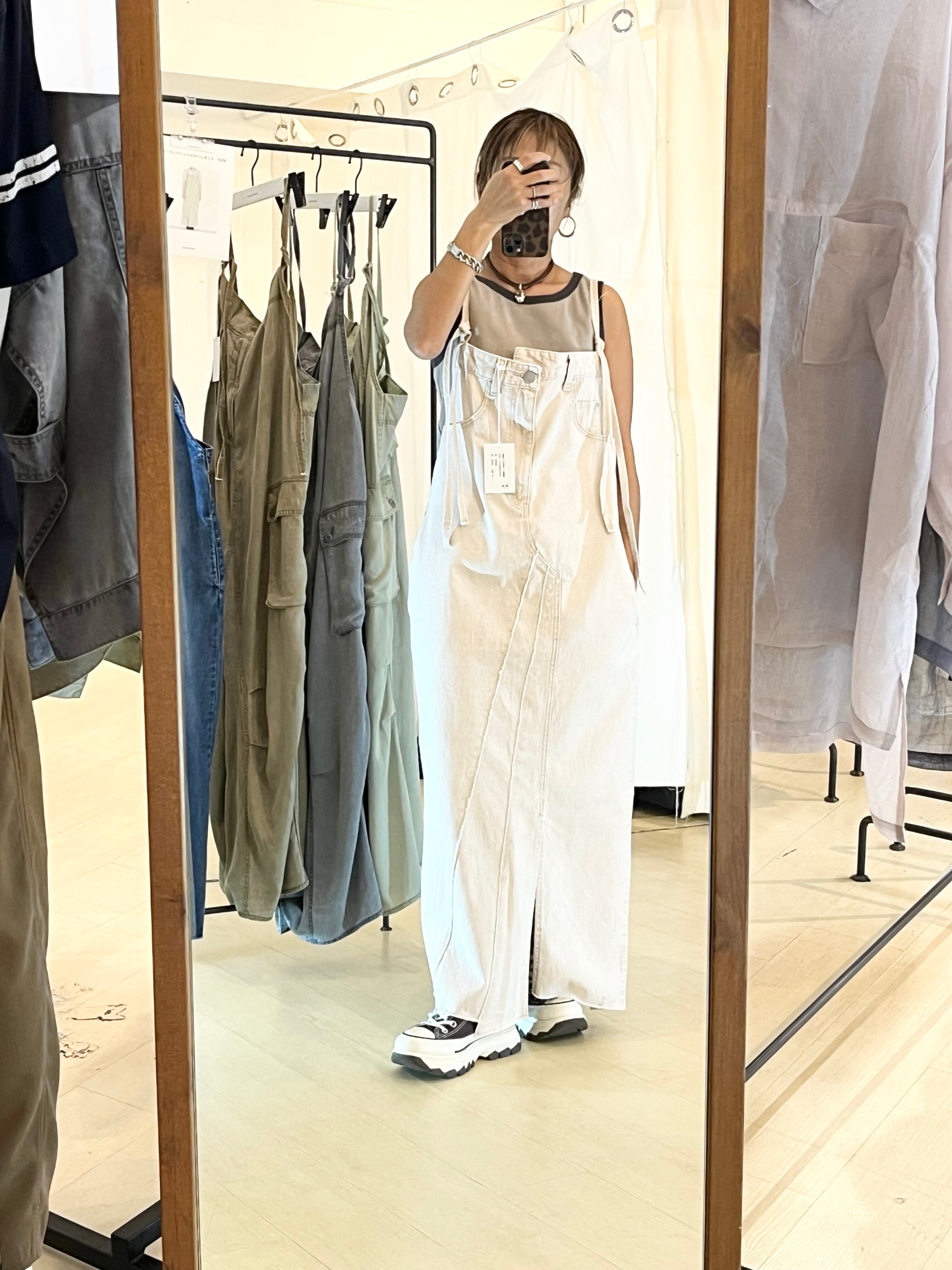 昨年店頭で高い人気を誇った落ち感チノのワンピースの新デザイン。