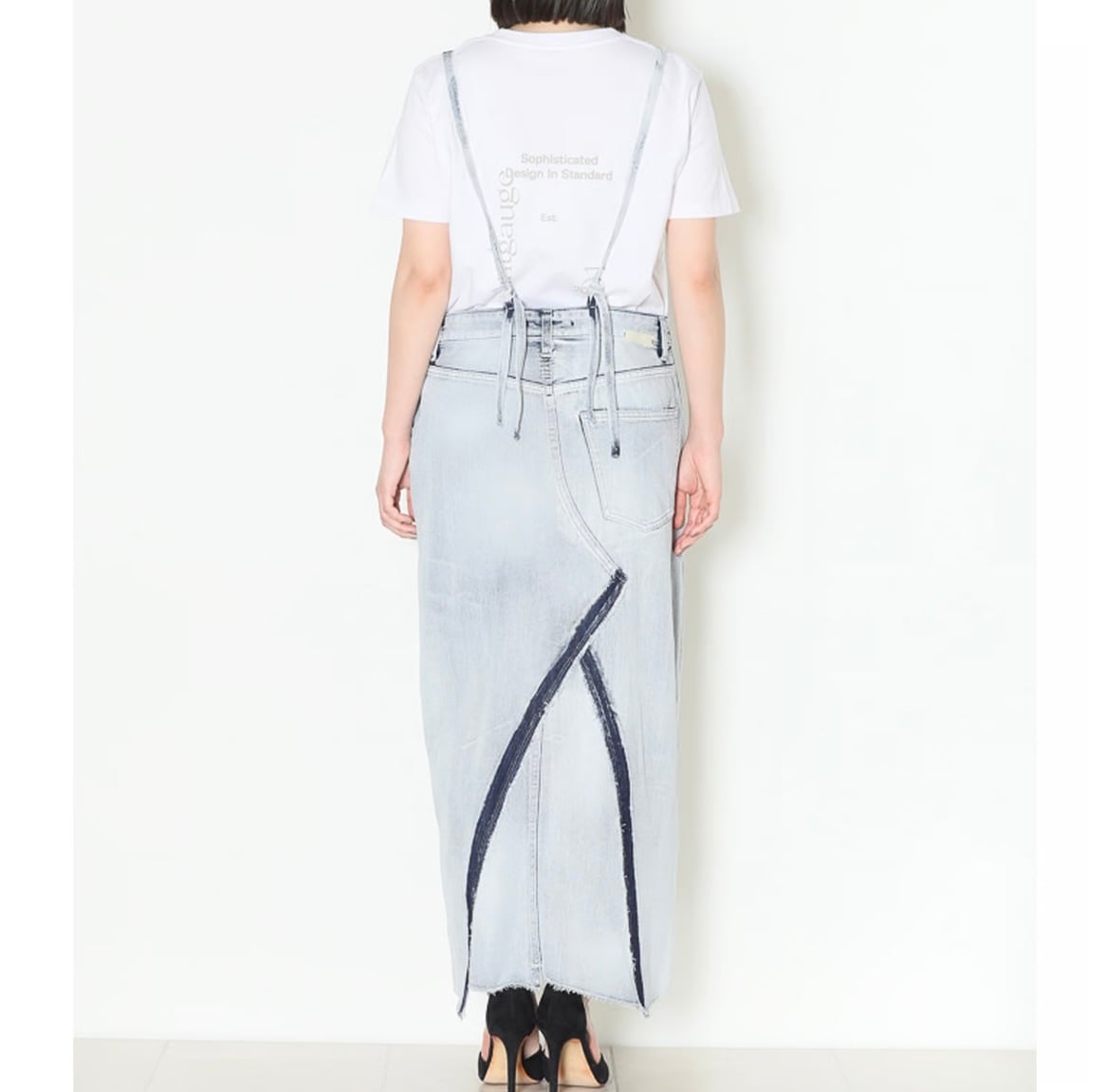 Aラインシルエットながら、素材の落ち感により広がりすぎず、すっきりとした印象に仕上げました。