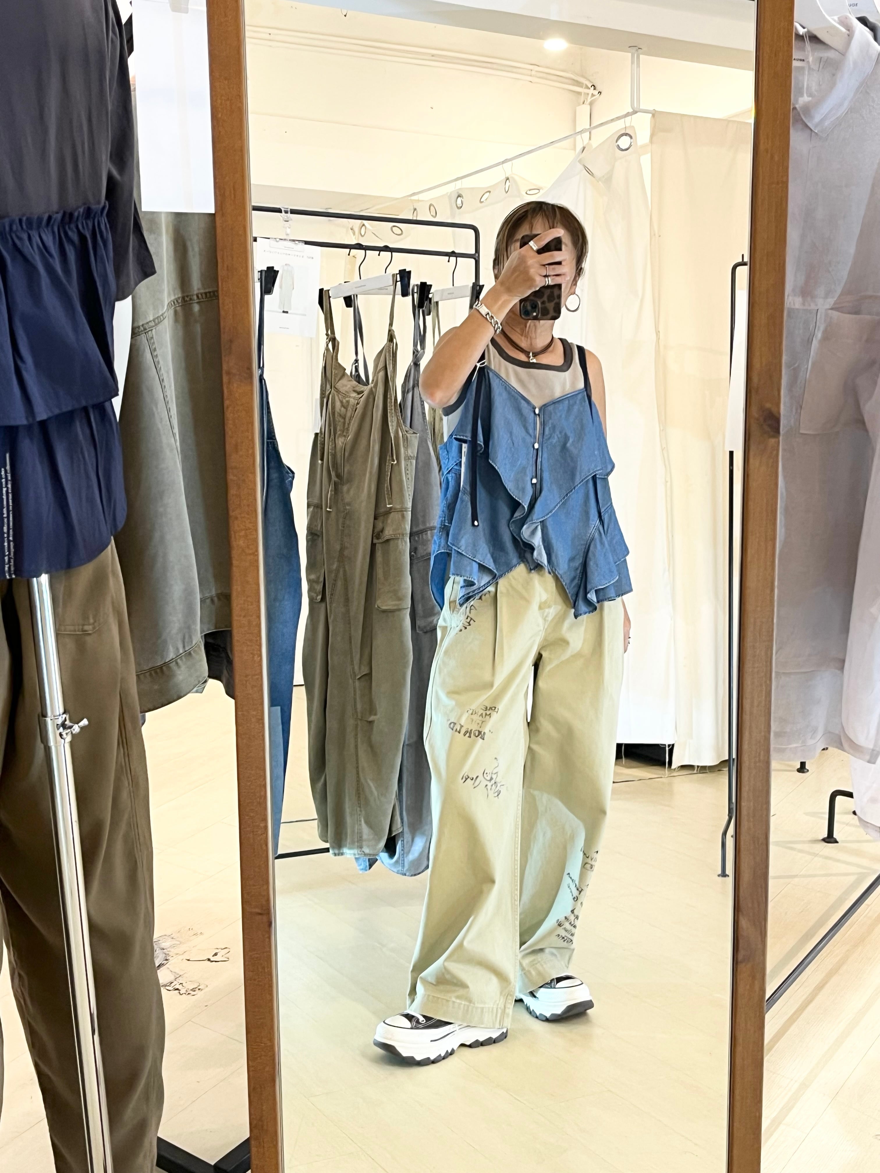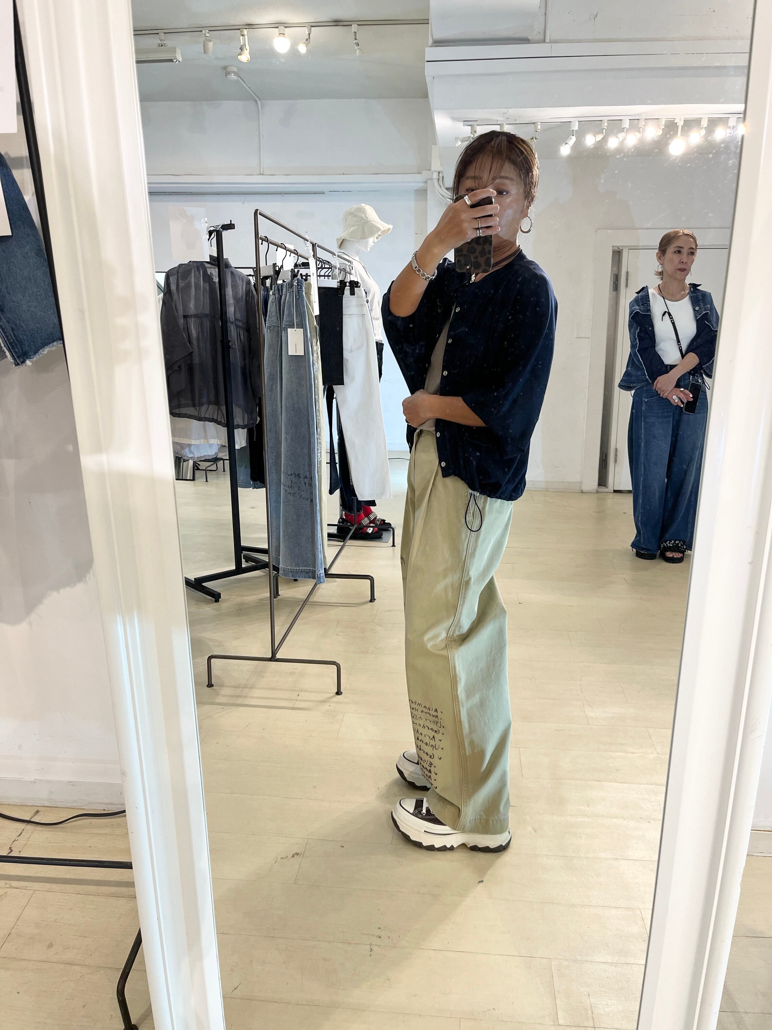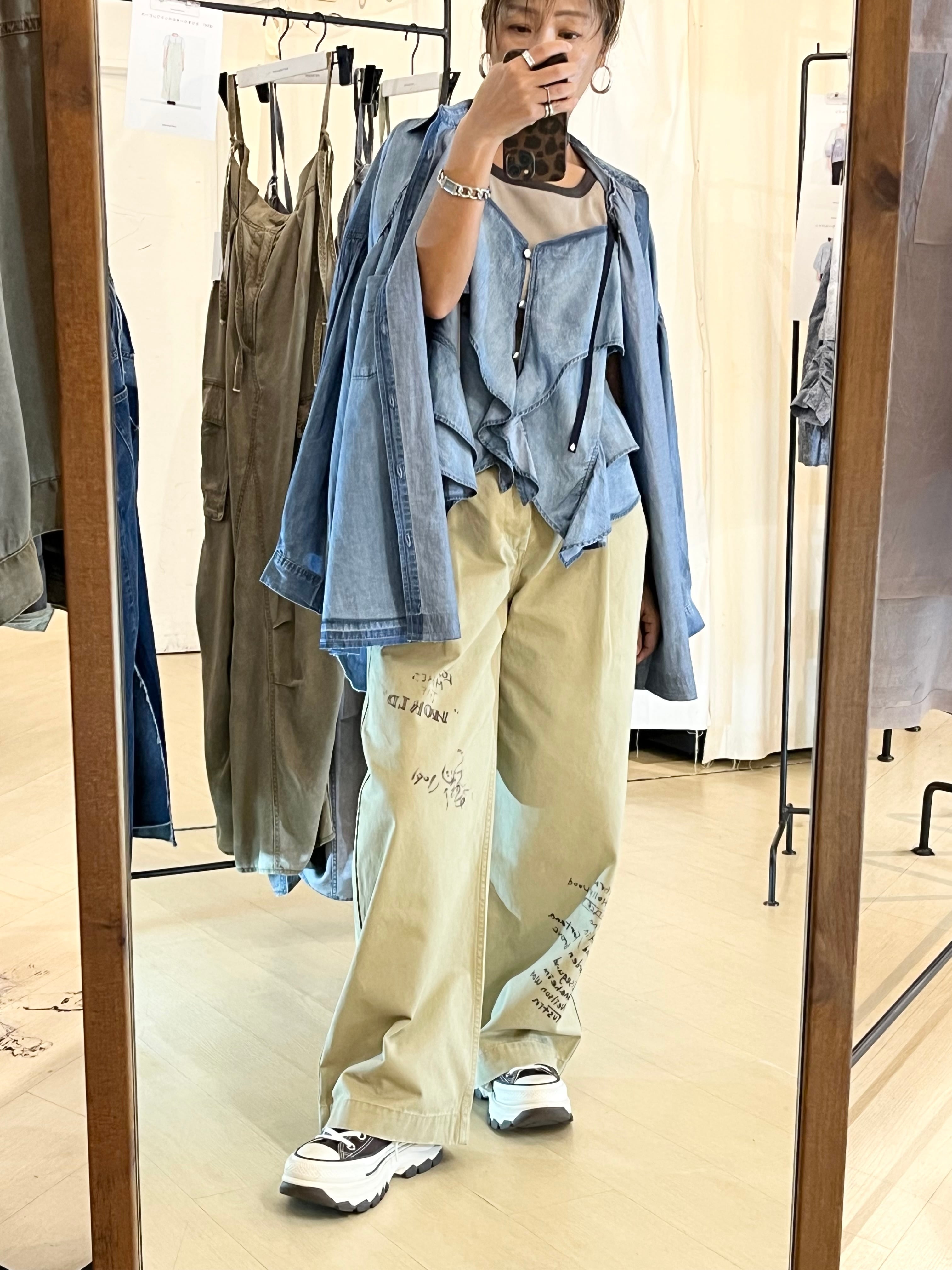 C/#87はデニムで好評だったシルバー箔プリントをチノ素材で再現。