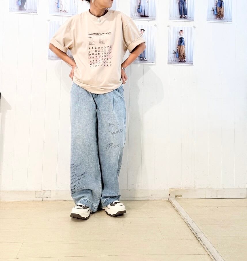 手書き風プリントは、まるでマジックで描いたようなラフさが魅力で、カジュアルスタイルに抜け感をプラスします。